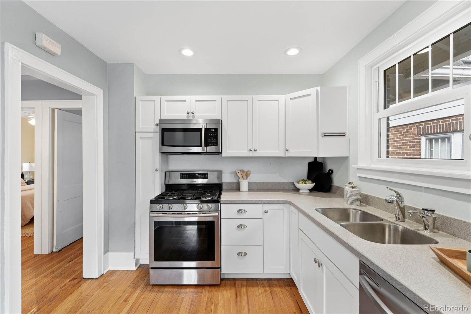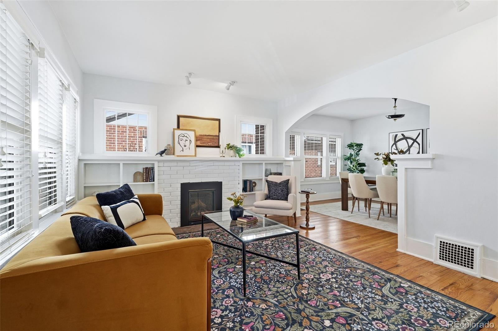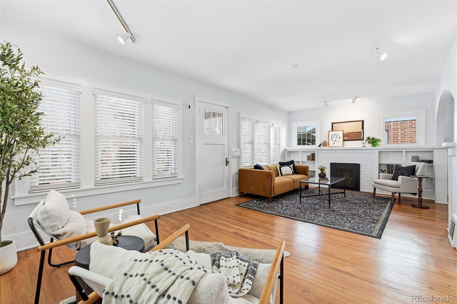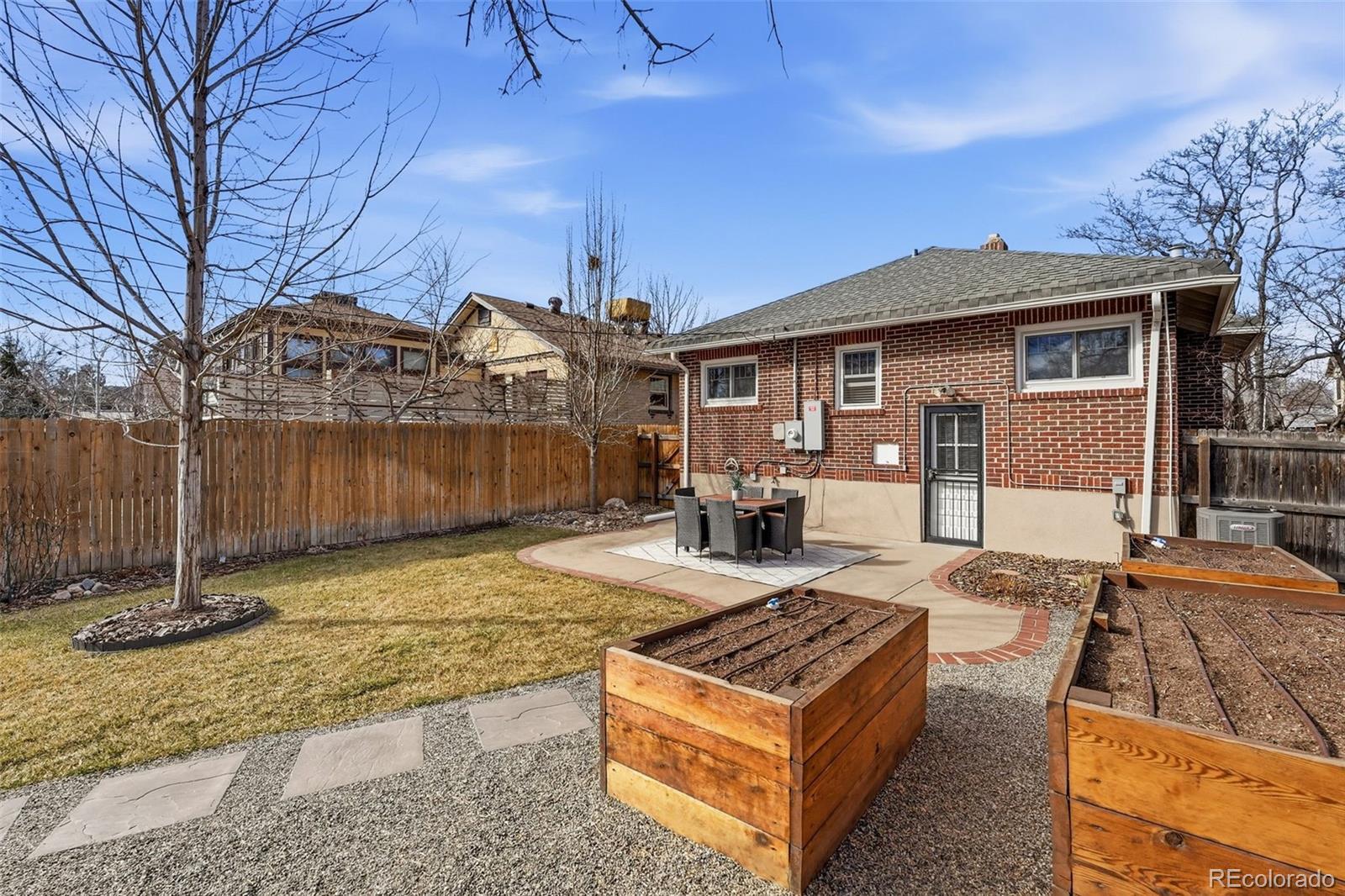 Welcome to this beautifully maintained 3-bedroom, 2-bath home in the heart of Park Hill, where timeless charm meets everyday comfort. Filled with natural light, the home features large windows throughout, creating a bright and welcoming atmosphere from the moment you step inside. Hardwood floors flow through the main level and are anchored by a cozy gas-burning fireplace—perfect for relaxed evenings at home. The kitchen is thoughtfully laid out and highly functional, complete with stainless steel appliances and great workspace for everyday cooking. Two sunny, inviting bedrooms and a fully updated bathroom complete the main floor. The partially finished basement expands your living space with a third bedroom, a ¾ bathroom, an additional living area, and ample storage—ideal for guests or a home office. Outside, the yard truly shines. The fully fenced backyard feels like an extra living space, with a patio, raised planter boxes, and a full irrigation system keeping everything lush and easy to maintain. The front yard features low-maintenance xeriscaping, while the quiet, tree-lined street adds to the peaceful Park Hill vibe. Additional highlights include a detached one-car garage, a storage shed, and major system upgrades for peace of mind: the furnace, A/C, and water heater are all approximately 3 years old, with a newer refrigerator, and brand new dishwasher as well. Located just a five-minute walk to the shops, dining, and energy of 23rd Street, Fairfax, and Kearney, this home offers the perfect balance of neighborhood charm, convenience, and comfort. Don’t miss the opportunity to make this lovely Park Hill property your own.