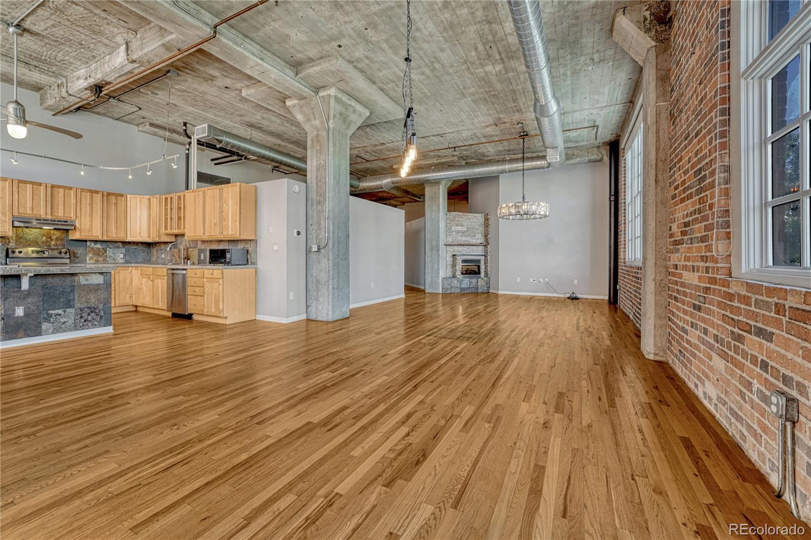 ** 1ST MONTH FREE WITH SIGNED 13 MONTH LEASE! ** Welcome to 1301 Wazee St, Unit 2E—an exceptional 2-bedroom, 2-bath residence offering 1,637 sq ft of stylish living in one of Denver’s premier historic buildings, Left Bank Lofts. Industrial charm meets modern comfort with exposed brick, soaring concrete ceilings, and oversized windows that flood the home with natural light. The expansive living area features hardwood floors, custom lighting, and a gas fireplace, blending warmth with urban chic. The open-concept kitchen boasts slab granite counters, slate accents, stainless steel appliances, and a center island designed for entertaining. Step outside to a private balcony with turf flooring and enjoy sweeping views of the mountains, Ball Arena, and city skyline. The spacious primary suite includes a walk-in closet with custom built-ins, laundry, and a luxurious double-vanity bath. A versatile second bedroom and full bath provide flexibility for guests or a home office. Additional features include two deeded parking spaces (#5 & #24), storage unit, central air, secure building entry and elevator access. With a Walk Score of 91, you’re steps from Union Station, Coors Field, Larimer Square, and Denver’s best dining, nightlife, and trails. This home offers the perfect balance of historic character, modern upgrades, and unbeatable location—your chance to live in the heart of LoDo.