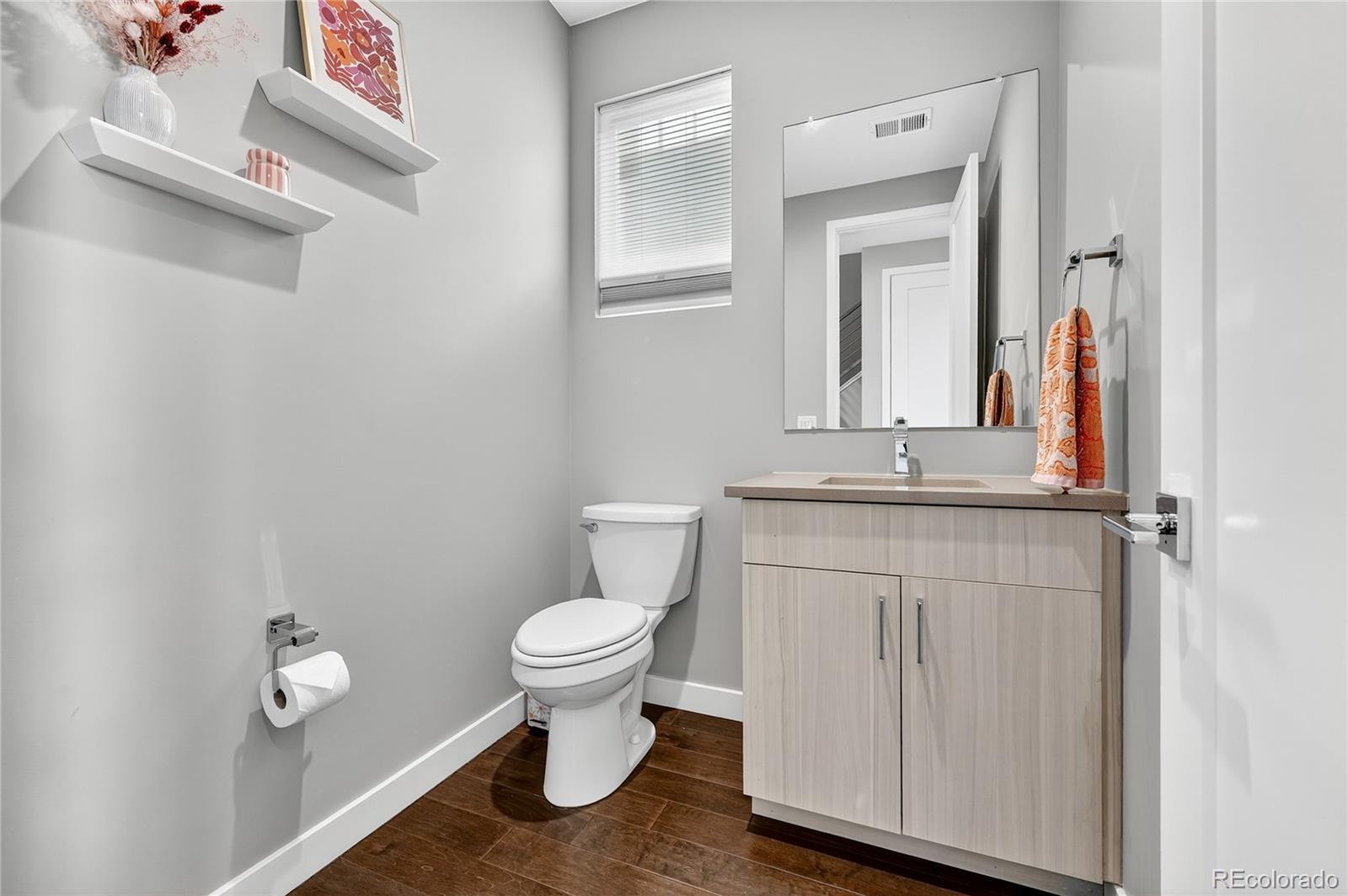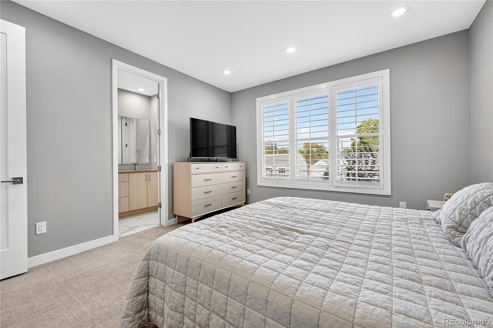 Welcome to this better-than-new half duplex in the heart of Overland, just minutes from Platt Park. Thoughtfully designed with a superior floor plan and timeless, elevated finishes, this home stands out among similar properties. From the moment you arrive, the modern curb appeal and professional landscaping make a lasting impression. Step inside to a welcoming entryway—perfect for greeting guests or slipping off your shoes—before entering the bright, open-concept living, dining, and kitchen area. Beautiful dark engineered hardwood floors, expansive windows, and light cabinetry create a striking yet inviting aesthetic. Custom high-end window treatments add a refined touch. The main level also features a versatile office or nonconforming fourth bedroom, a powder room, a convenient mudroom, and sliding doors that lead to the private backyard with new turf and a two-car garage. Upstairs, you’ll find three spacious bedrooms and two full bathrooms. The primary suite offers a luxurious retreat with a spa-like bath featuring dual sinks and a generous walk-in closet. Secondary bedrooms are equally well-appointed, sharing a stylish full bathroom. All bedrooms are finished with premium wool carpeting for an added sense of comfort. A laundry room, with washer and dryer included, on this level as well for extra ease. Two car garage completes this property. Situated in a neighborhood with incredible access to Denver’s hottest destinations—and with no HOA—this home offers both lifestyle and lasting value.