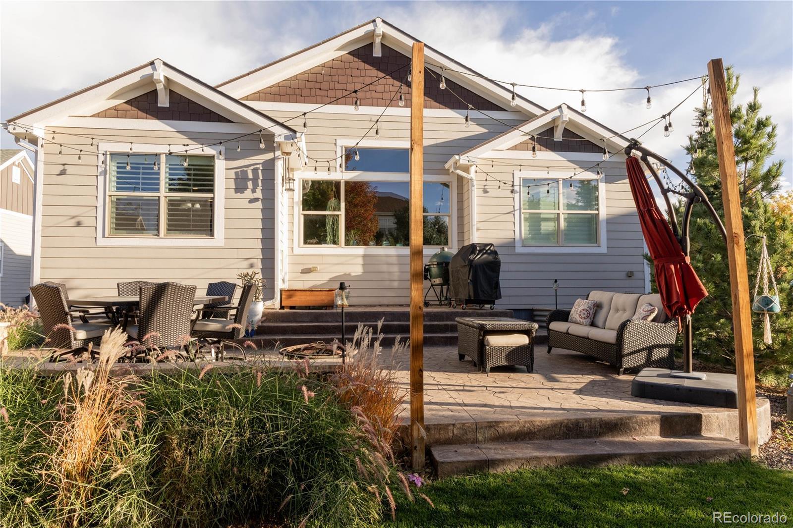 Welcome to this beautifully upgraded 4-bedroom, 3-bath ranch in the highly desirable Castlewood Ranch community of Castle Rock. Situated on a generous .24-acre lot, this move-in-ready home features over $100K in thoughtfully selected upgrades that elevate both style and functionality. The open main level showcases wainscoting accents, designer lighting, plantation shutters, and hardwood flooring in the bedrooms. The upgraded kitchen offers extended cabinetry into the dining area for added storage and prep space and flows seamlessly into the living room, highlighted by a custom fireplace accent wall—perfect for everyday living and entertaining. The primary suite features an expanded walk-in closet with custom built-ins, while the refreshed laundry room adds modern convenience. The finished basement provides flexible living space, including a dedicated home gym with new flooring. Outside, enjoy a private Colorado retreat with over $60K in professional landscaping, complete with stamped concrete patio, walkways, and a shed pad. Additional highlights include upgraded garage storage and a 240V EV charging outlet. Meticulously maintained and truly move-in ready, this home offers timeless design, modern upgrades, and exceptional value in one of Castle Rock’s most sought-after neighborhoods.