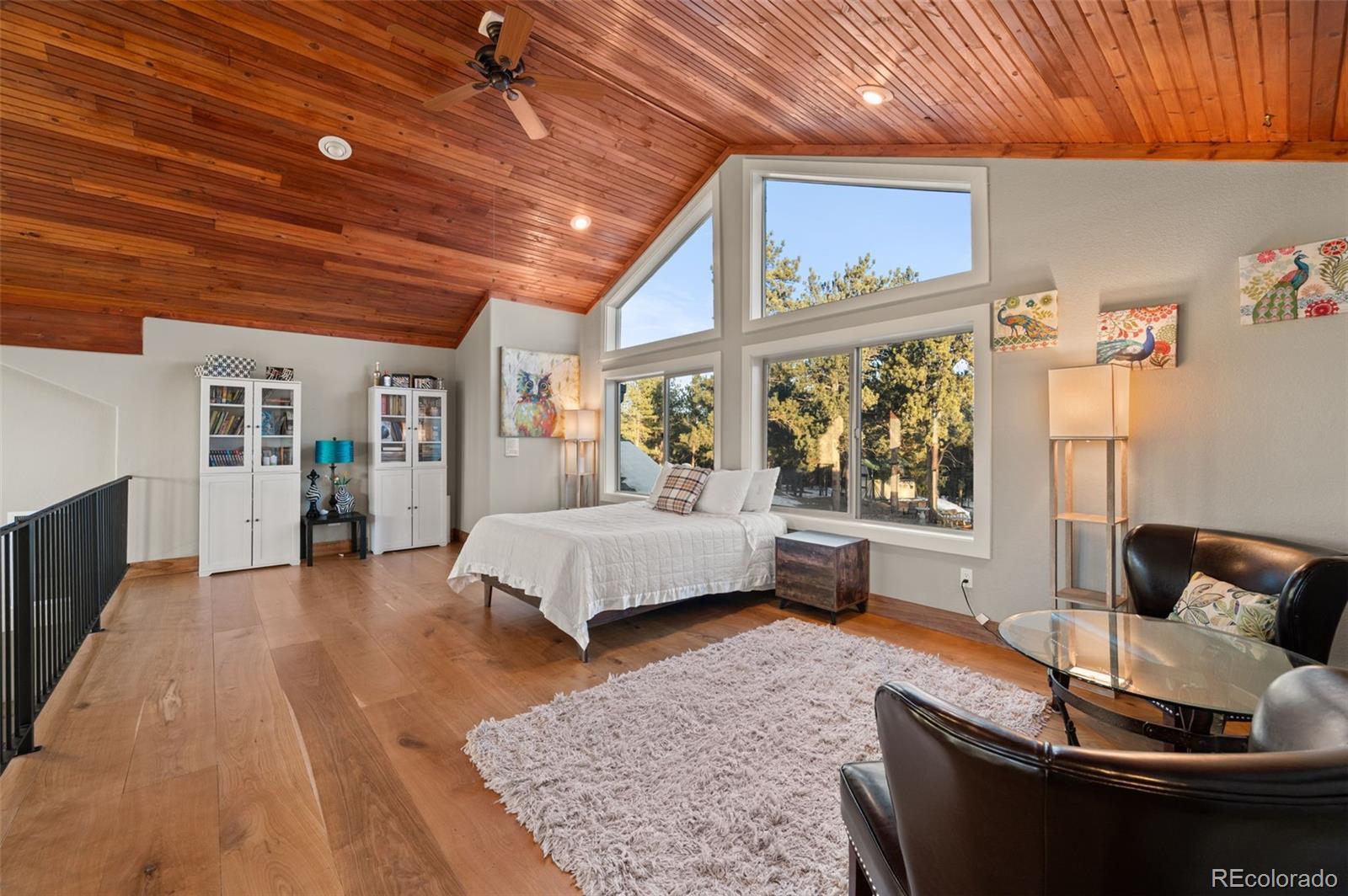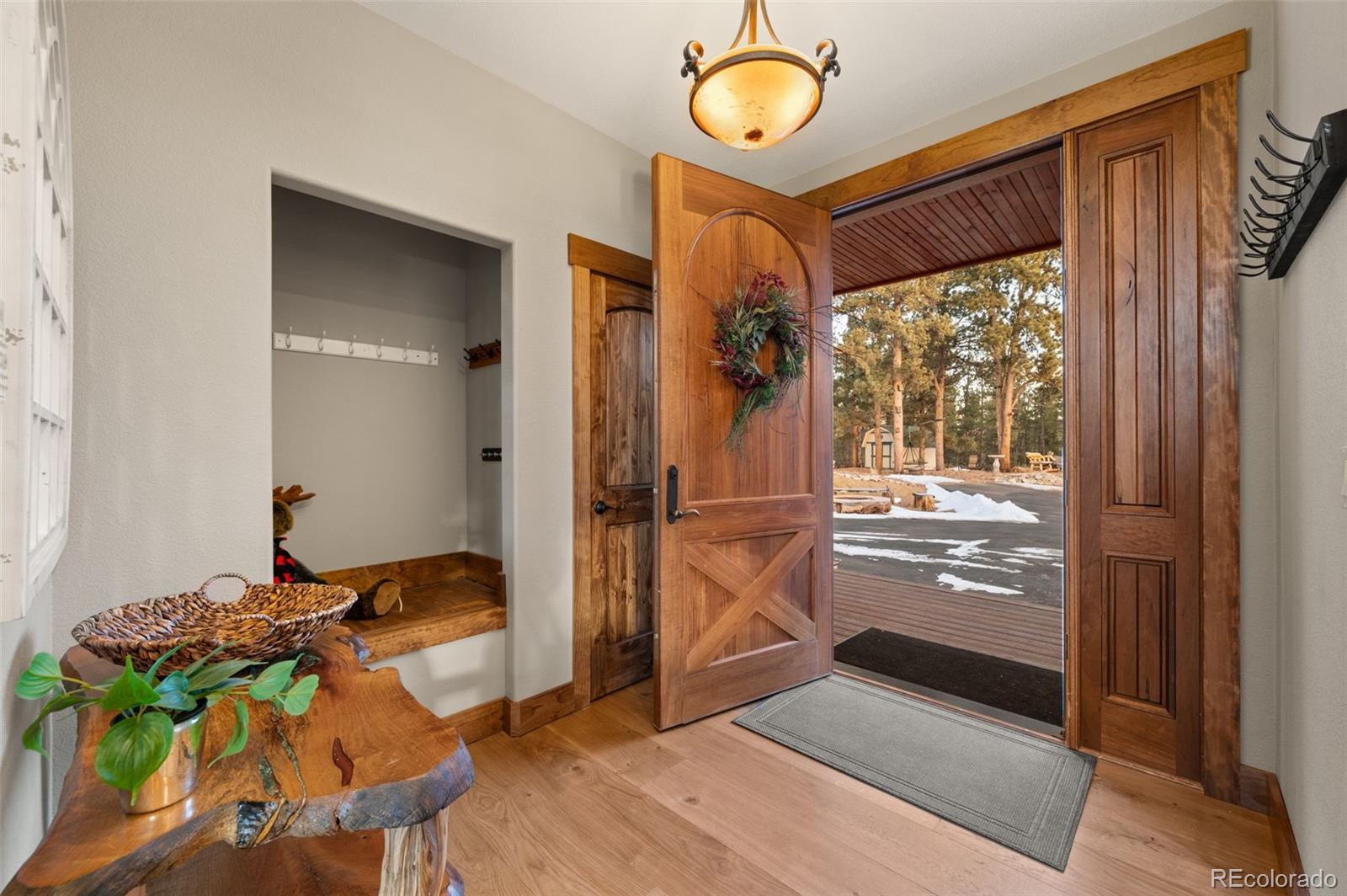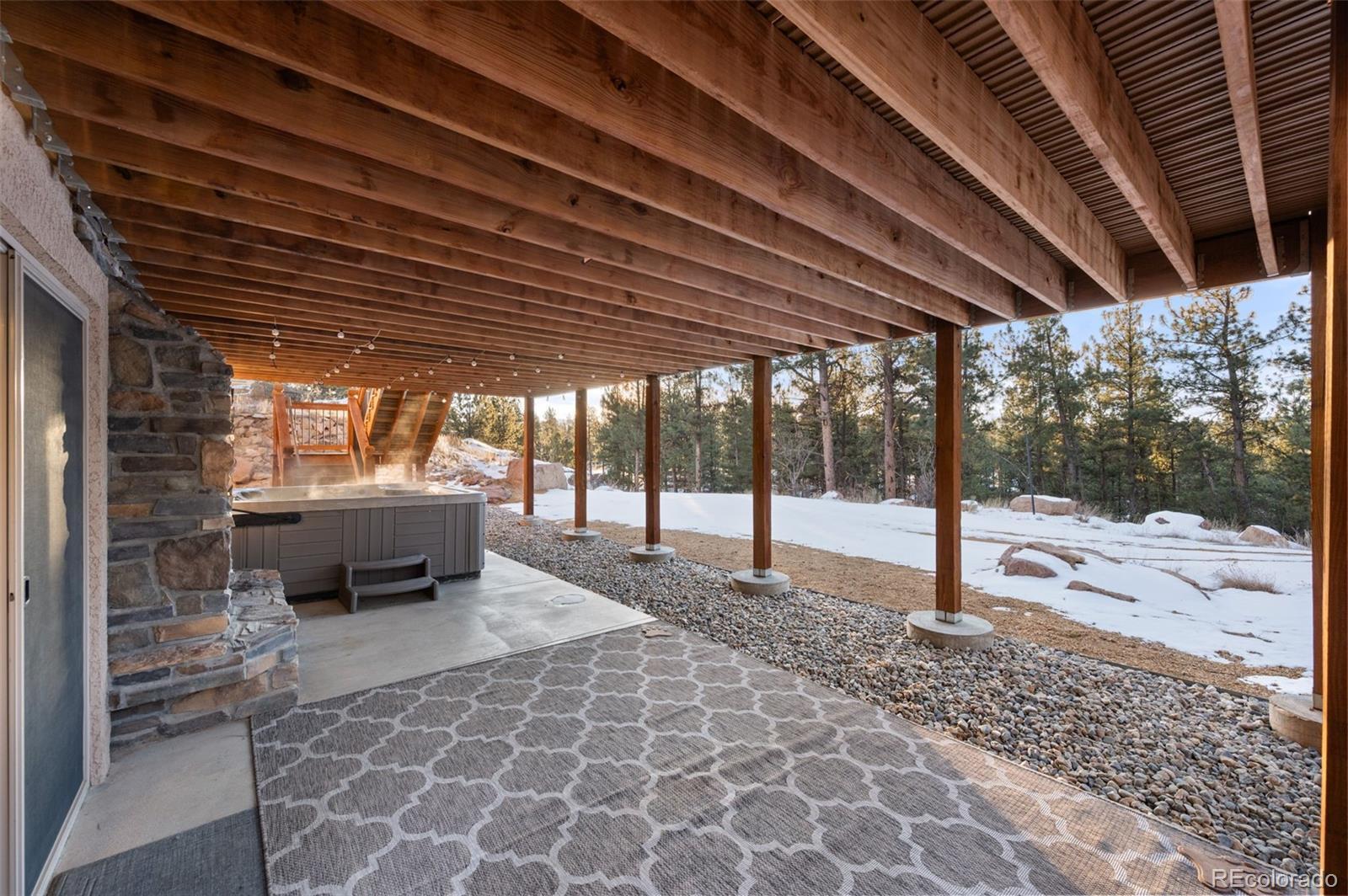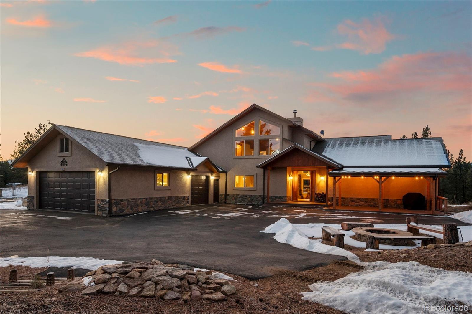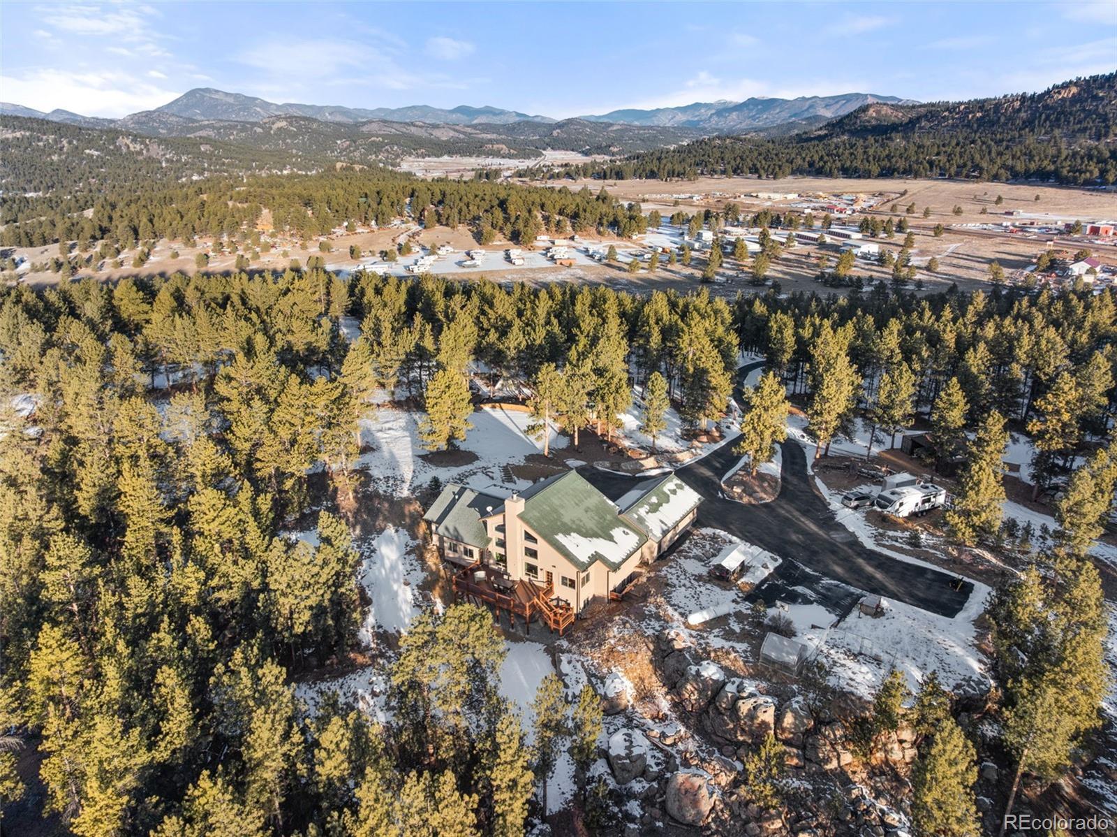 Mountain retreat sanctuary on 22 acres of flat, usable land bordering National Forest, offering privacy, Pike’s Peak views, and rare convenience. A beautifully paved driveway provides easy, year-round access, while the property sits just off Highway 24 and only minutes from shopping, dining, medical services, and daily amenities—country living without isolation. The home was completely remodeled from floor to ceiling in 2022 and is turnkey and fully furnished, stocked down to dishes and linens for immediate short-term rental use, a second home, or a primary residence. Updates include new 10” European white oak hardwood floors, new carpet and LVP throughout, a fully remodeled kitchen with granite countertops and new appliances, automatic blinds, and major system upgrades including a new boiler, on-demand water heater, expansion tank, whole-house fan, and two radon mitigation systems. The primary suite features a fireplace, stone walk-in shower, and an exceptional 24’ x 8’ walk-in closet—nearly the size of a bedroom—with custom built-ins. Built to last, exterior improvements completed in 2022 include all stucco repaired and repainted with a 25-year specialty coating, new fascia, soffits, and gutters, and a refurbished roof with ice shield and heat tape for proper drainage. New composite decks and a hot tub enhance year-round enjoyment. Outdoor amenities include a teepee, treehouse, zip line, basketball court, and greenhouse, along with direct National Forest access. Please ask your agent for the full list of additional highlights and upgrades. A rare opportunity combining acreage, access, durability, lifestyle amenities, and strong income potential—where you feel worlds away while remaining close to everything.