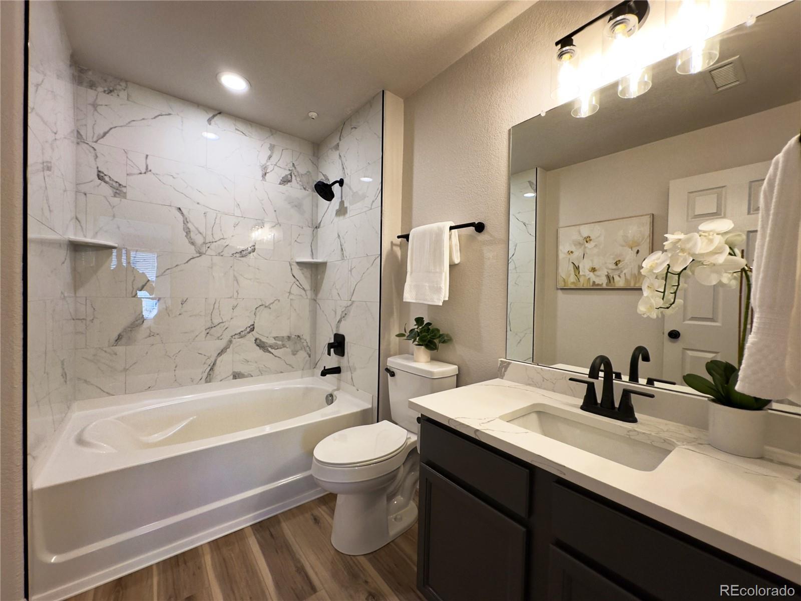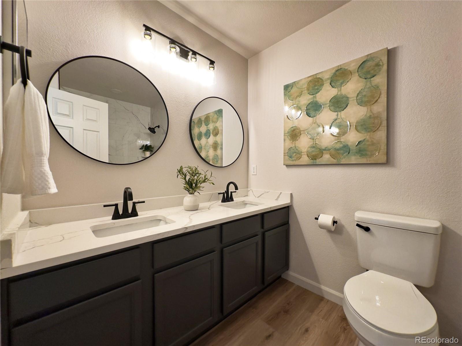 Fully remodeled 2 bed, 2.5 bath townhome in the Sage Creek community feels like new construction and it well appointed. This is a 2 story townhome with 1,448 finished square feet. The main level features a large kitchen, dedicated dining space and 1/2 bath with new luxury vinyl plank flooring. The cozy living room has new carpet, a gas fireplace and sliding door opens up to an ample sized patio and fenced-in back yard (also great storage room). Upstairs are 2 large bedrooms with walk-in closets and both have an en-suite.
