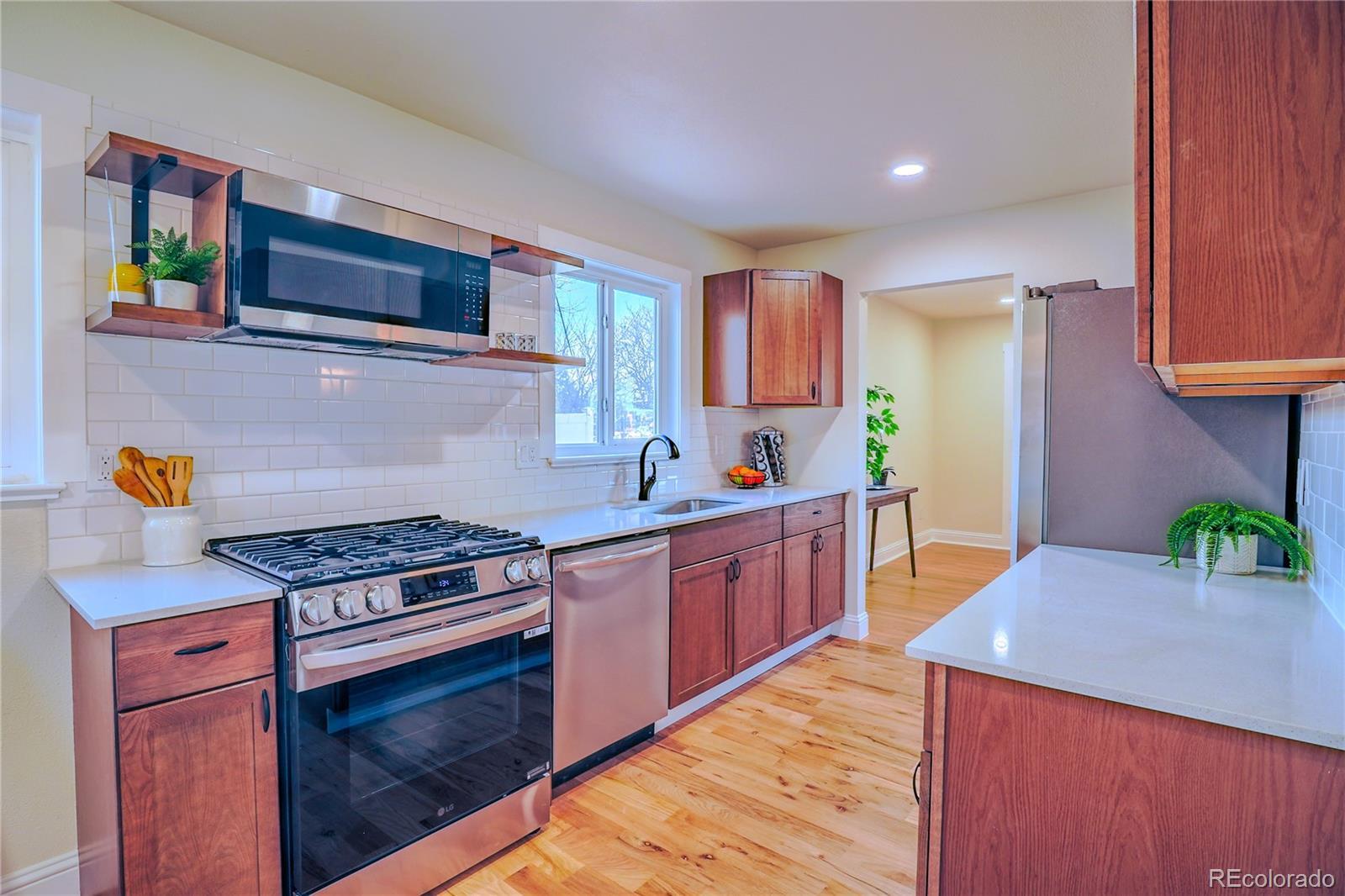 Welcome to a truly turnkey Athmar Park renovation—where classic Denver charm meets the comfort of brand-new everything. This fully updated 4-bedroom, 3-bath home has been thoughtfully renovated from top to bottom, starting with a brand-new kitchen featuring all new, never-used appliances and a clean, modern finish that fits the neighborhood perfectly. Major system upgrades bring real peace of mind: new roof, updated electrical panel, new furnace, and a smart tankless water heater. Inside, you’ll appreciate the extensive improvements throughout, including new drywall in most of the home, new doors, and fresh interior + exterior paint for that crisp, move-in-ready feel. Timeless character remains front and center with original hardwood floors, beautifully refinished to bring warmth and continuity to the main level. The layout is a standout for Athmar Park, offering a rare primary suite with a walk-in closet and ensuite bathroom—a true neighborhood bonus. The finished basement adds valuable additional living space for guests, a home office, rec room, gym, or multi-generational flexibility, complete with new carpet for comfort and coziness. Outside, the large lot delivers the space buyers crave, including new front sod for fresh curb appeal and a backyard that’s equal parts functional and fun. Enjoy a fully fenced dog run that’s completely separate from the rest of the yard—perfect for pet owners who still want an entertaining space—plus a shed for extra storage, a chicken coop for the aspiring urban homesteader, and even a treehouse that adds a touch of magic. The garage is a total game-changer: an oversized 4-car tandem setup that’s two-car wide with extra-long depth in each bay—ideal for additional vehicles, a workshop, storage, bikes, gear, and all the Colorado toys. If you’ve been searching for a home that feels new in a neighborhood people love for its location and character, this is the one.