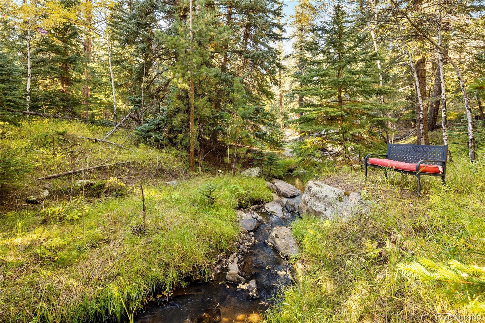 West facing views of Elephant Butte and the gentle flow of Buffalo Creek, this 5,500-square-foot residence offers a special blend of convenience and natural beauty. Thoughtfully designed on 3 secluded acres, the home includes five bedrooms (one non-conforming), three full baths, and three half baths. Multiple living areas provide a spacious and versatile layout, while the well-appointed kitchen is both open and functional. Expansive decks extend the living space outdoors on the gently sloping lot. The oversized main floor primary suite has a private balcony, gas fireplace and 5 piece bath. Upstairs is a lofted area, has 3 generously sized bedrooms and additional flex space for a playroom or office. Ample garage space includes a two-car garage along with an additional four-car tandem/RV garage or workshop, catering to car enthusiasts or those in need of extra storage. Fire mitigation efforts are near completion with the current insurance provider. Recent updates include a new furnace, updated electrical fixtures, new hot tub and plumbing and light fixtures, and fresh carpeting. Ideally situated just minutes from Evergreen High School and Wilmot Elementary, the property is also a quarter-mile from the Alderfer/Three Sisters hiking trails. Downtown Evergreen is just 10 minutes away, with Denver accessible in under an hour. Offering a combination of seclusion and convenience, this exceptional home presents a unique opportunity. This property is agent-owned. This is an active permitted short term rental. Permit does not transfer but furnishings are negotiable. The HOA is inactive.