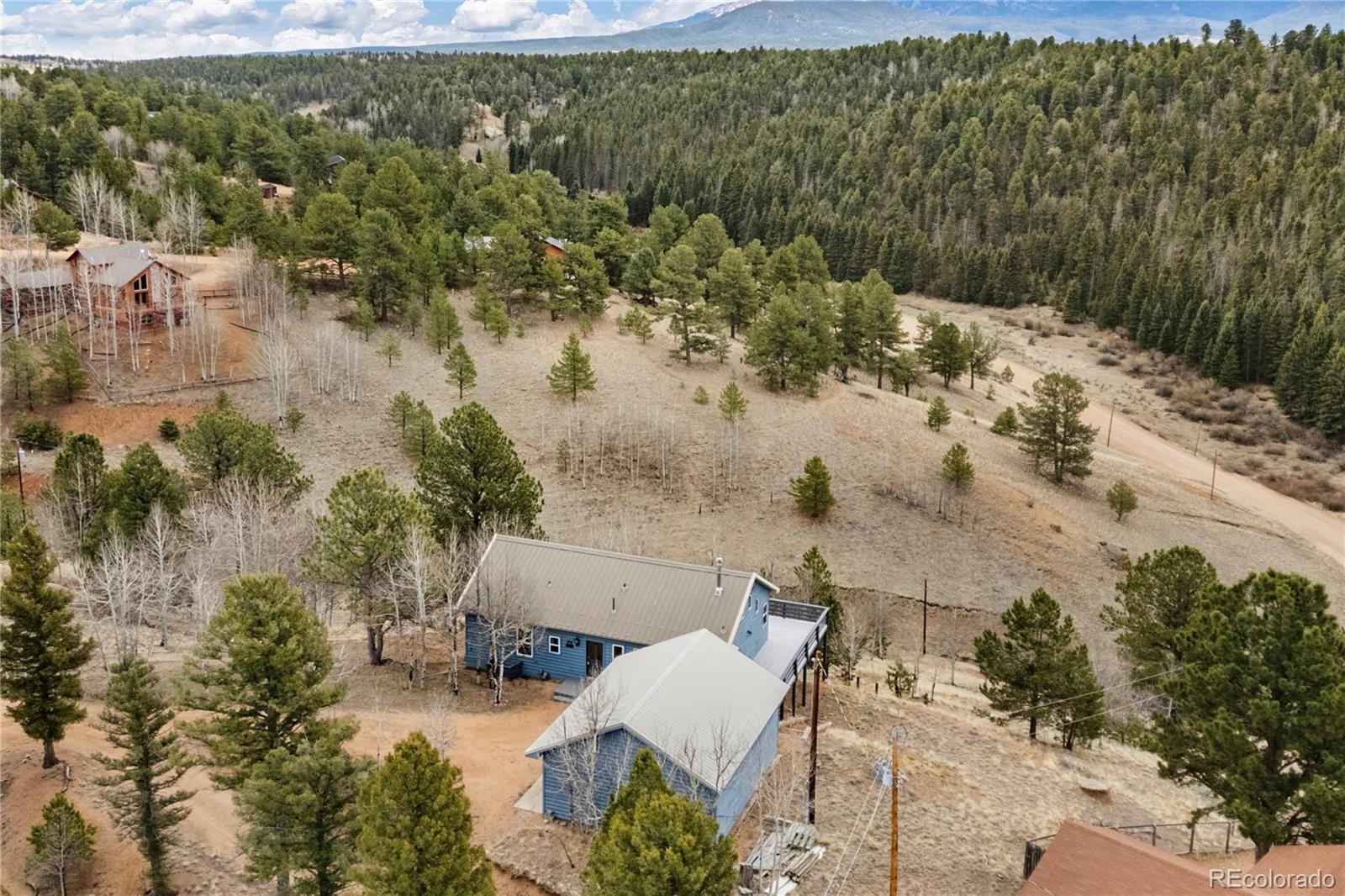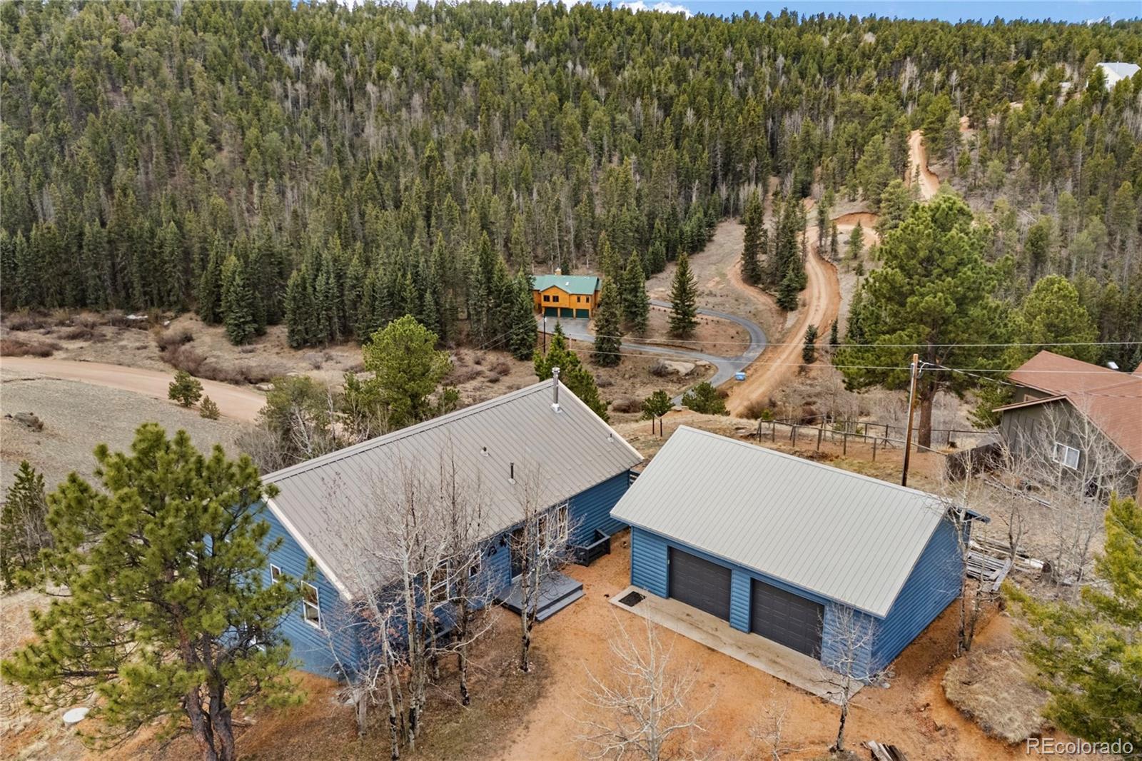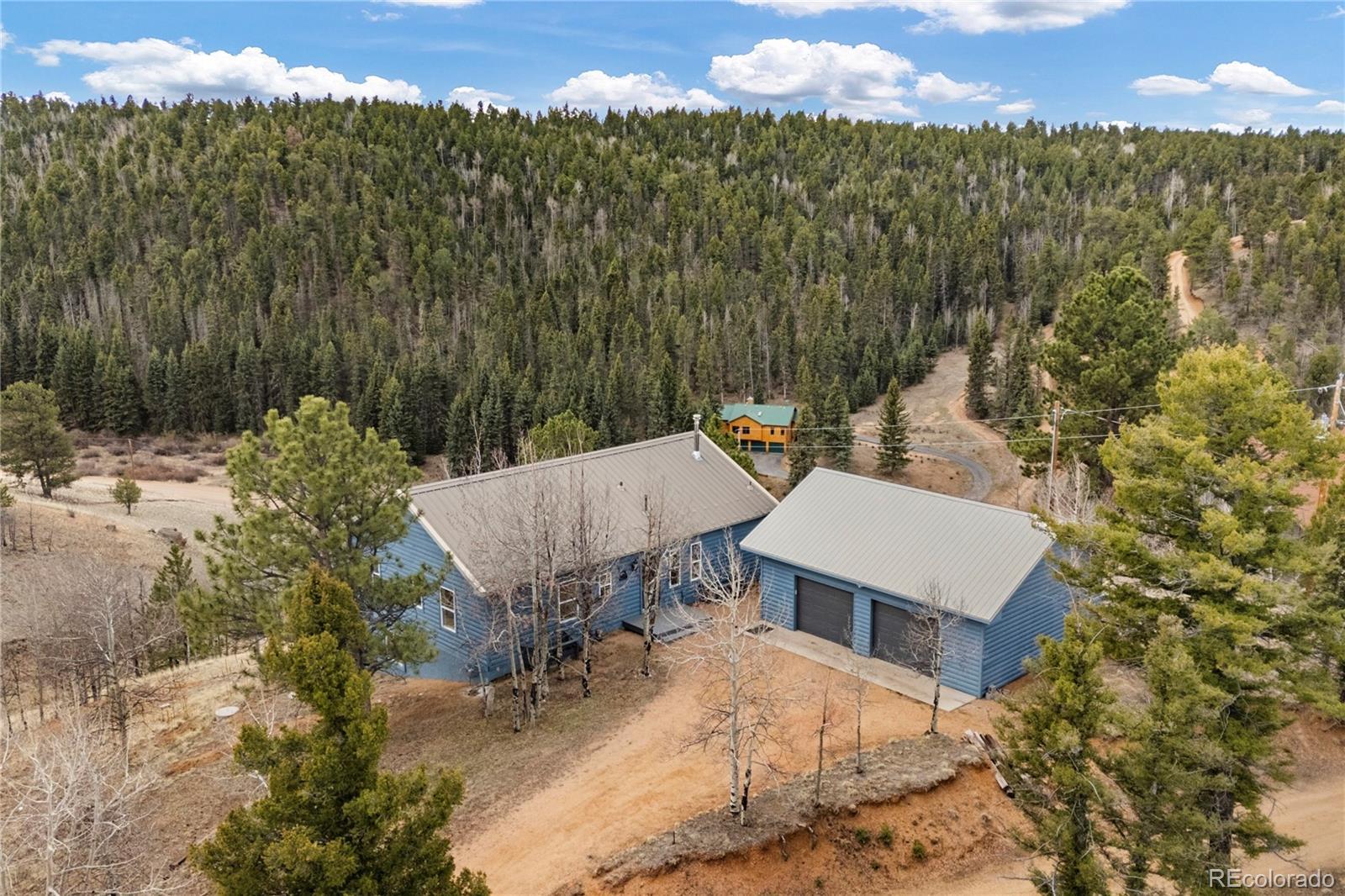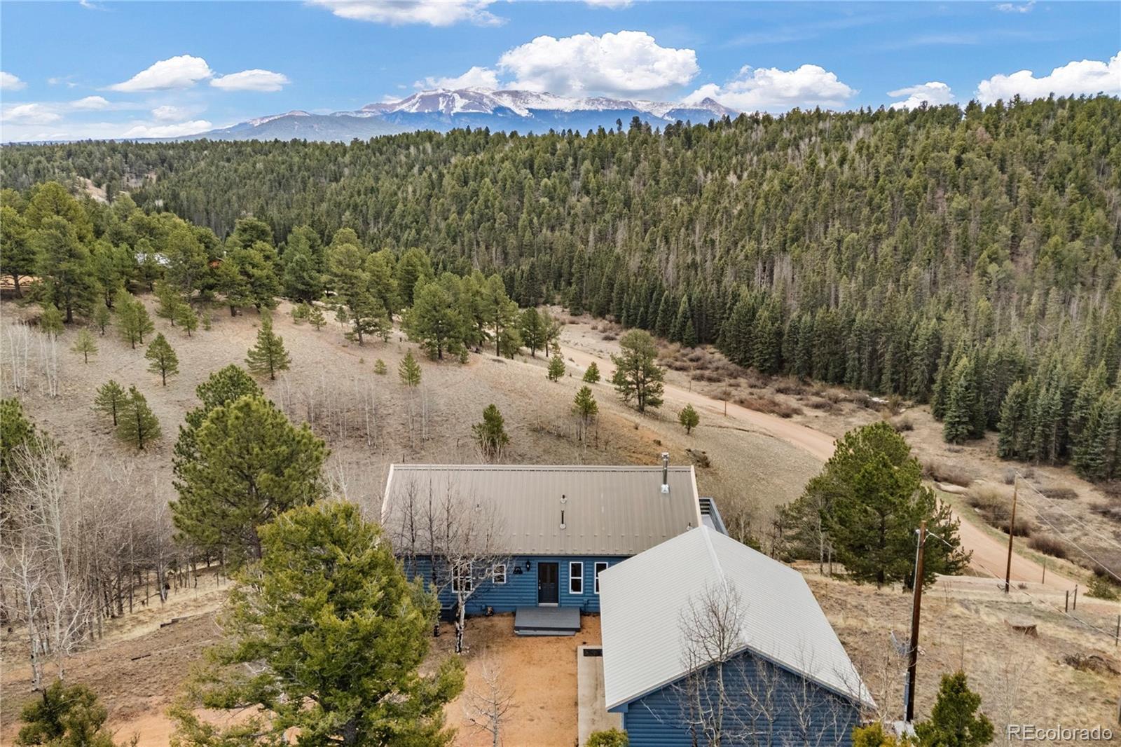 Welcome to 3543 Blue Mesa Drive, a charming log-sided ranch in the desirable Highland Lakes community of Divide, Colorado. This mountain retreat offers breathtaking 360-degree views, including iconic Pikes Peak, and backs to open space for ultimate privacy on over an acre of wooded land. Inside, you’ll find four bedrooms and three bathrooms thoughtfully laid out across a bright, open floor plan. The main-level primary suite offers an ensuite bath, walk-in closet, and deck access. Vaulted ceilings, skylights, and a cozy wood-burning fireplace enhance the inviting living areas, while the fully finished walk-out basement provides flexibility for guests or multi-generational living. The kitchen features solid surface countertops and gas cooking, ideal for everyday living and entertaining. Step outside to a spacious wood deck perfect for relaxing and watching wildlife. Additional highlights include a detached oversized two-car garage, EVO whole-home water filtration, water softener, and RV parking. Highland Lakes offers an unmatched lifestyle with a clubhouse, playground, trails, and nine private lakes for fishing and non-motorized boating—all included with HOA dues. Located minutes from Divide and Woodland Park, this home blends peaceful mountain living with convenience. Whether you're seeking a full-time residence or seasonal escape, this property delivers comfort, privacy, and adventure.