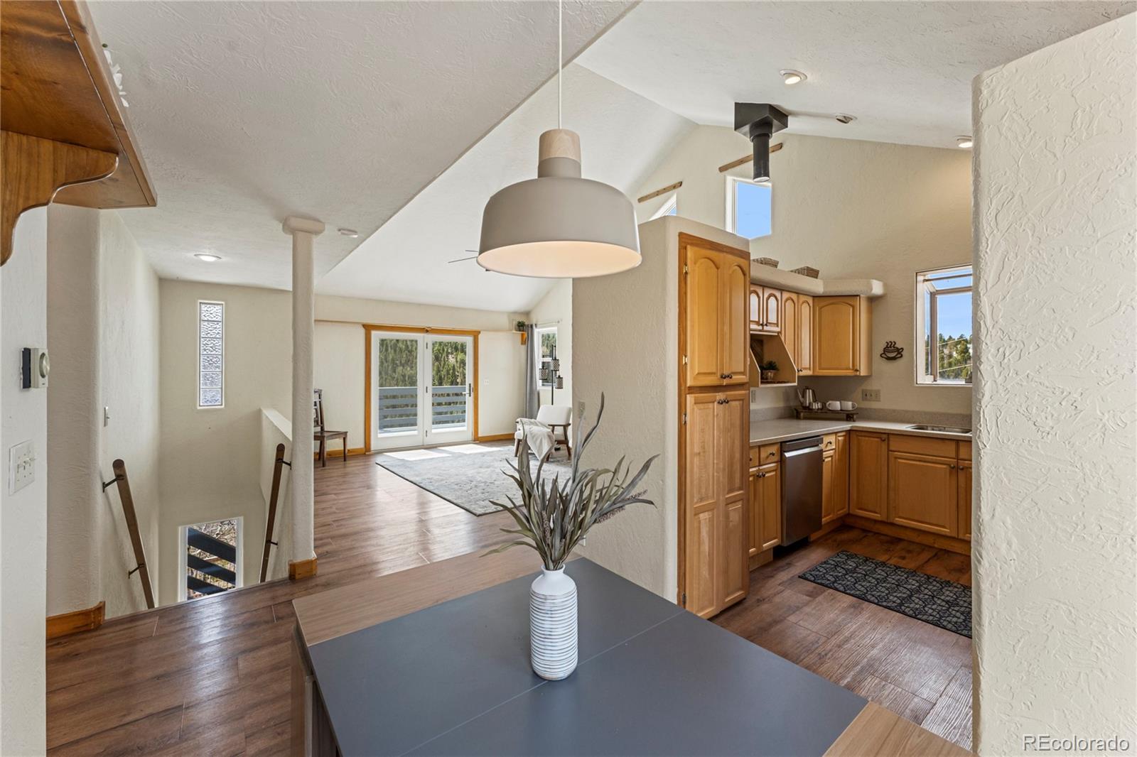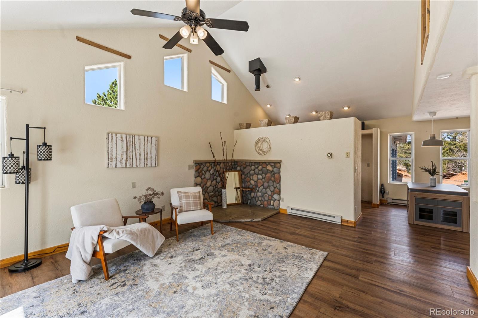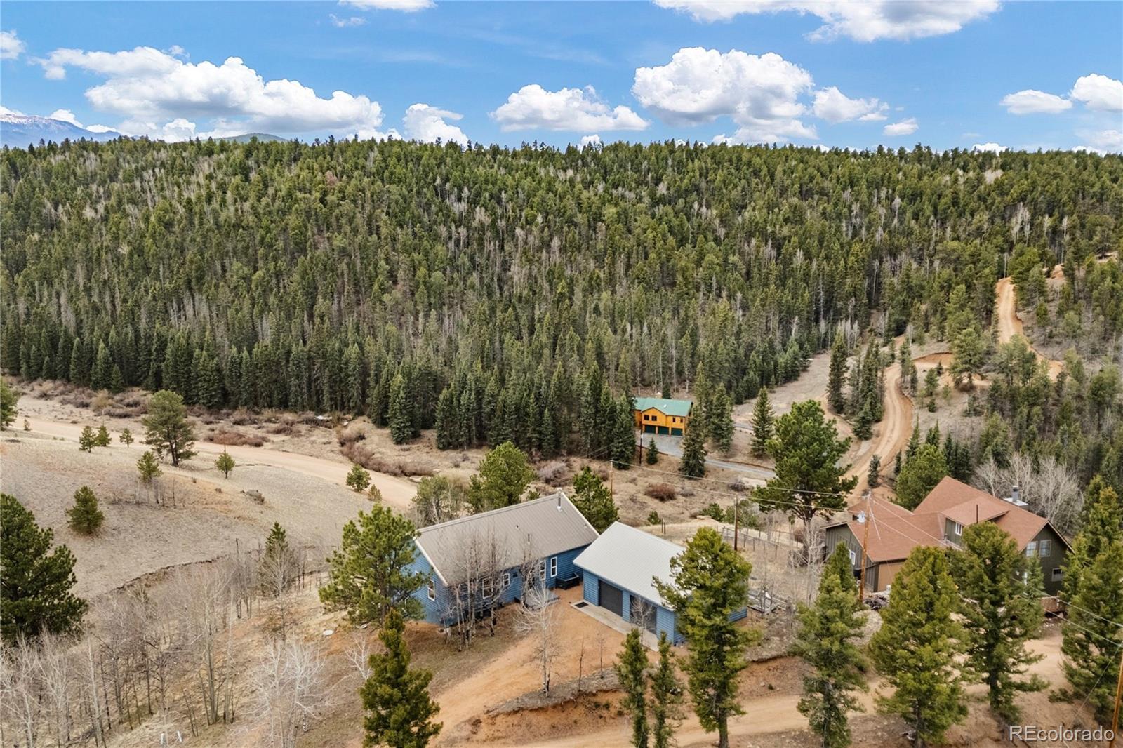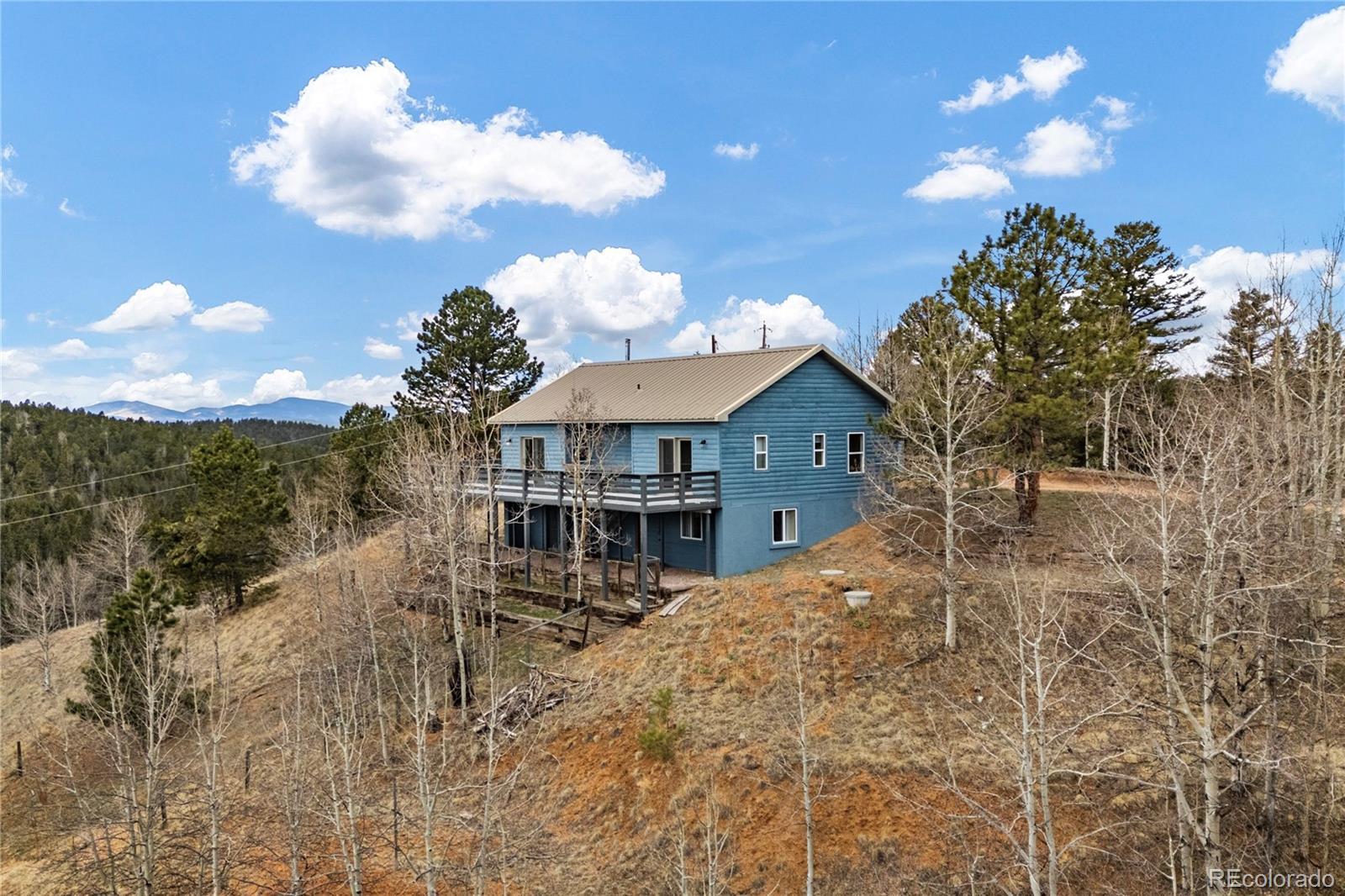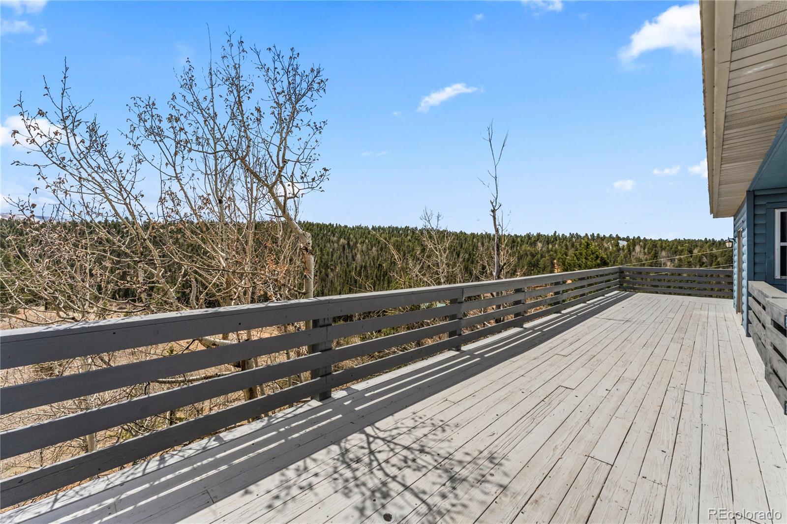 Welcome to 3543 Blue Mesa Drive, a charming log-sided ranch in the desirable Highland Lakes community of Divide, Colorado. This mountain retreat offers breathtaking 360-degree views, including iconic Pikes Peak, and backs to open space for ultimate privacy on over an acre of wooded land. Inside, you’ll find four bedrooms and three bathrooms thoughtfully laid out across a bright, open floor plan. The main-level primary suite offers an ensuite bath, walk-in closet, and deck access. Vaulted ceilings, skylights, and a cozy wood-burning fireplace enhance the inviting living areas, while the fully finished walk-out basement provides flexibility for guests or multi-generational living. The kitchen features solid surface countertops and gas cooking, ideal for everyday living and entertaining. Step outside to a spacious wood deck perfect for relaxing and watching wildlife. Additional highlights include a detached oversized two-car garage, EVO whole-home water filtration, water softener, and RV parking. Highland Lakes offers an unmatched lifestyle with a clubhouse, playground, trails, and nine private lakes for fishing and non-motorized boating—all included with HOA dues. Located minutes from Divide and Woodland Park, this home blends peaceful mountain living with convenience. Whether you're seeking a full-time residence or seasonal escape, this property delivers comfort, privacy, and adventure.