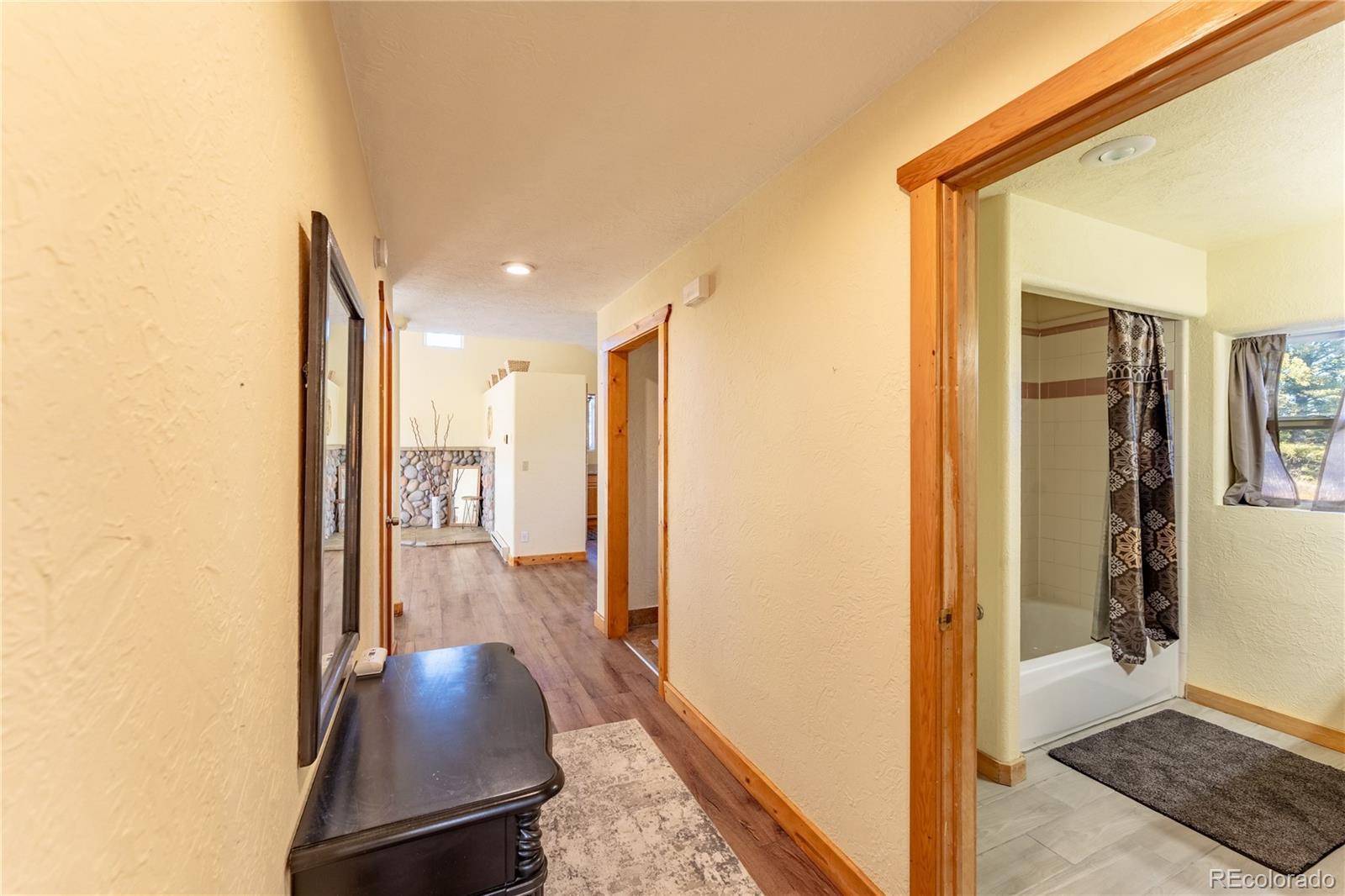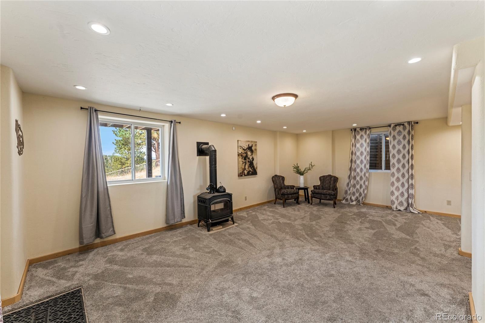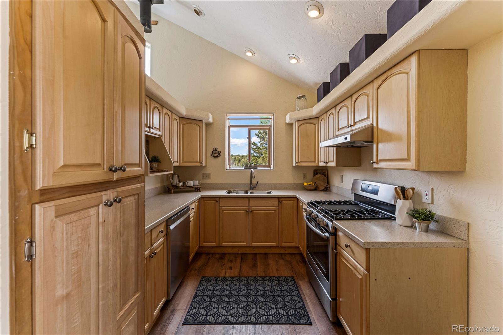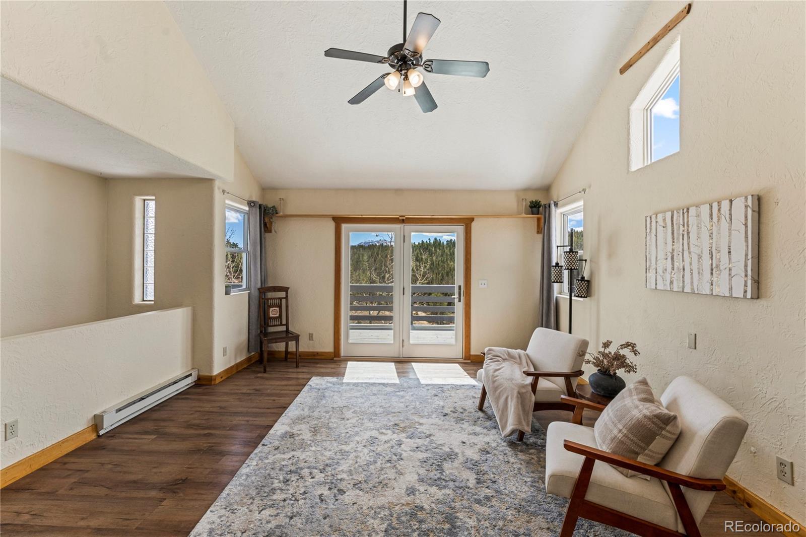 Welcome to 3543 Blue Mesa Drive, a charming log-sided ranch in the desirable Highland Lakes community of Divide, Colorado. This mountain retreat offers breathtaking 360-degree views, including iconic Pikes Peak, and backs to open space for ultimate privacy on over an acre of wooded land. Inside, you’ll find four bedrooms and three bathrooms thoughtfully laid out across a bright, open floor plan. The main-level primary suite offers an ensuite bath, walk-in closet, and deck access. Vaulted ceilings, skylights, and a cozy wood-burning fireplace enhance the inviting living areas, while the fully finished walk-out basement provides flexibility for guests or multi-generational living. The kitchen features solid surface countertops and gas cooking, ideal for everyday living and entertaining. Step outside to a spacious wood deck perfect for relaxing and watching wildlife. Additional highlights include a detached oversized two-car garage, EVO whole-home water filtration, water softener, and RV parking. Highland Lakes offers an unmatched lifestyle with a clubhouse, playground, trails, and nine private lakes for fishing and non-motorized boating—all included with HOA dues. Located minutes from Divide and Woodland Park, this home blends peaceful mountain living with convenience. Whether you're seeking a full-time residence or seasonal escape, this property delivers comfort, privacy, and adventure.