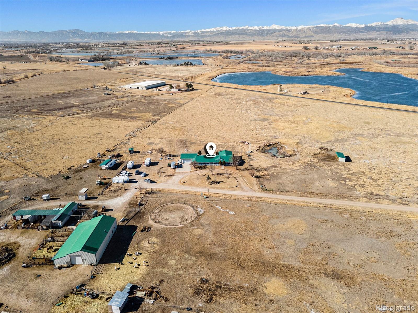 Welcome to your slice of heaven. This perfectly carved out 43 acre parcel offers unobstructed views of the Rocky Mountains making it a dream come true for new owners to reside or homebuilder potential. Positioned in the Town of Fredericks Comprehensive Plan. This plan indicates a zoning of one dwelling per five acres but wait there's more! You have the opportunity to secure a density bonus, allowing for one dwelling per two acres, provided that 50% of this pristine land is preserved. This remarkable property also includes an undivided 1/8 interest in the Delehant Ditch, enhancing its agricultural potential and water access. Planning to make this spot your forever home? The property also offers a well maintained 3 bed, 2 bath plus office Modular home with attached 2 car oversized garage. Enjoy a cup of coffee on your private covered porch and watch the sunrise. Additionally, there's a large 2400 square foot barn with 3 large garage doors attached that can all open up and you can easily move hay, livestock or anything else you need with a breeze. A convenient loafing shed, horse stalls and a charming chicken coop. For added convenience, the main water line (supplied by Left Hand Water) is conveniently located just 50 feet south of the driveway on County Road 7. Easy access to I-25. Don't miss your opportunity to secure one of the last grate pieces of land with boasting views and endless potential! Buyer to verify all information.