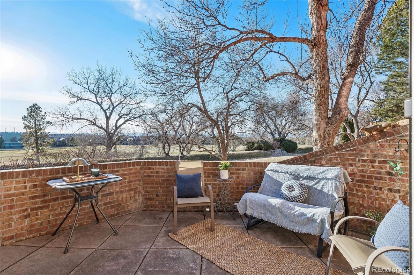 Rare and highly desirable west-facing townhome in the popular Windstream community, ideally positioned overlooking the Highline Canal, mountain views, and the fairways of the Cherry Creek Country Club. This light-filled residence benefits from almost all new windows throughout the home, enhancing natural light, energy efficiency, and expansive views. The setting offers a rare blend of privacy, open vistas, and low-maintenance living, complemented by a community pool, clubhouse, and thoughtfully maintained landscaping along private, curved streets. The main level features vaulted ceilings in the living room, wood flooring, skylights, and seamless flow into the kitchen, which includes tile flooring and counters, along with a Samsung refrigerator featuring an integrated beverage center. Dramatic two-story windows—particularly striking from the living room with fireplace and the dining area—flood the space with natural light and frame the surrounding scenery. Upstairs, an open flex space captures magnificent mountain and golf course views, creating an ideal setting for a home office, workout area, or reading nook. The primary suite offers a spacious closet, an attractively updated shower, and a private water closet, while the large secondary bedroom provides comfortable guest accommodations. The finished basement adds valuable living space with a family room, laundry area, and excellent storage, offering flexibility for everyday living, hobbies, or organization. Additional highlights include a wonderful patio with views, two bedrooms, two and one-half baths, a versatile study/loft area, an attached two-car garage, and skylights throughout, including the living room and primary bedroom. The HOA covers insurance, exterior maintenance, grounds, trash, recycling, sewer, snow removal, and water—allowing for truly effortless living in a coveted Denver location.