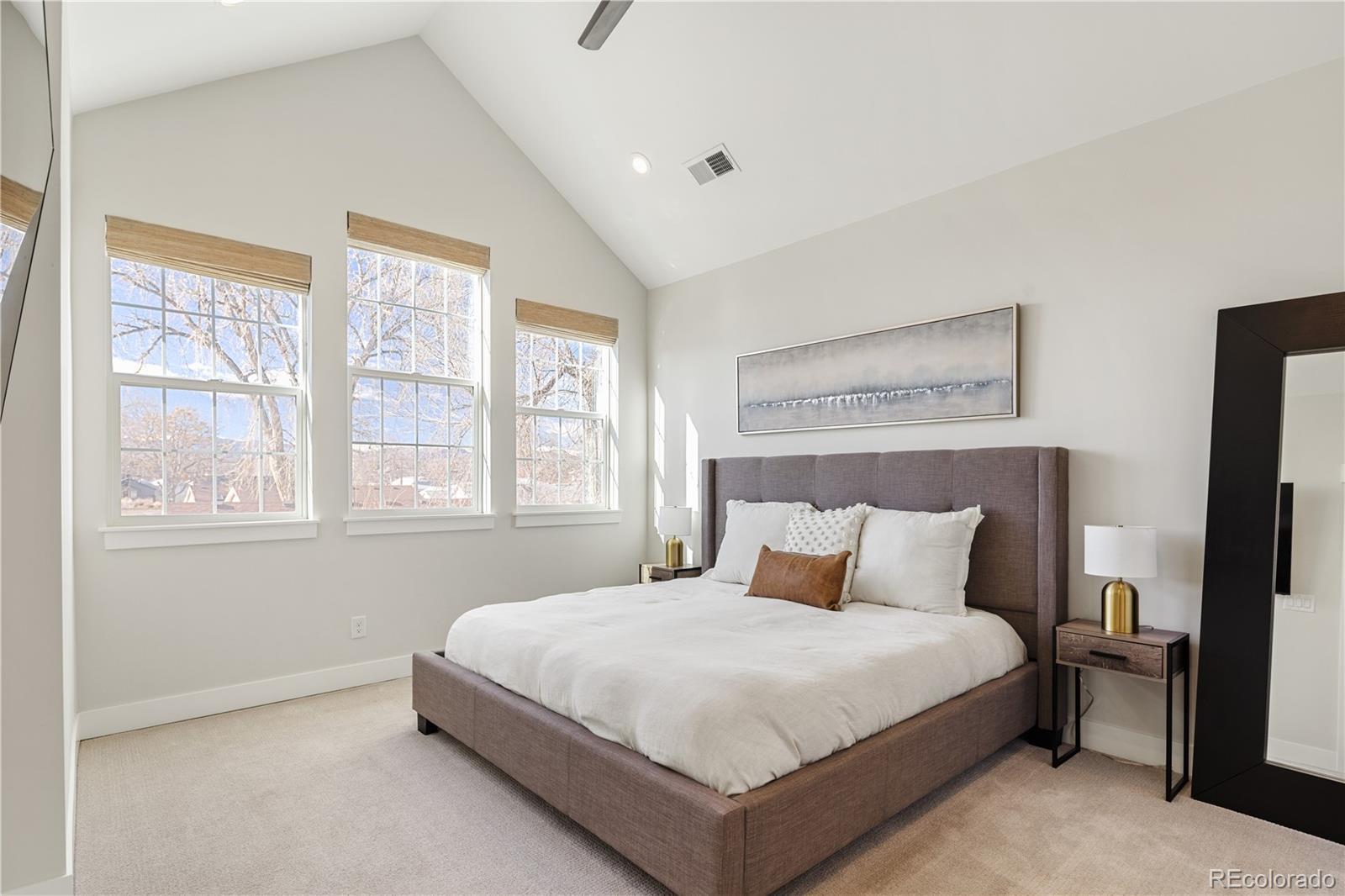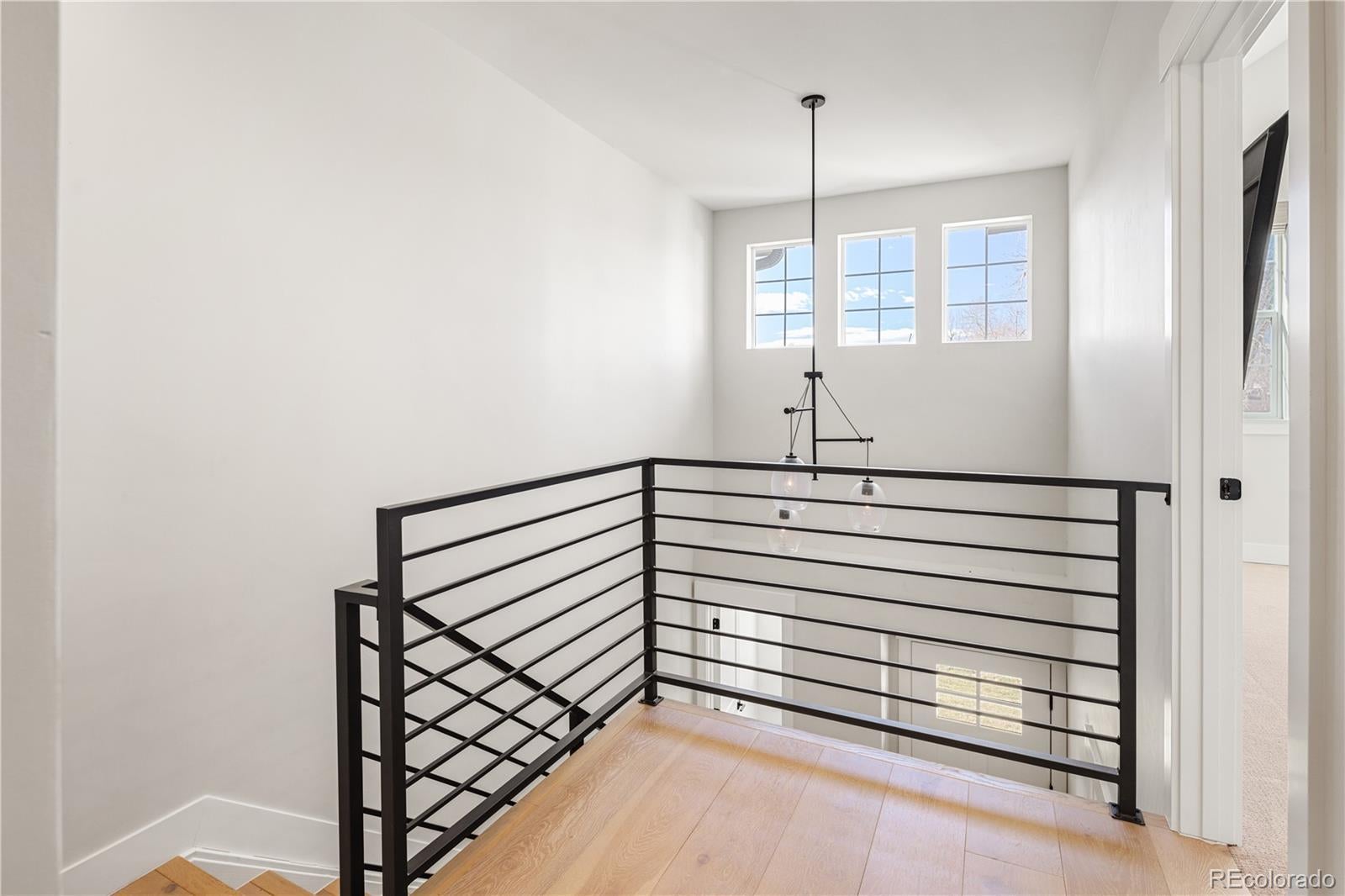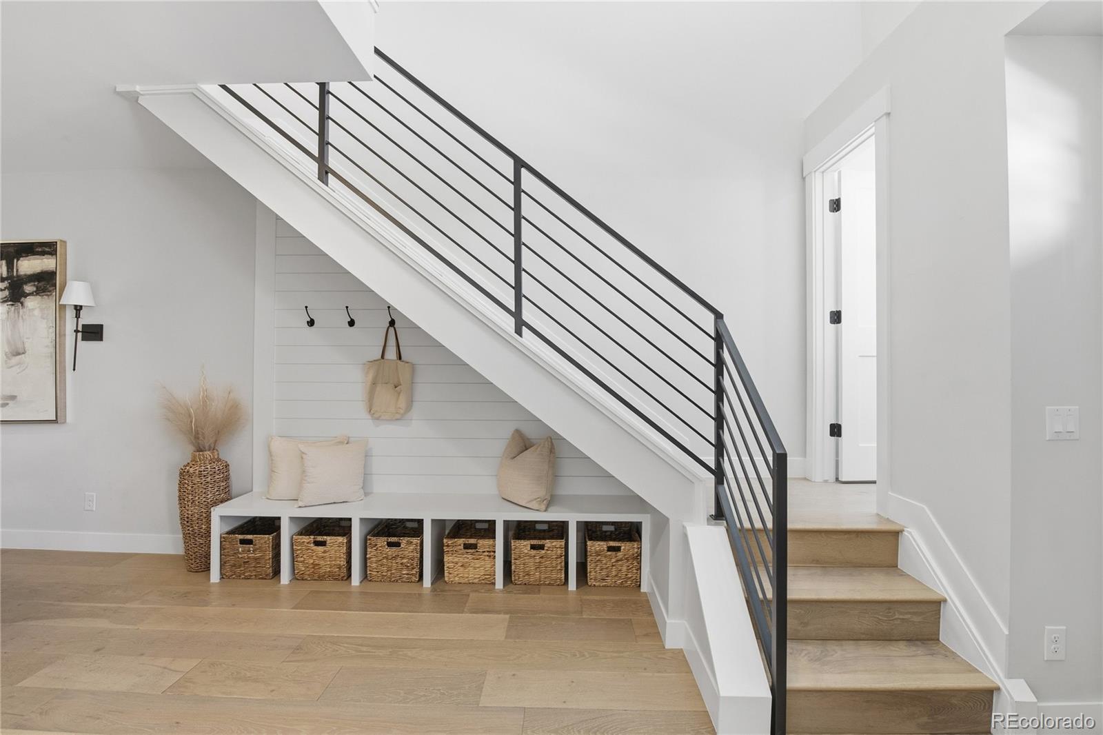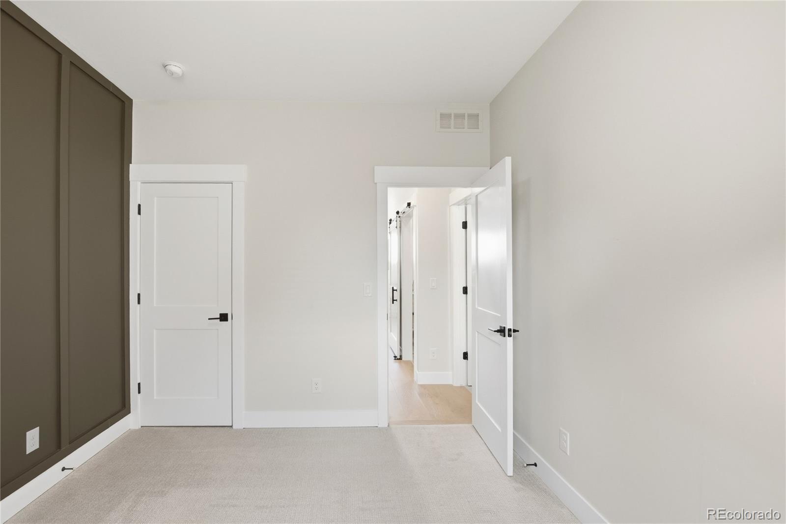 This stunning 4-bedroom, 4-bath townhome, built in 2022, offers the perfect blend of modern comfort, thoughtful layout, and an unbeatable Arvada location. Just a 3-minute drive & 16-minute walk to Olde Town Arvada, you’ll enjoy easy access to one of the area’s most vibrant districts, home to over 31 bars and restaurants, charming boutiques, coffee houses, and year-round community events. From the moment you arrive, the modern European-inspired architecture and quality exterior construction set the tone. Inside, the home is filled with natural light from west-facing windows, while dramatic vaulted ceilings in the entryway lead to a thoughtfully designed custom under-stairs bench featuring coat hooks, seating, and built-in storage cubbies—perfect for keeping everyday essentials. The open-concept kitchen is a showpiece with custom multi-tone cabinetry by Caruso Kitchens, soft-close cabinets, a large island with quartz countertops, farmhouse apron sink, GE Profile appliances, including a gas range with multi-ring burner, and French door refrigerator with water dispenser. One of the standout features is the private indoor/outdoor courtyard, creating an inviting space for morning coffee, evening gatherings, or quiet relaxation. Other key home features include refined hand-trowel wall texture throughout, engineered hardwood flooring in the main living spaces. The primary suite feels luxurious and private, featuring custom closets, barn door entry, dual vanity, and a spa-inspired bath with a luxury shower & frameless European glass. Each bedroom offers ample space and comfort, providing flexibility for guests, a home office, or additional living space. Above the 2-car heated garage, a private guest suite with its own ensuite bathroom is ideal for visitors, extended family, or a secluded home office. Perfectly located just minutes from Lady Nomada, Bonfire Burritos, Stone Cellar Bistro, Costco, In-N-Out Burger, and all the retail and dining options at Arvada Shopping Center.