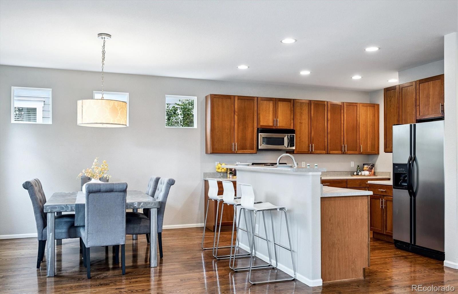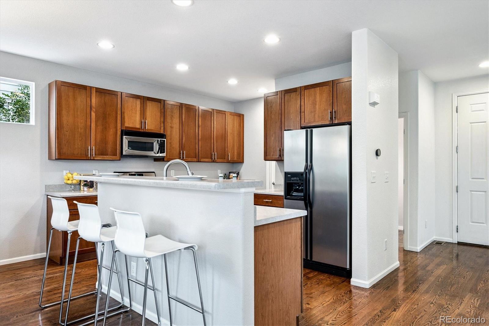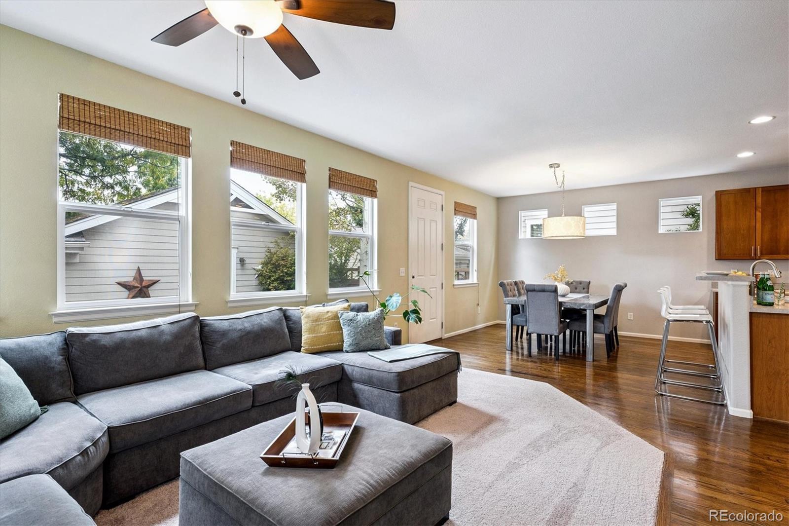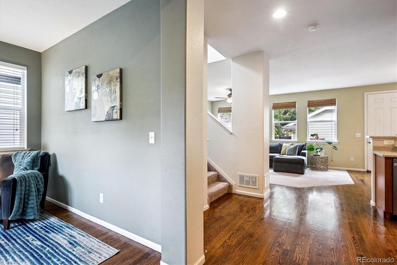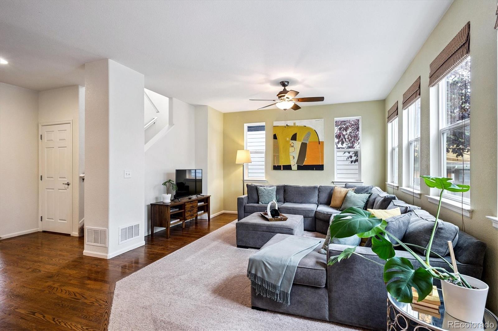 Tucked into the heart of Central Park’s mature and tree-lined streets, this classic two-story feels like home the moment you arrive. Just a block from Puddle Jumper Pool, a quick bike ride to Stanley Marketplace, and surrounded by neighborhood schools, the location is as dreamy as it gets. Step inside to find some fresh paint, brand new carpet (main and upper), gorgeous hardwoods, and a flexible floor plan that knows how to have fun! Whether it’s the sun-splashed great room that flows into the kitchen that boasts extra cabinetry with pull out drawer, a large dining space, a breakfast bar, AND a pantry you could hide in.. Or, the formal living room that could easily double as a home office with functional built in shelving.. OR the convenient powder bath, perfect for guests.. you will surely be pleased! Upstairs, the primary suite serves up a large walk-in closet and a 5 piece ensuite bath with a large tub to soak your stresses away! While two additional bedrooms, full bath, and a handy loft offer plenty of room to spread out. The finished basement? It’s basically game night and movie marathon headquarters, complete with a fun and flexible family room with in-wall speakers, a wet bar & bev fridge, bedroom #4, a roomy full bath, and ample storage options. Outside, the sweet backyard provides a private retreat where you can sip, grill, or simply soak in the quiet charm of this established neighborhood. And for your ease of mind… Seller is offering a 1 year home warranty (up to $600 in value!)What more could you ask for?