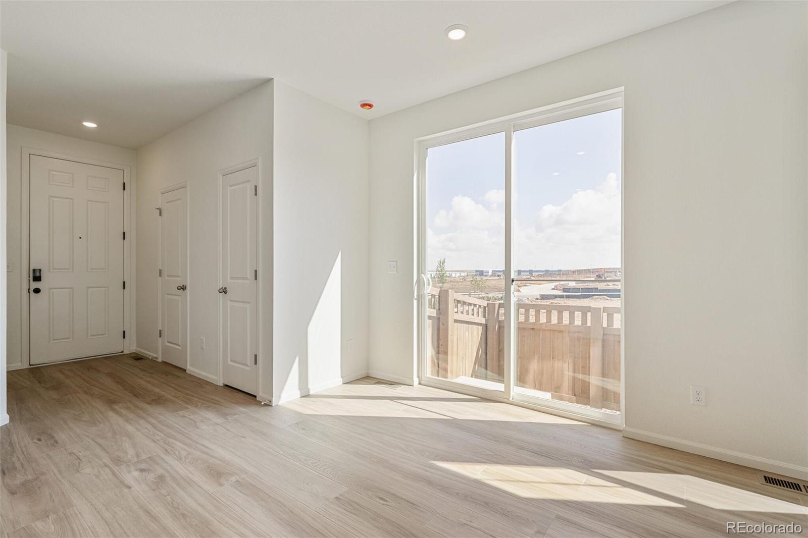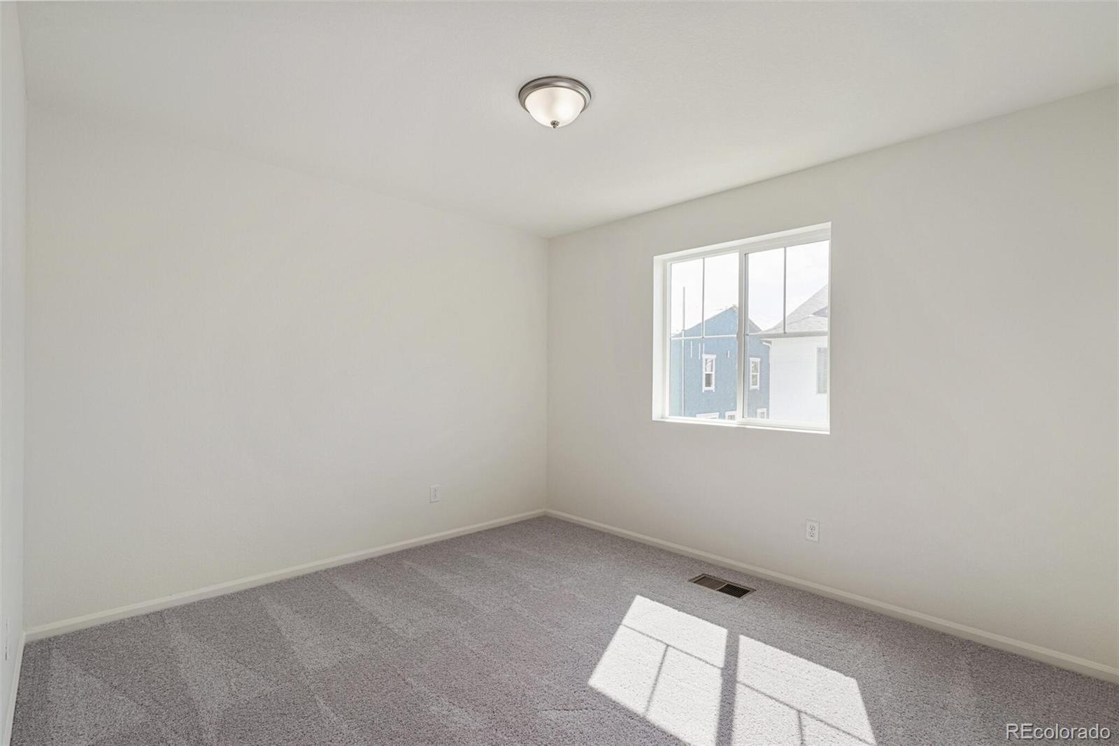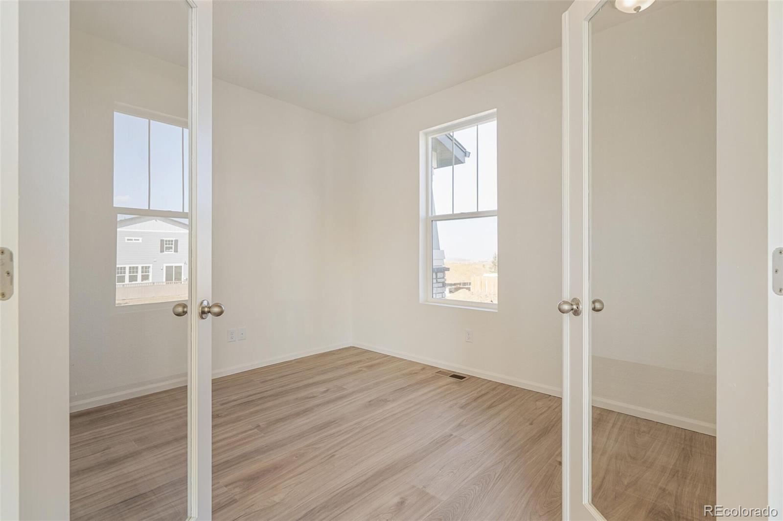 Discover this stunning 1,755 sq ft paired home villa featuring 3 bedrooms, a versatile den, spacious loft, and 2.5 baths, perfectly situated on a 2,848 sq ft north-facing lot. Designed with modern living in mind, this home boasts quartz countertops, luxury vinyl plank (LVP) flooring, and elegant stone exterior accents that add curb appeal and character. The open-concept layout offers flexibility for work, play, and relaxation, with natural light flowing throughout. A full unfinished basement provides ample storage space or the opportunity to create additional living areas to suit your needs. Located in a vibrant new community just 10 minutes from Denver International Airport (DIA), residents will soon enjoy access to 43.3 acres of parks, a resort-style pool, basketball court, and more. Whether you're working, entertaining, or simply enjoying a quiet evening at home, this villa offers the perfect blend of style, convenience, and low-maintenance living. Team Lassen represents the seller/builder as a Transaction Broker.