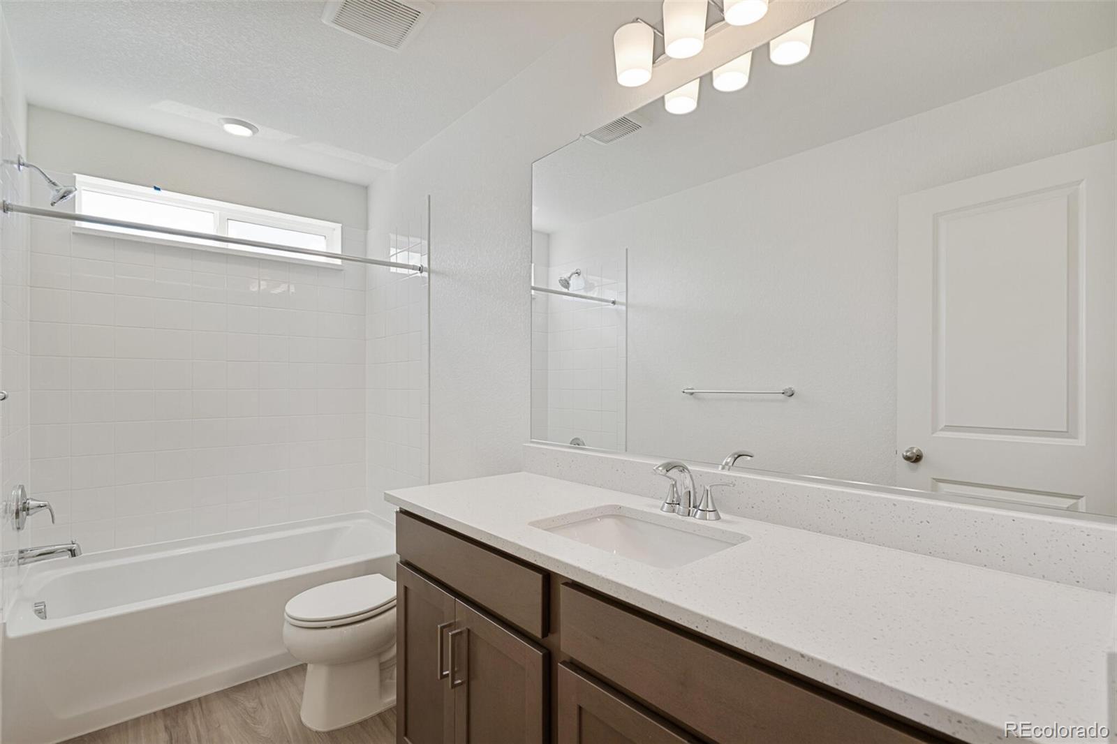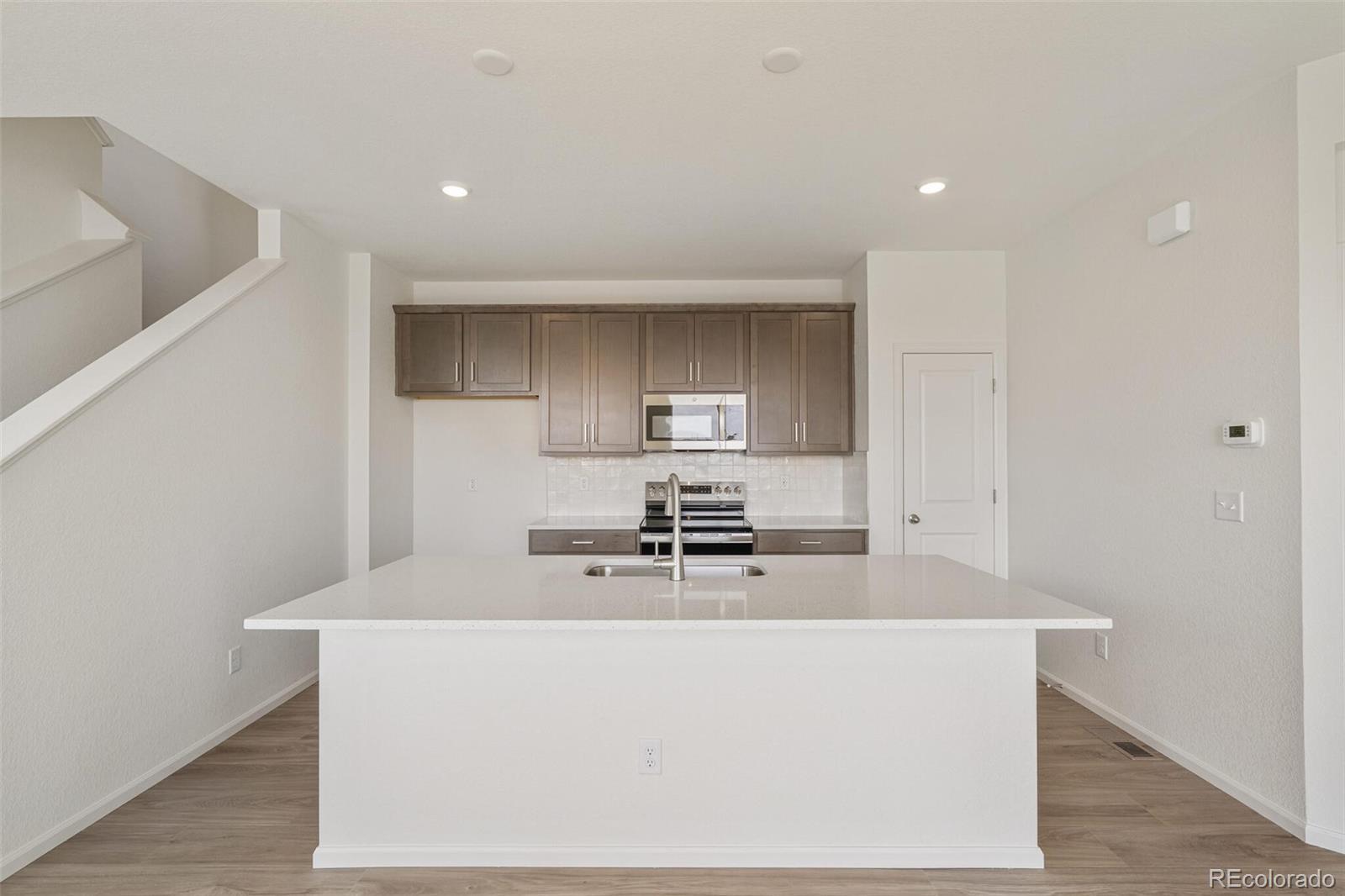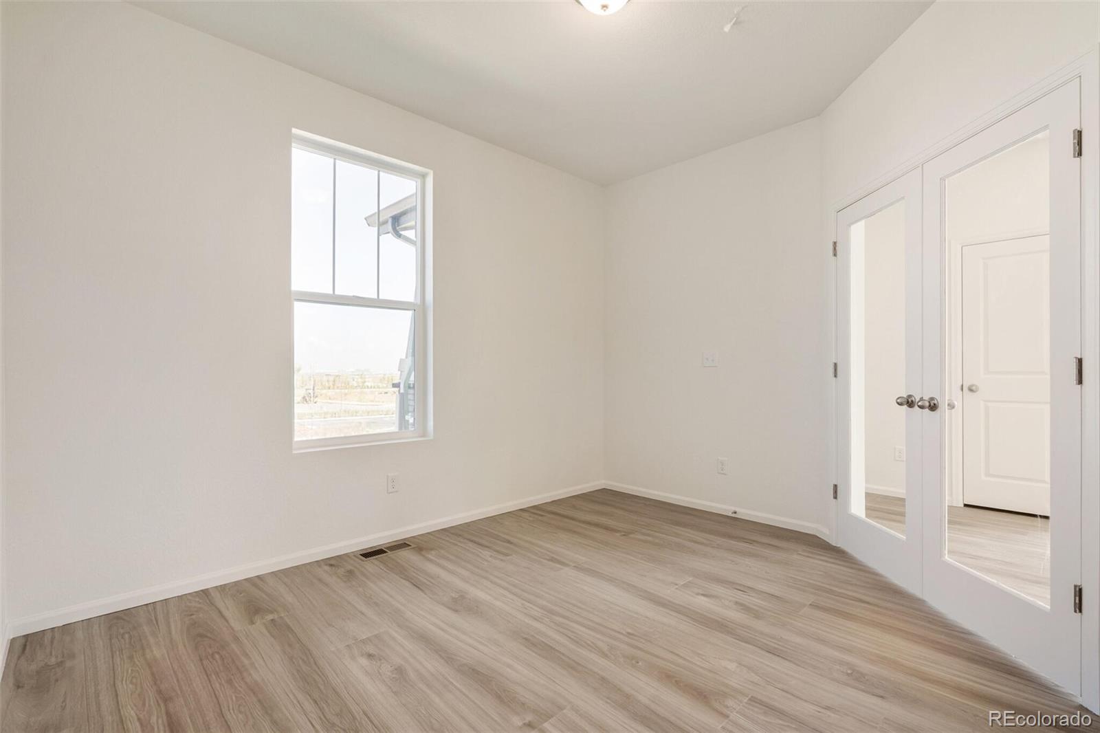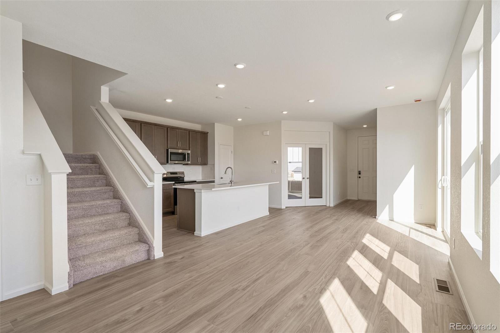 Discover this stunning 1,755 sq ft paired home villa featuring 3 bedrooms, a versatile den, spacious loft, and 2.5 baths, perfectly situated on a 2,848 sq ft north-facing lot. Designed with modern living in mind, this home boasts quartz countertops, luxury vinyl plank (LVP) flooring, and elegant stone exterior accents that add curb appeal and character. The open-concept layout offers flexibility for work, play, and relaxation, with natural light flowing throughout. A full unfinished basement provides ample storage space or the opportunity to create additional living areas to suit your needs. Located in a vibrant new community just 10 minutes from Denver International Airport (DIA), residents will soon enjoy access to 43.3 acres of parks, a resort-style pool, basketball court, and more. Whether you're working, entertaining, or simply enjoying a quiet evening at home, this villa offers the perfect blend of style, convenience, and low-maintenance living. Team Lassen represents the seller/builder as a Transaction Broker.