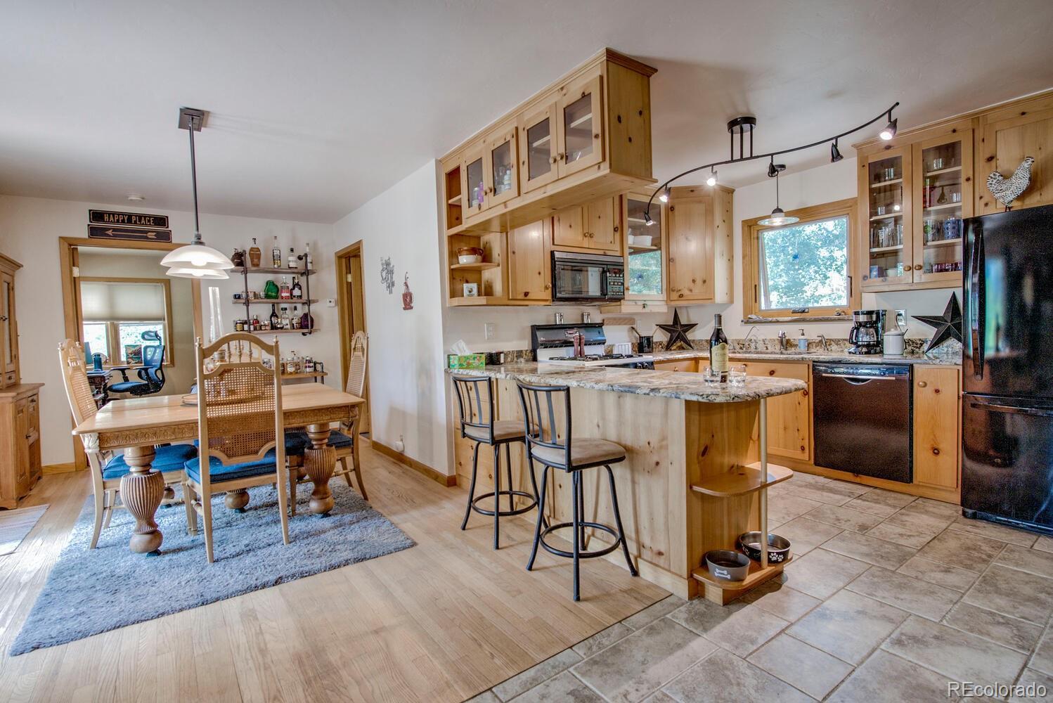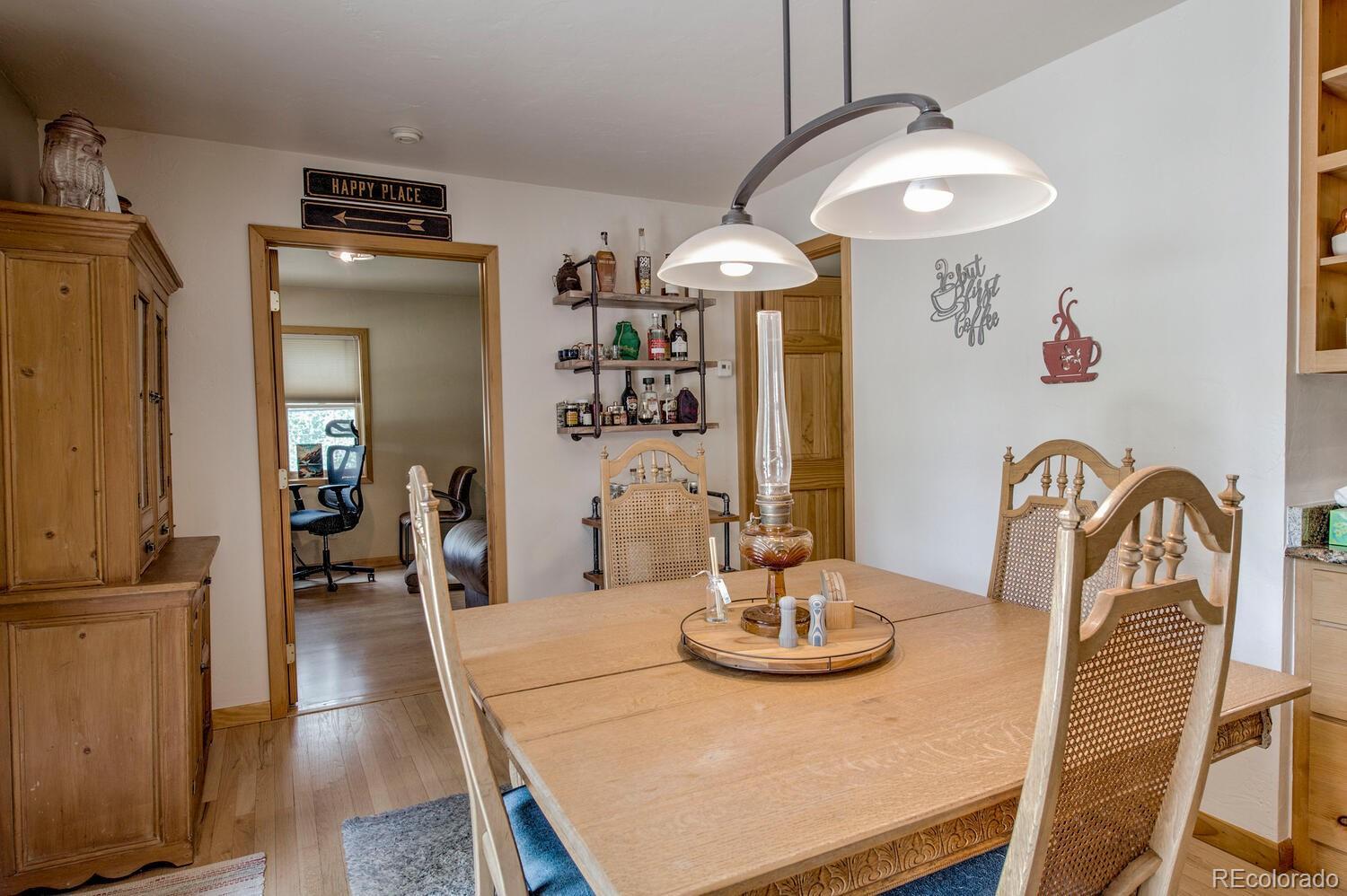 Escape to your private mountain retreat on .64 acres in the heart of Ptarmigan Mountain, where this 2,277 sqft, 4-bedroom, 3-bathroom mountain masterpiece offers the perfect blend of luxury and seclusion. Just minutes from the vibrant, booming downtown Silverthorne, but you’ll feel a million miles away! Stunning panoramic views of Red and Buffalo Mountains framed by aspens and pine trees. Step into an open floor plan designed for modern living, featuring a gourmet kitchen with sleek granite countertops and a cozy Vermont Castings wood-burning stove that anchors the inviting living space. The expansive master bedroom serves as a serene retreat, with a large walk-in closet and a classic clawfoot tub to relax in. Outside, a covered deck beckons for morning coffee or evening stargazing, while the private hot tub promises ultimate relaxation. The detached oversized 2-car garage offers ample space for vehicles, toys, boats, or RVs, with no HOA restrictions to limit your lifestyle. A charming potting shed adds a touch of character for gardening enthusiasts. This is more than a home—it’s a lifestyle, perfectly positioned for those seeking luxury, privacy, and adventure.