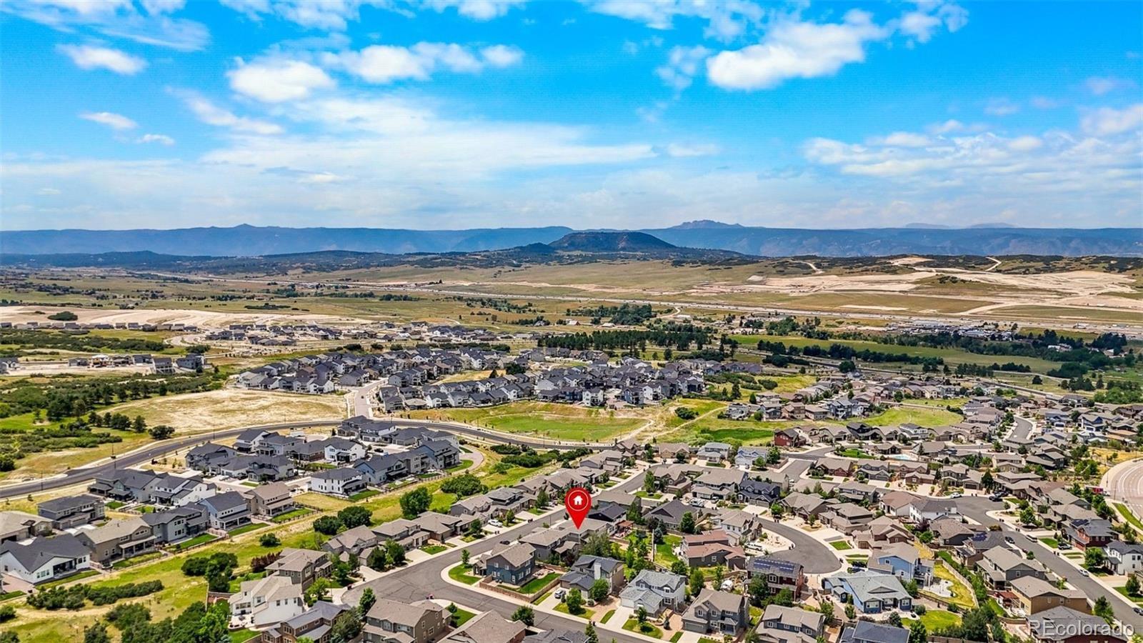 Rare Opportunity in a highly desirable neighborhood of Kings Ridge! This beautifully upgraded property boasts over 4,000 finished square feet, offering incredible space, custom updates, functionality, and value! With an outstanding floor plan that is both versatile and inviting, this home has something for everyone. The main level features a private office and a cozy living room area complete with a gas fireplace. There is also a great room, perfect for entertaining or everyday living or a non formal dinning room. The gourmet kitchen is a chef’s dream, featuring granite countertops, a double oven, a gas cooktop, a walk-in pantry, and a butler’s pass-through to the formal dining room. All appliances are included! Upstairs, you will find a loft, great extra space! Four spacious bedrooms and 3 full baths, including a primary suite with walk-in closets , a spa-like 5-piece bath, has a wet bar area as well! There is also a convenient upper-level laundry room. The finished basement adds even more value and functionality with high ceilings, a wet bar with a mini-fridge, a great room great for entertainment,bonus space, and a private guest suite with a luxurious ¾ bath featuring a walk-in shower. Step outside to enjoy your amazing backyard oasis with a covered patio, ideal for outdoor entertaining. This home is located just minutes from downtown Castle Rock, top-rated schools, trails, parks, shopping, restaurants, and the popular outlets at Castle Rock. This property offers the perfect balance of space, comfort, luxury, and convenience, with low HOA fees, a community pool, and beautiful mountain views. Don’t miss this opportunity!