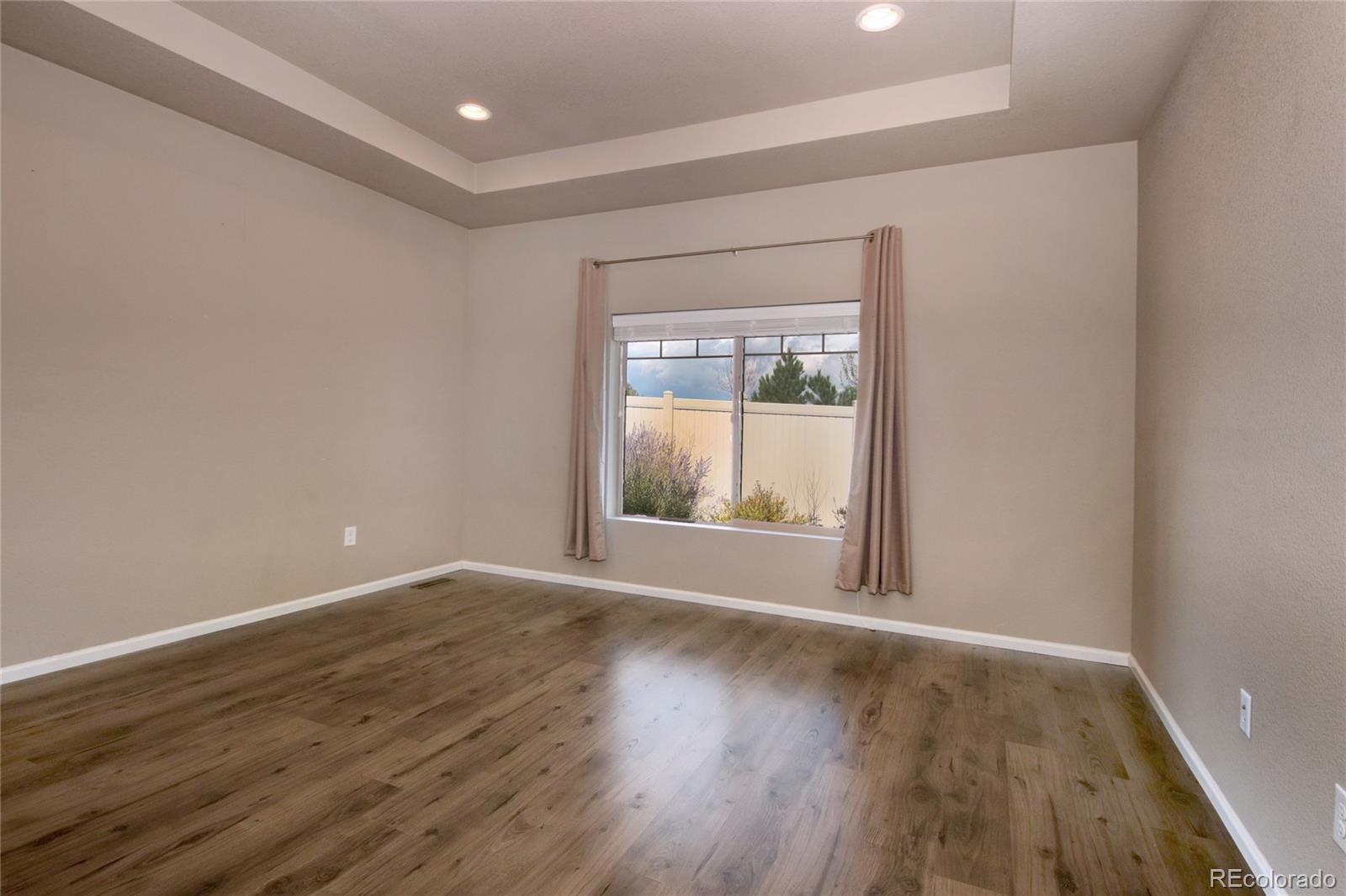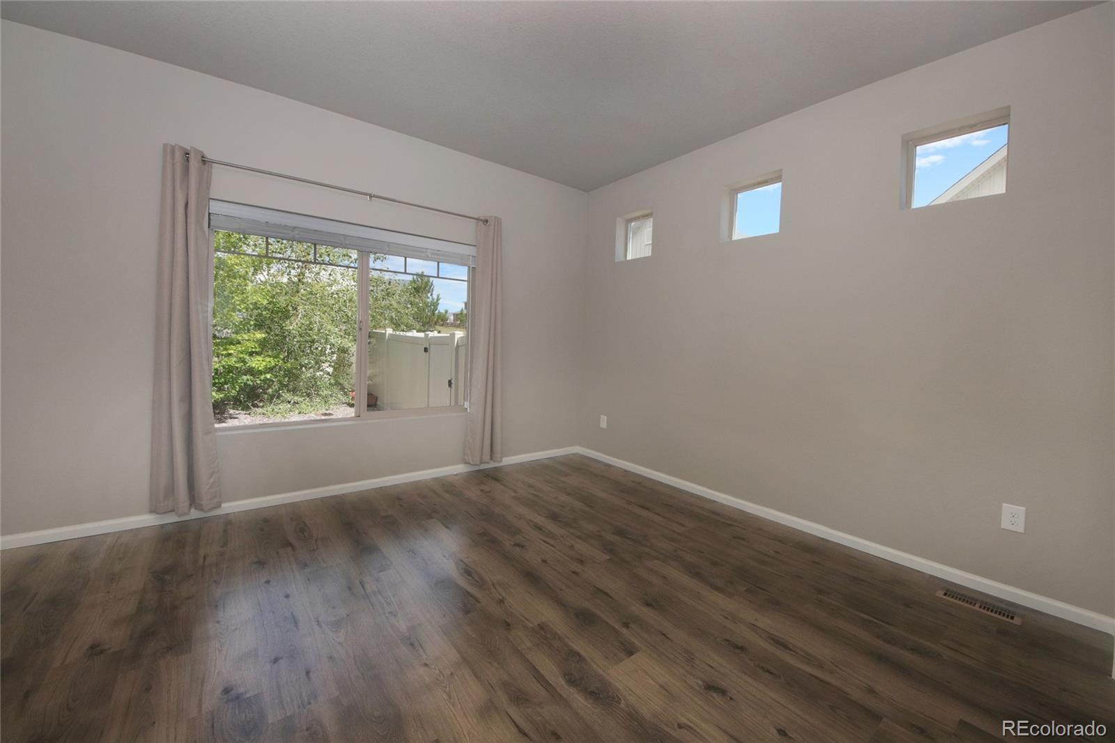 Welcome to your new home in the highly sought-after Golden Briar enclave of Banning Lewis Ranch! This thoughtfully designed 4-bedroom, 3-bath residence offers a unique blend of space, style, and convenience. The flexible layout features a spacious primary suite connected by a Jack-and-Jill bathroom to a versatile office—perfect for remote work or a guest room—complete with its own private walkout to the backyard. Situated on a generous corner lot, the low-maintenance yard wraps gracefully around the home, providing the perfect backdrop for relaxing evenings or effortless entertaining. Step inside and you’ll discover a massive downstairs great room, large enough to create multiple zones—think media lounge, game room, or hobby space—all under one roof. As a resident, you’ll enjoy exclusive access to a gated garden and BBQ area, plus you’re only a short 5-minute walk to incredible community amenities: the dog park, water park, pickleball courts, and Banning Lewis Preparatory Academy. This home is the perfect mix of comfort, flexibility, and low-maintenance living in one of Colorado Springs’ most desirable neighborhoods.