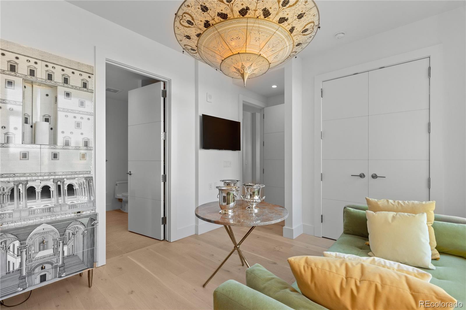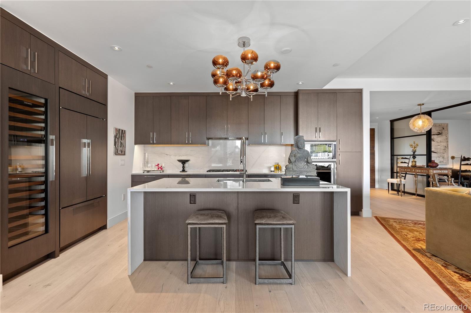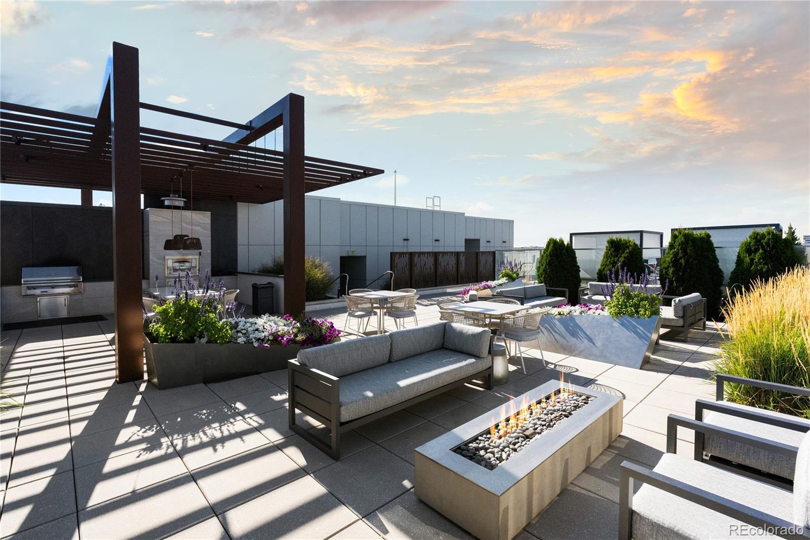Discover refined elegance in the heart of Cherry Creek with this remarkable southwest corner home in Laurel, an exclusive high-rise enclave of just 71 residences. Offering 1,879 square feet of impeccably upgraded living space, this rare 2-bedroom + study, 2.5-bath home blends sophisticated design w/ exceptional indoor–outdoor flow. A hallmark of this residence is its private terrace—the largest in this layout—accessible through dual sliding doors from both the dining & living rooms. Facing south, this outdoor retreat becomes a seamless extension of the home’s open-concept interior. Inside, a stunning new Marquis Enclave 60" wraparound fireplace anchors the living area w/ modern elegance. The upgraded kitchen impresses w/ a dramatic quartzite waterfall island, glamorous custom cabinetry & top-tier appliances, including a new Wolf M Series oven & Sub-Zero 100+ bottle wine refrigerator. Newly installed hardwood flooring flows throughout the residence, enhancing its refined aesthetic. The spacious primary suite is a sanctuary of luxury, featuring a designer 5-piece bath adorned w/ Ann Sacks penny tile, a dual-sink vanity, & a new 62" soaking tub. A well-appointed guest suite includes a custom built-in closet, while the study—complete w/ sliding glass doors—offers versatility as an expanded living area or flexible workspace. Additional highlights include a full-sized laundry room w/ built-in storage, an oversized entrance foyer w/ a custom coat closet, & Lutron motorized shades & lighting throughout. The home also includes 2 reserved parking spaces & separate storage locker. Residents of Laurel enjoy a curated lifestyle w/ exceptional amenities, including an enviable rooftop retreat featuring a heated pool, cabanas & summer kitchen, as well as an attended lobby offering personalized resident services. Set in an unmatched Cherry Creek location, this residence is just steps from the neighborhood’s finest dining, boutiques & galleries.