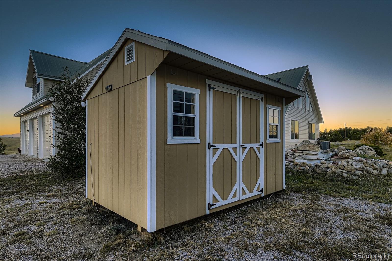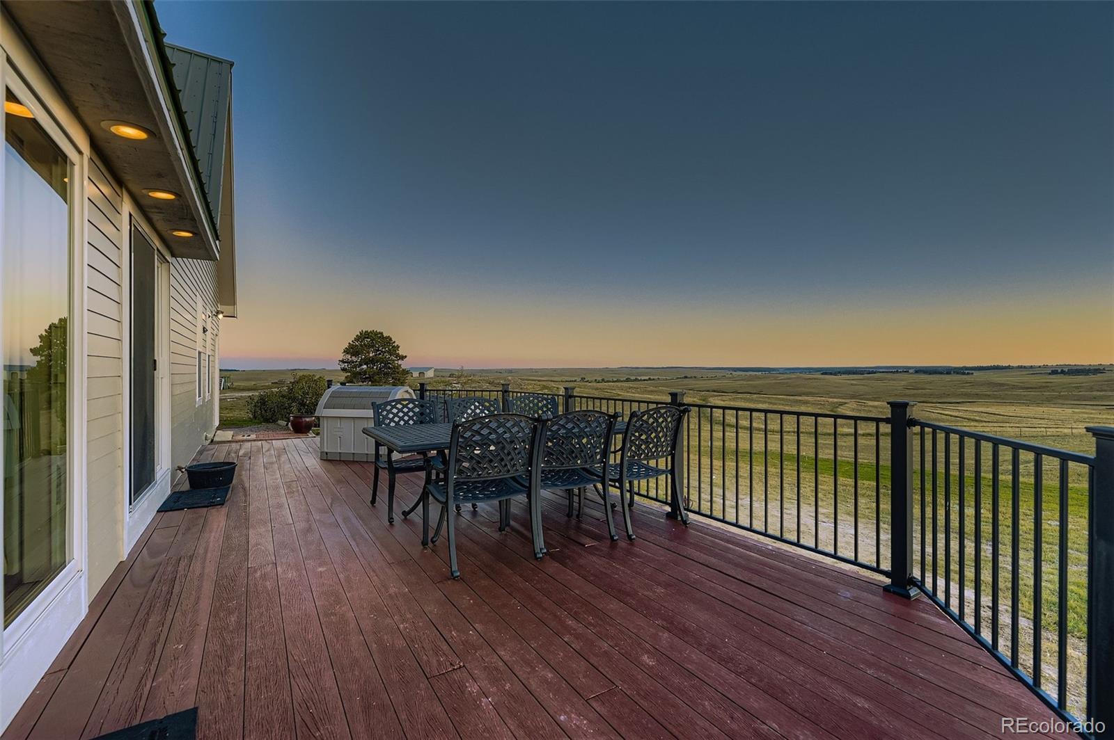 This is the perfect property for privacy and pristine mountain views. This custom home sits on 80 acres surrounded by thousands of acres of rolling ranch land and incredible views of Pike's Peak from inside and outside the home. The passive solar design will save you money on monthly utilities and provides abundant natural lighting and 360 degree panoramic views. The entire second floor is a private suite including a large bedroom, private laundry, a large walk-in closet, spacious bathroom and a reading nook with window seat. The main level has 2 additional bedrooms, laundry room, a beautiful Living Room and a Gourmet kitchen that was recently remodled. Enjoy the granite island, upgraded appliances, walk-in pantry and it opens up to the large, wrap-around deck. The walkout basement has nine-foot ceilings, a 100 amp sub panel & is open and ready for an additional bedroom, bathroom, guest kitchen, home gym and more. Additionally, there's a partially completed in-law apartment over the 3 car garage.