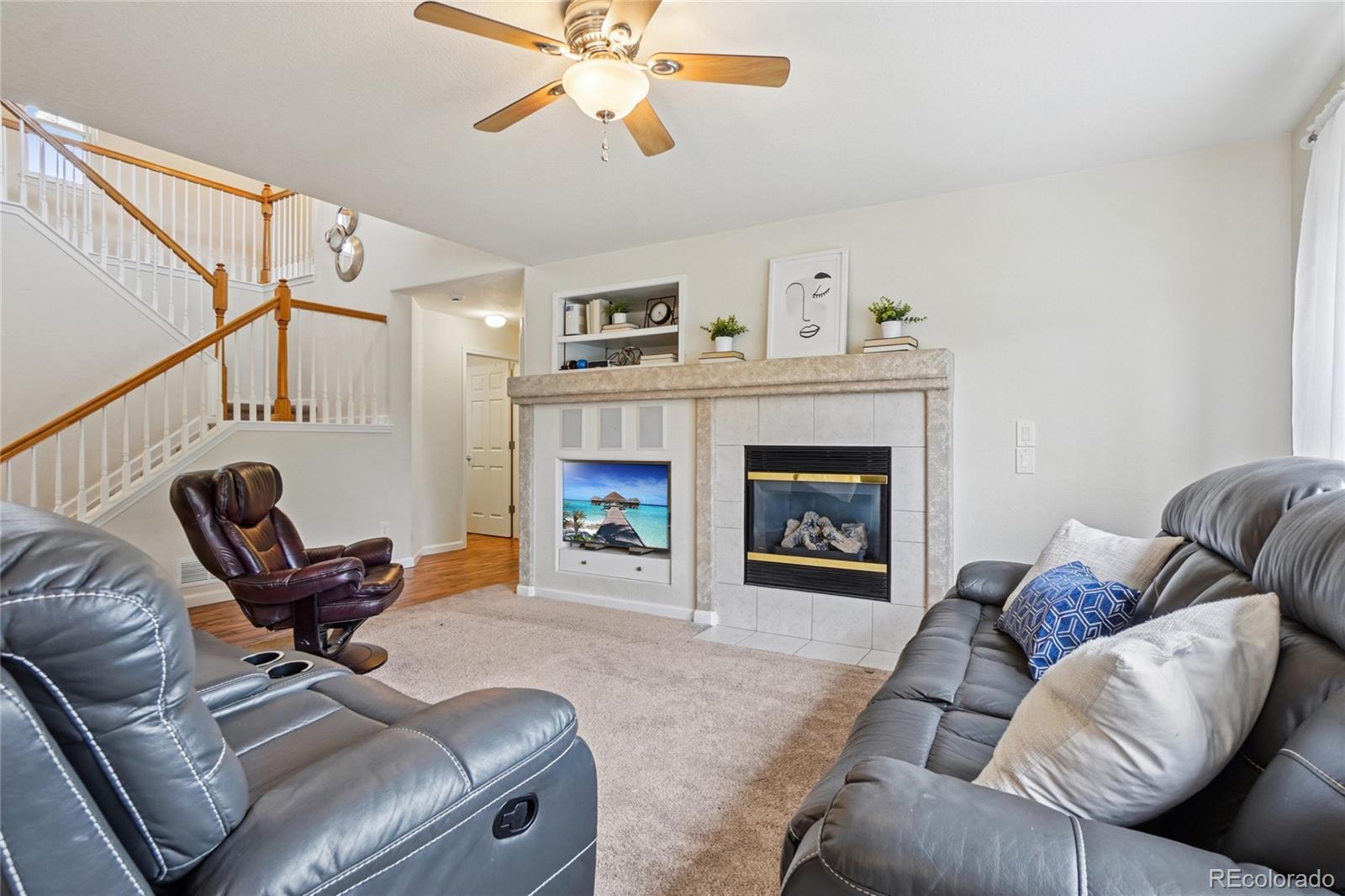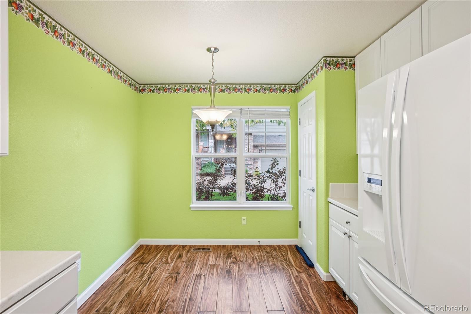 **Motivated Seller** Welcome home to zero-maintenance living in Ridgeview Eagle Bend in this spacious and light-filled 2-story townhome. Beautiful laminate hardwood floors, and abundant natural light greet you upon entry, unfolding to over 1,600 sqft. The space includes an eat-in kitchen with a breakfast nook and an open-concept main living area. The inviting family room features a gas fireplace and a built-in speaker system, the ideal spot for cozy fall evenings or family movie nights. Step outside to the patio overlooking the community green space, the perfect place to sip your morning coffee. Upstairs, the private living quarters comprise a generously sized secondary bedroom, a full bath, and the primary suite, complete with a sizable walk-in closet and an en-suite 4-piece bath. Additional features of this turnkey residence include a main floor bedroom or home office, an unfinished basement for future expansion, in-unit laundry facilities, and an attached two-car garage. Ridgeview Eagle Bend features a community pool and open green space, and is conveniently located just minutes from award-winning Cherry Creek schools, shopping, dining, parks, and major roadways. Do not hesitate to experience zero-maintenance contemporary living. Book your showing today!
