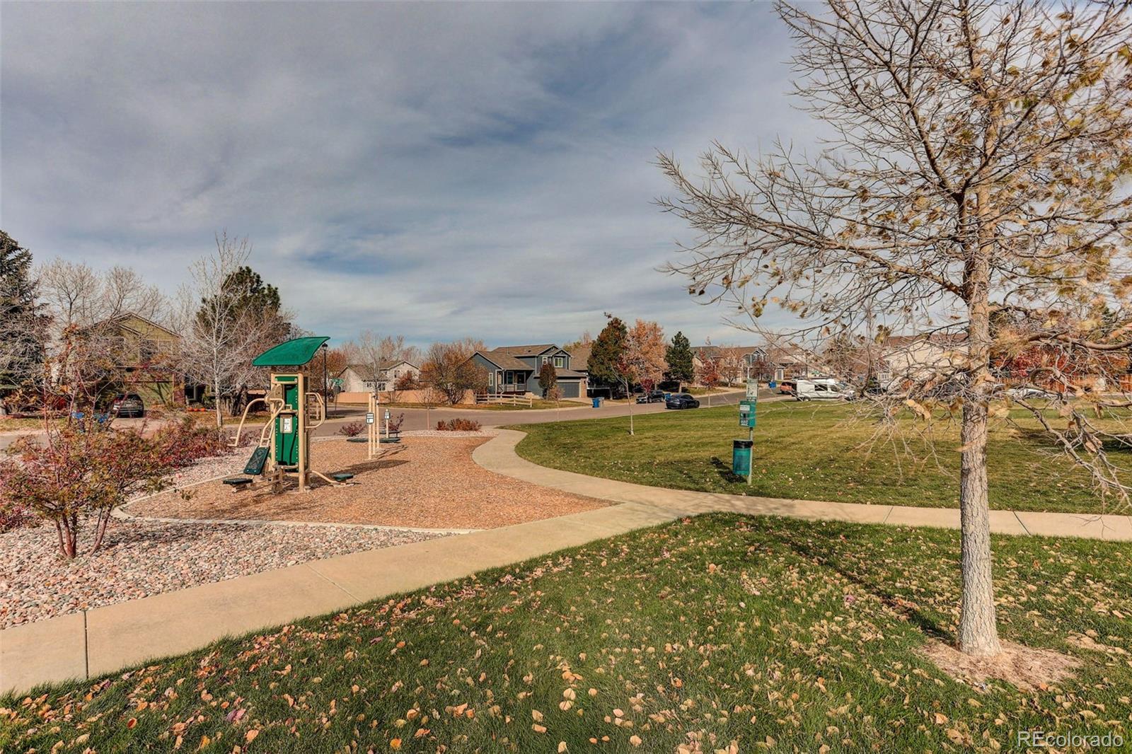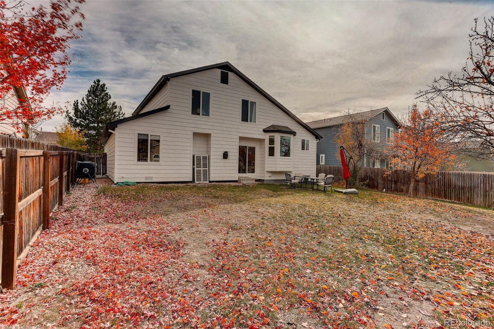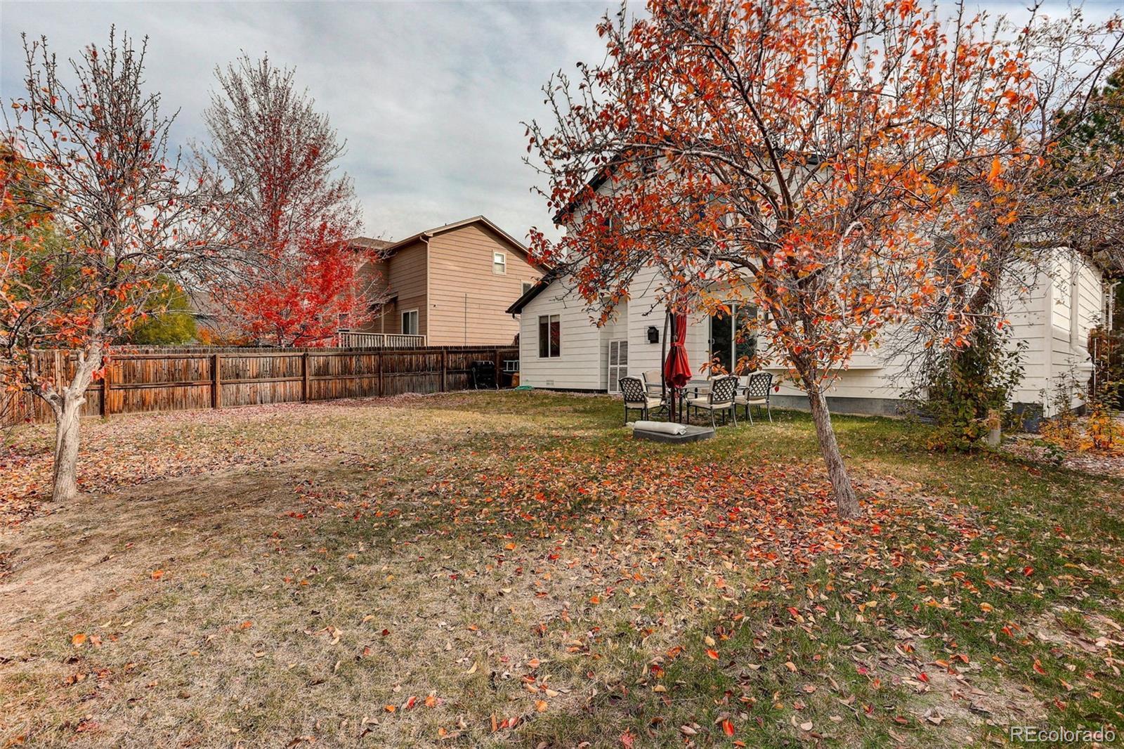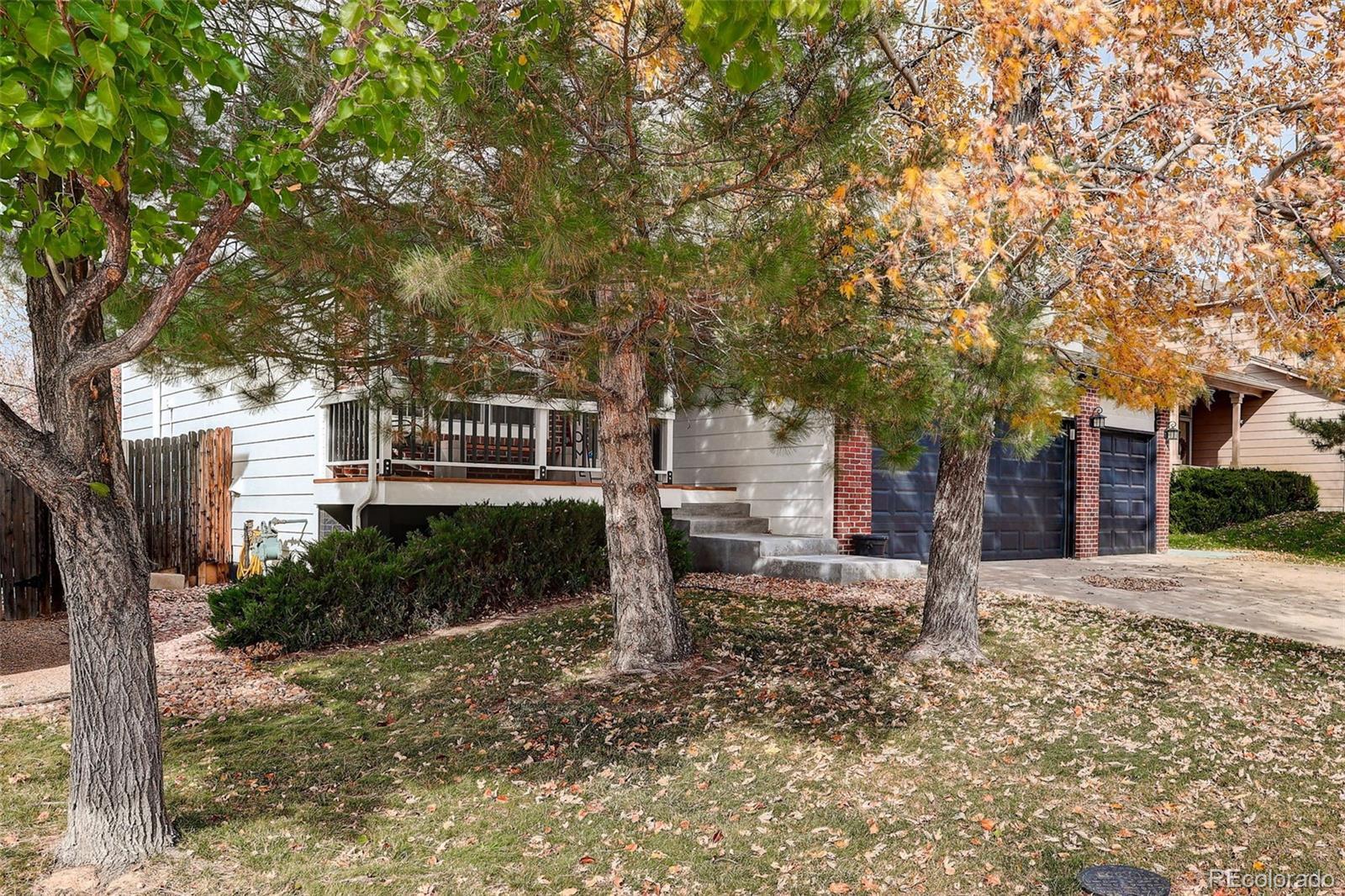 VA ASSUMPTION AVAILABLE (VETERANS ONLY!) Rare opportunity to own a beautifully updated home in the heart of Saddle Rock with a hard-to-find three-car garage at this price point! Perfectly positioned across from a park and playground—and just steps from the neighborhood elementary school—this home combines everyday convenience with modern comfort and thoughtful upgrades throughout. The exterior shines with fresh paint and great curb appeal, while the interior welcomes you with stylish luxury vinyl floors, a bright dining area, and an upgraded kitchen featuring quartz countertops, white cabinetry, stainless steel appliances, a live-edge built-in table, and a movable island that stays with the home. The cozy living room offers plush carpet, a gas fireplace framed by custom stonework and backsplash accents, built-in shelving, and a show-stopping live-edge wood feature wall with a built-in desk. The main-level bedroom with a walk-in closet and oversized window--perfect for guests or a home office-- is located next to a remodeled three-quarter bath featuring elegant tile and built-in shelving. Upstairs, retreat to your spacious primary suite with dual sinks, a soaking tub, separate shower, and generous walk-in closet. Two additional bedrooms with ceiling fans and mounted TVs (included!) and share a stylish dual-sink bathroom with tile-surround shower. Don't forget to check out the large backyard. Enjoy enjoy your rare 3-car garage with extra storage space. The unfinished basement has a radon mitigation system and is just waiting for your finishes or keep the current built-ins for your home projects. Roof was replaced in 2019 for added peace of mind. Ideally located minutes from E-470, Southlands Mall, and local favorites like The Rock restaurant, this move-in-ready gem offers the perfect blend of location, lifestyle, and value—WELCOME HOME!