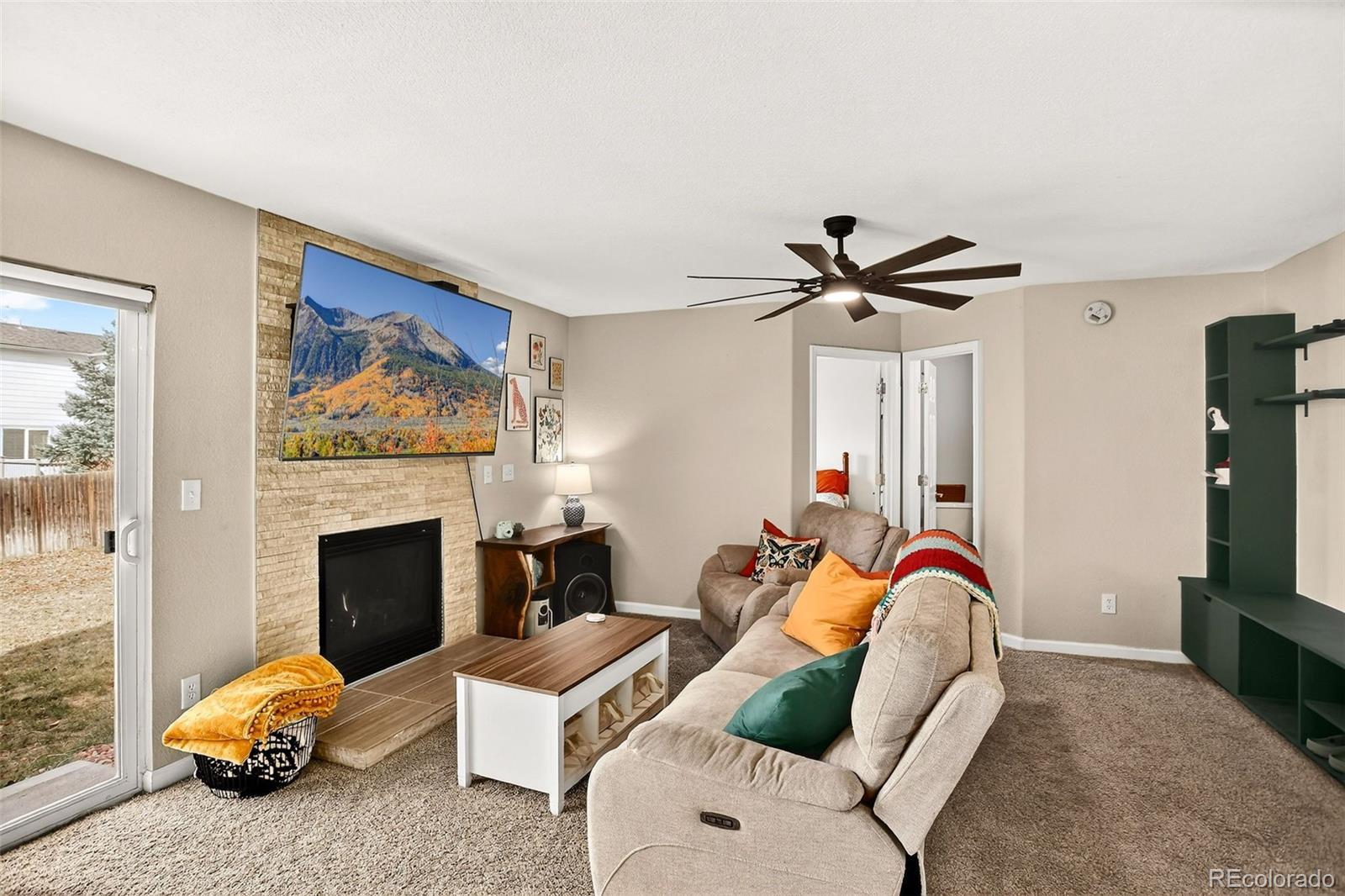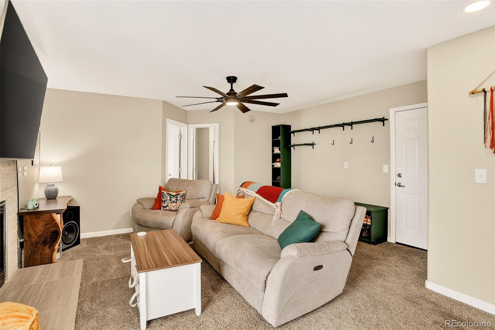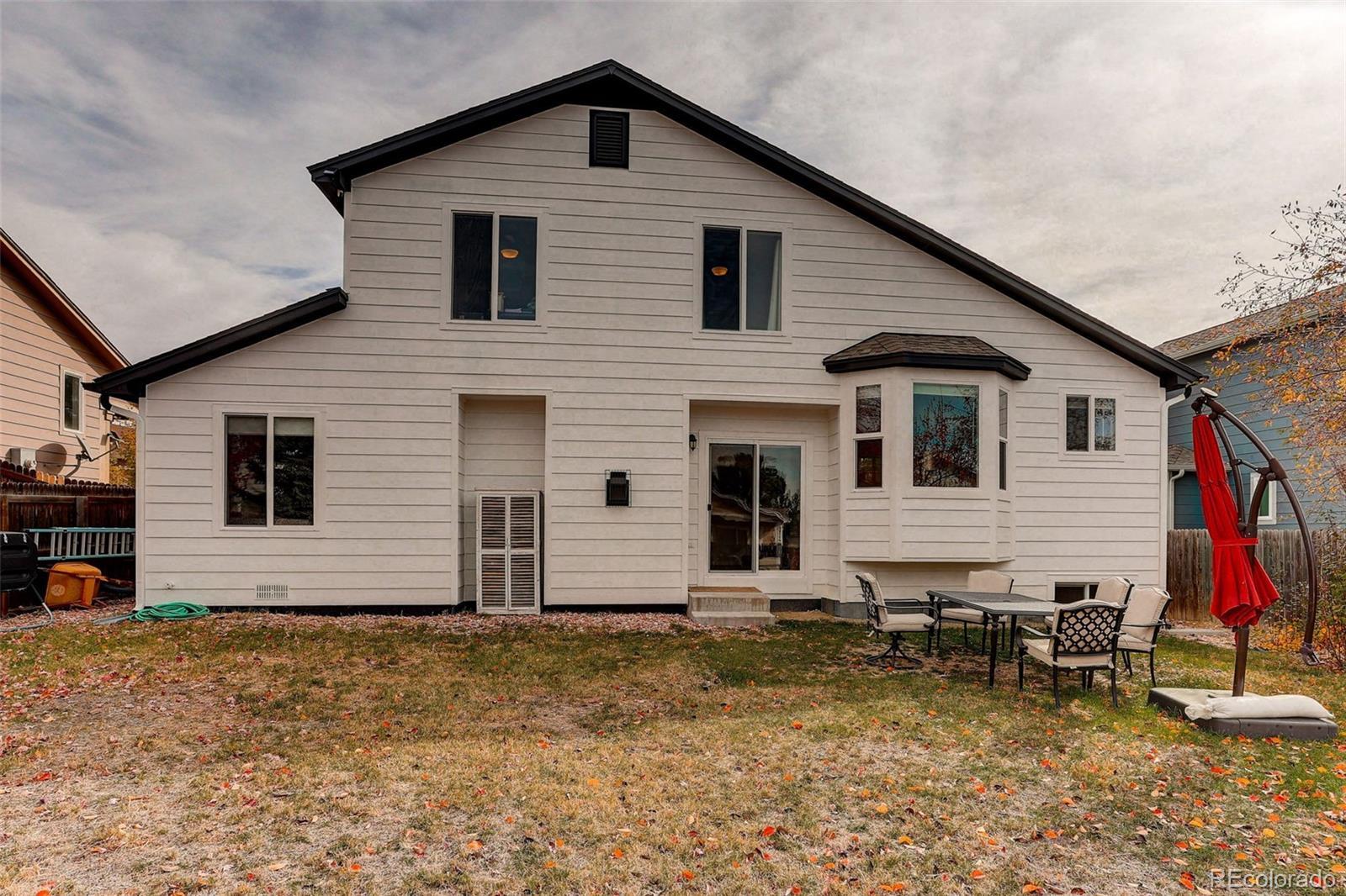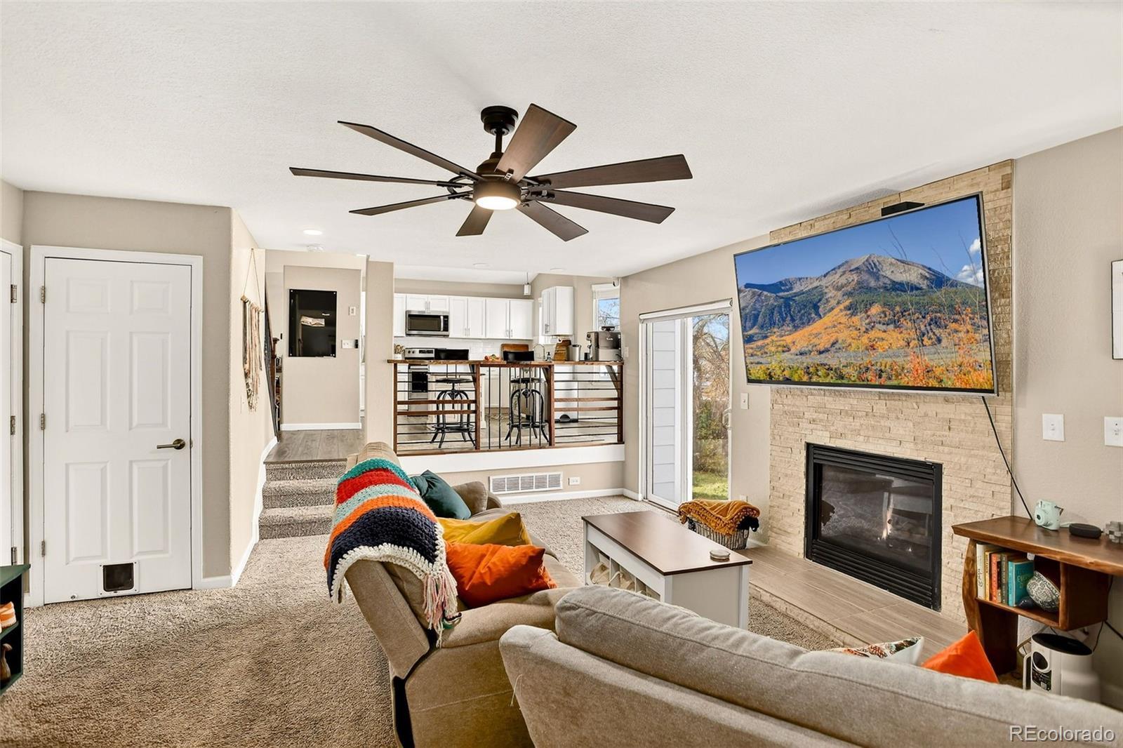 VA ASSUMPTION AVAILABLE (VETERANS ONLY!) Rare opportunity to own a beautifully updated home in the heart of Saddle Rock with a hard-to-find three-car garage at this price point! Perfectly positioned across from a park and playground—and just steps from the neighborhood elementary school—this home combines everyday convenience with modern comfort and thoughtful upgrades throughout. The exterior shines with fresh paint and great curb appeal, while the interior welcomes you with stylish luxury vinyl floors, a bright dining area, and an upgraded kitchen featuring quartz countertops, white cabinetry, stainless steel appliances, a live-edge built-in table, and a movable island that stays with the home. The cozy living room offers plush carpet, a gas fireplace framed by custom stonework and backsplash accents, built-in shelving, and a show-stopping live-edge wood feature wall with a built-in desk. The main-level bedroom with a walk-in closet and oversized window--perfect for guests or a home office-- is located next to a remodeled three-quarter bath featuring elegant tile and built-in shelving. Upstairs, retreat to your spacious primary suite with dual sinks, a soaking tub, separate shower, and generous walk-in closet. Two additional bedrooms with ceiling fans and mounted TVs (included!) and share a stylish dual-sink bathroom with tile-surround shower. Don't forget to check out the large backyard. Enjoy enjoy your rare 3-car garage with extra storage space. The unfinished basement has a radon mitigation system and is just waiting for your finishes or keep the current built-ins for your home projects. Roof was replaced in 2019 for added peace of mind. Ideally located minutes from E-470, Southlands Mall, and local favorites like The Rock restaurant, this move-in-ready gem offers the perfect blend of location, lifestyle, and value—WELCOME HOME!