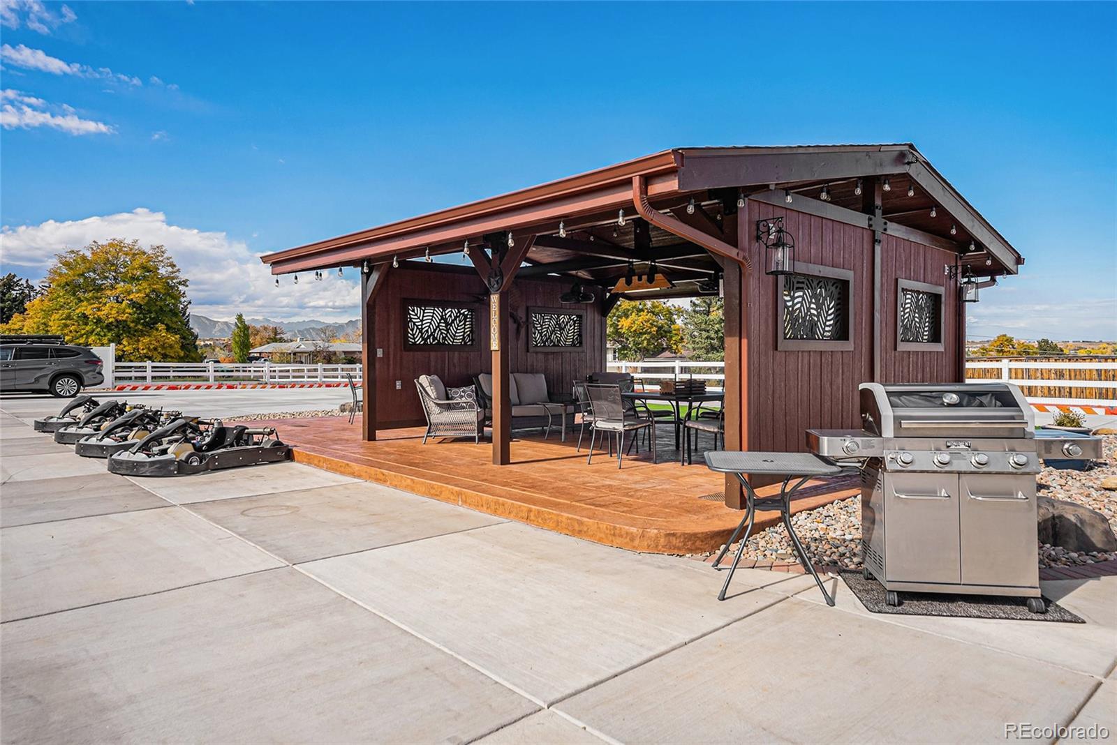 Experience the rare combination of luxury, land, and lifestyle at 7820 W. 96th Avenue — a meticulously maintained ranch-style estate on just over an acre in unincorporated Jefferson County. Enjoy country-style living with no HOA, space for horses or chickens, and the freedom to run a business or host a car collection — all minutes from city conveniences. Car lovers will be in heaven in the 72’x58’ insulated shop, featuring six garage doors, 15-ft ceilings, 200-amp service, office, bathroom, heated epoxy floors, and full bar area — built to code with spray foam insulation, crane, and storage for up to 10 cars plus a 40-ft RV. The open-concept main level features spanning islands, original hardwood floors, abundant natural light, and brand-new kitchen appliances (2025). The primary suite is a true retreat with vaulted ceilings, a massive custom walk-in closet with island, private deck, and in-suite laundry. The walk-out basement offers a full second living space with separate entrance, kitchen, laundry, and 3 bedrooms/2 baths — perfect for guests, multi-generational living, or a rental opportunity. Outdoors, you’ll find three covered patios, a custom go-kart track surrounding a central pavilion for grilling & watching the game, a 3-hole putting green, and beautiful xeriscaped landscaping with astroturf and a zoned sprinkler system. $300K in concrete work, luxury motorized electric iron gates, the list goes on and on. Please allow a full hour for your showing in order to take in all of the buildings and property. See virtual tour for additional pictures.