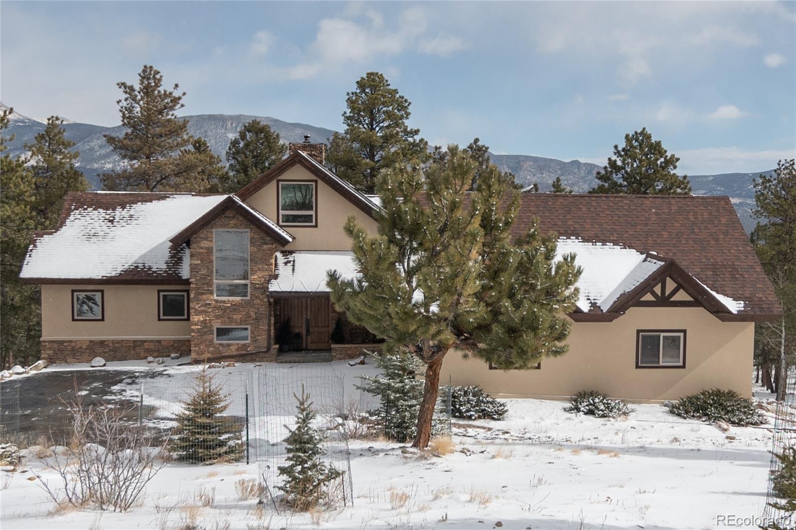 A True Colorado Mountain Home! Built by LaPaloma Builders with full ICF construction, this home offers exceptional energy efficiency and year round comfort. Cozy up on winter evenings to the aroma and warmth of the wood-burning fireplace, featuring an impressive 20 feet of stone rising to the vaulted ceiling, accented by beautiful wood beams. The kitchen is designed for both everyday living and entertaining, with double ovens, abundant cabinetry, and generous counter space. The open concept main living area seamlessly connects the kitchen, dining, and living spaces, perfect for gathering with family and friends. Step outside and enjoy summer dining with ample space for a table, seating, and lingering evenings under the mountain sky. Start your mornings with a soak in the hot tub as the sun rises over the valley, coffee in hand, this is Colorado mountain living at its finest. The spacious primary suite includes an ensuite bath and a built-in closet/dresser combination. Upstairs, the loft offers flexible space ideal for a reading nook, home office, or kids’ media room. The lower level features a second family room with a large wet bar, two additional bedrooms, a full bath, and a mechanical room with excellent storage. Additional highlights include solar panels, a brand-new septic system installed in 2025, a heated attached garage, and a fully asphalted driveway. Enjoy privacy, sweeping valley views, high-speed Visionary internet, and a well managed community with maintained roads, enforced covenants, and quick access to the National Forest. Located just minutes from downtown Buena Vista, this is a truly desirable place to call home. Schedule your private showing today.