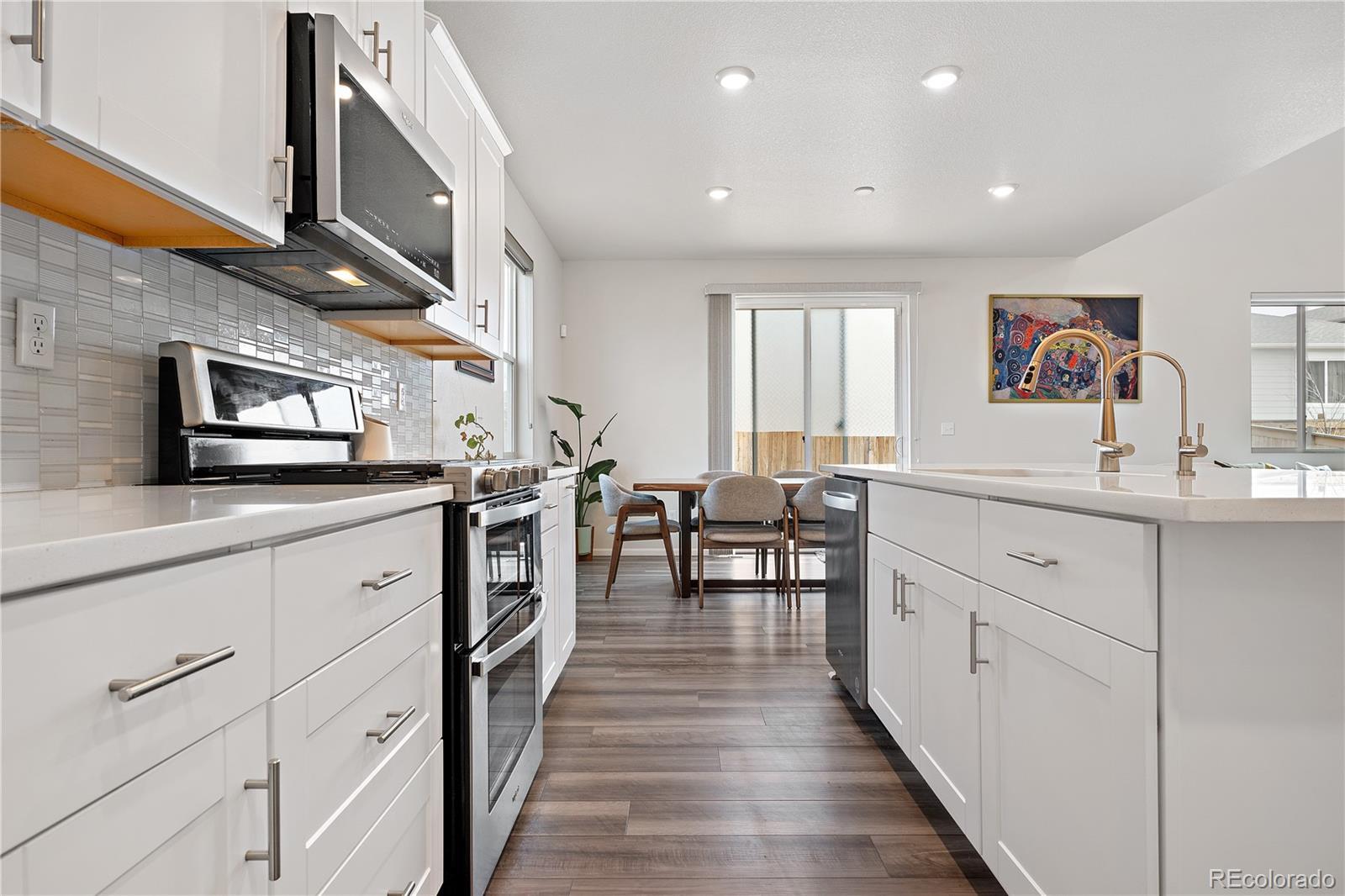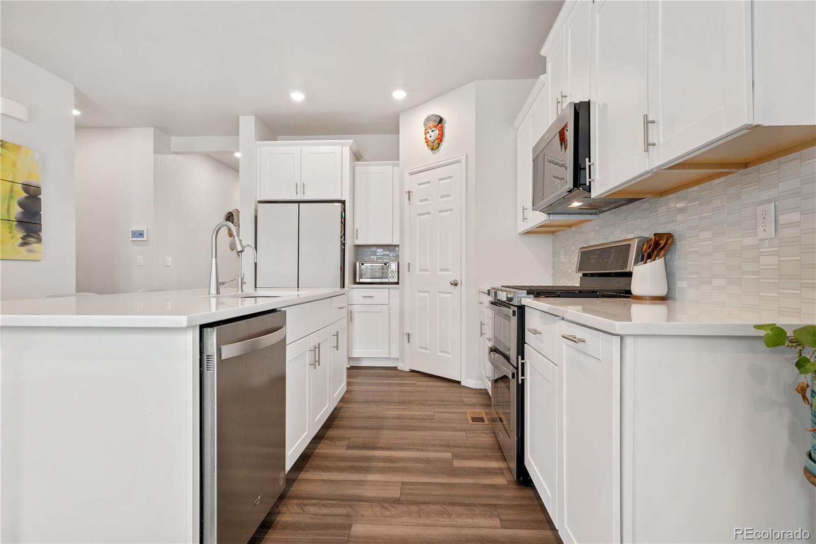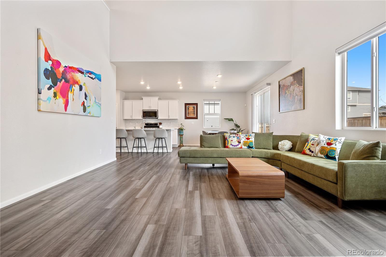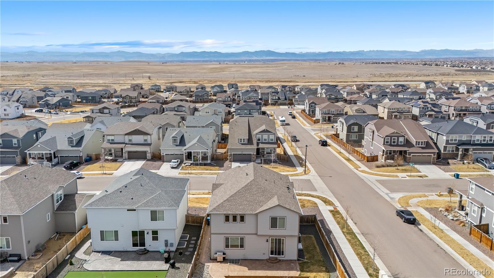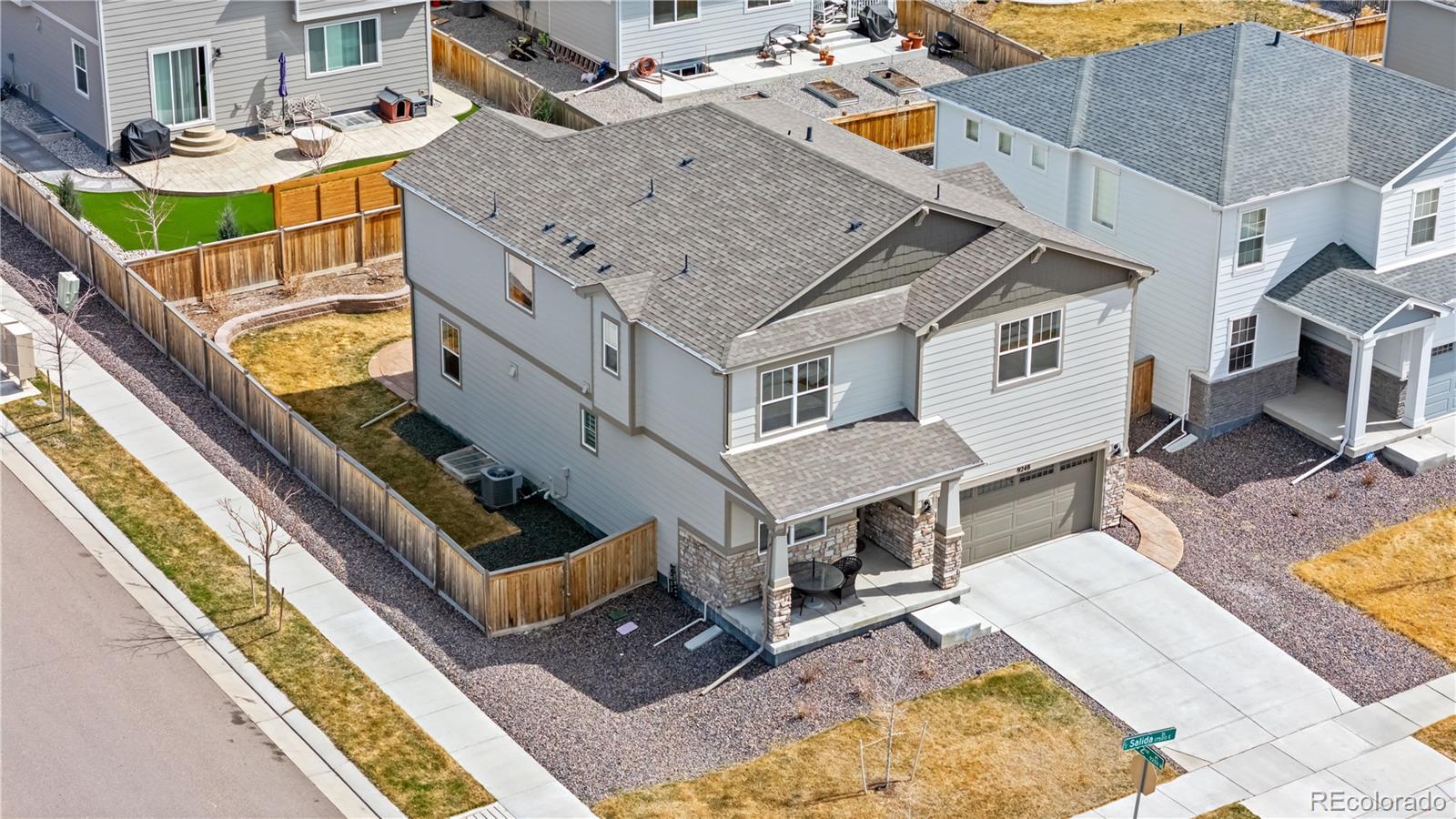 Gorgeous home & one of the most popular floor plans in Buffalo Highlands neighborhood. This 3bed/2.5bathroom home with an office space on the main floor and a loft area on the second floor comes with premium features no longer offered by the Builder. This home features EXTRAS that would typically costs you more out of pocket, including front & rear beautiful landscaping, full fencing, beautiful patio to host summer BBQs gathering, all appliances and window coverings. Just move in and enjoy! The vaulted high ceiling brings in tons of natural light in the living room. Idyllic open floorplan with separate living spaces, dining room and perfectly sized kitchen with quartz countertops, pantry and island. The peaceful primary bedroom, with spacious walk-in closet and ensuite bath, and two additional bedrooms and a full bath are tucked to the side along with a spacious loft. The house has a Full basement, 9ft high and unfinished that is ready for you to convert into the kind of space you desire. Easy access to E-470, I-70, short drive to DIA, you'll love the convenience and beauty of this location. Don't miss out on the chance to make this your home!