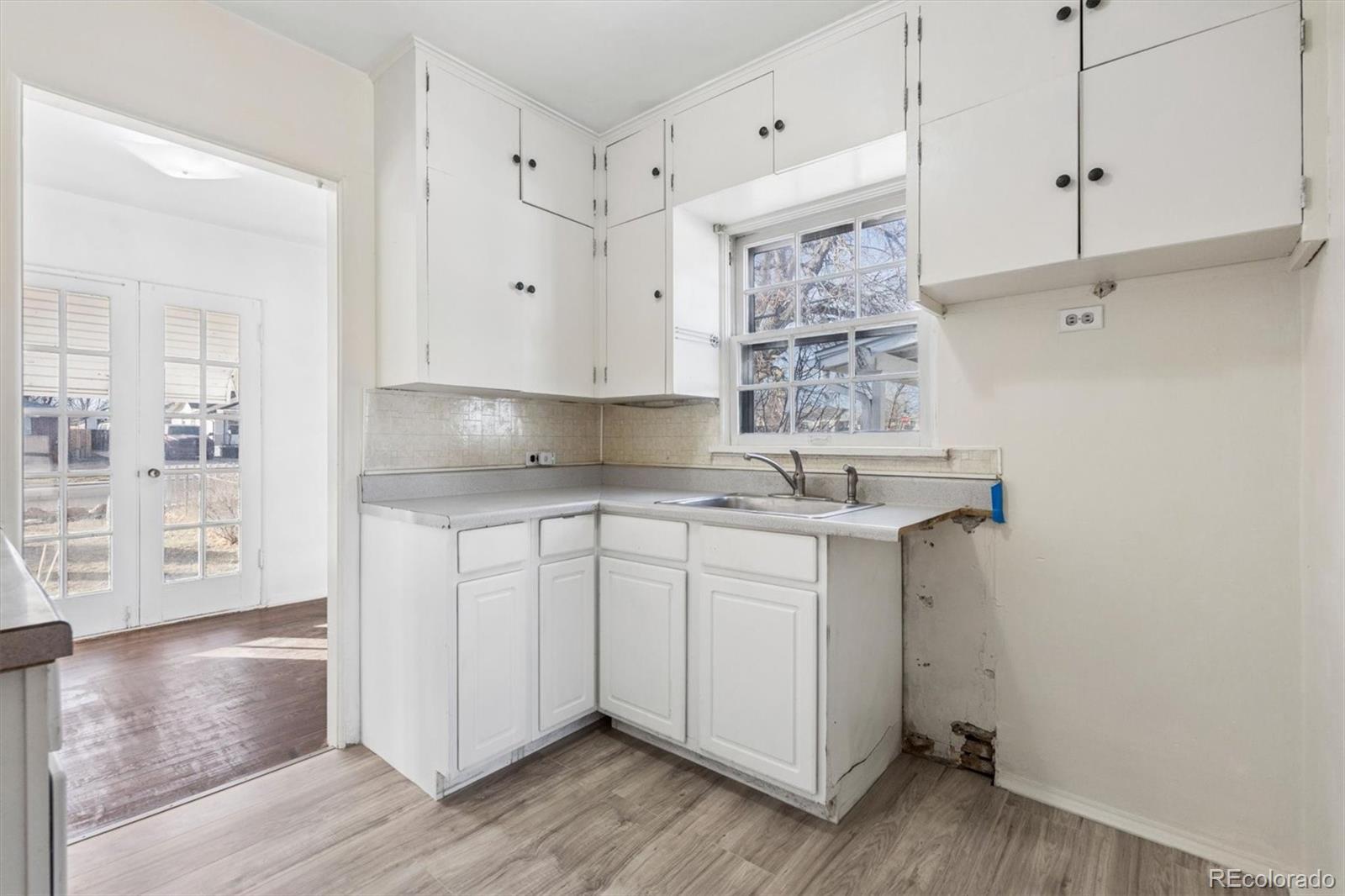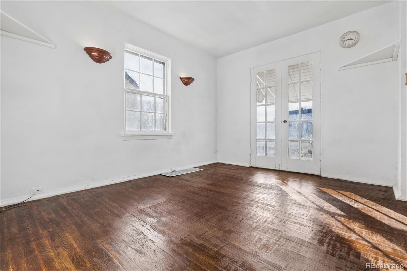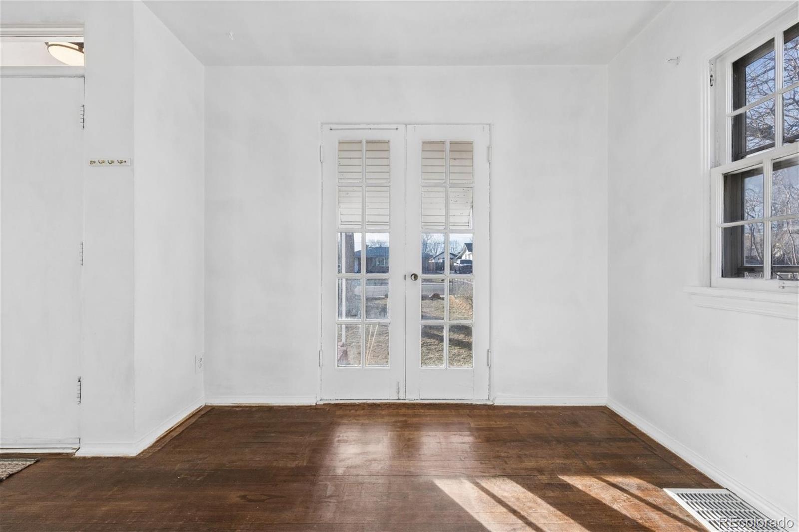 Great home to build equity in. Charming bungalow style home with French doors opening to the front yard. Spacious living and dining area with wood floors, efficient kitchen, primary bedroom with wood floors adjacent full bath and walk-in closet, all on the main level. The lower level has a family room and two non-conforming bedrooms all with fresh new paint and carpet. There is an oversized 2-car garage plus a storage shed in the back yard. There is so much potential in this home. Convenient to neighborhood shopping and restaurants and a short drive to downtown.