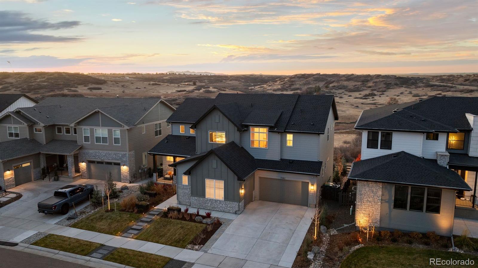 Set within one of the most exclusive areas of The Canyons in Castle Pines, this rare, and breathtaking home blends the upmost level of luxury, with the unmatched functionality of day-to-day living. Built in 2023 by Toll Brothers, this residence has been elevated well beyond builder grade with expansive post-construction upgrades that embody thoughtful designs that have been impeccably executed. From the moment you step through the front door, you will immediately be drawn to the soaring vaulted ceilings, high end design, a stunning floor-to-ceiling Venetian plaster fireplace, and one of the home’s most extraordinary features — a dramatic 15-foot stackable glass door that fully opens to create seamless indoor-outdoor living. Step out onto the covered patio and take in what is truly a rarity in the community: serene, untouched open space directly behind the home, offering privacy, tranquility, and breathtaking natural views that are exceptionally hard to find in The Canyons. Inside, the upgrades continue to impress. A gourmet kitchen made for both entertaining numerous guests or cooking a restaurant level meal from home for your family. Stacked cabinets to the ceiling, double oven's, a 6 burner gas stove ... The kitchen will not disappoint! The main level also features: a gorgeous formal dining room, office, and a main level bedroom with en suite bath. Upstairs, the level of luxury continues with a primary retreat that resembles some of the finest accommodations you will find. The views continue from the primary bedroom, dual closet spaces, and a primary bath complete with heated floors. Round all of this out with a newly finished walkout basement that expands the living space to all three levels, a 3 car garage, and resort style HOA amenities all within walking distance (fitness center, pickleball courts, bar/restaurant, and countless miles of trails). This is not just another home in The Canyons — it is a curated retreat rarely seen in this neighborhood.