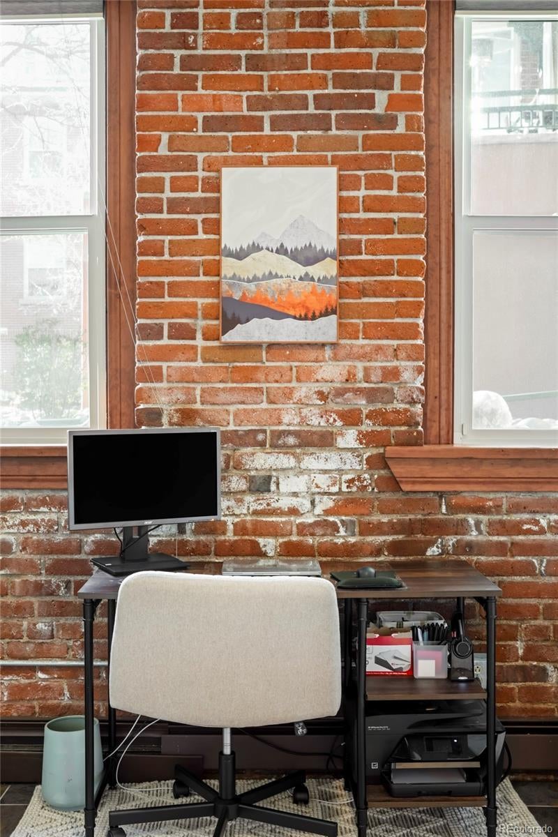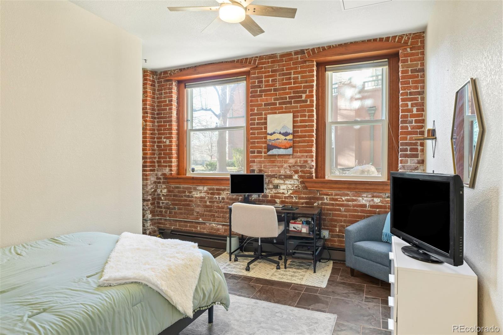 Located in the historic 1919 Tilden School building, this two-story condo is brimming with timeless character and modern upgrades in an unparalleled Highlands location. The open floorplan is characterized by high ceilings and exposed brick walls that flow throughout the home. Fresh paint, newer Anderson windows, and updated lighting amplify the abundance of natural light while heated floors in the lower-level den create comfort throughout. Work-from-home days are made easier with a built-in office area and cozy reading nook. Detailed tilework grounds the private bedroom areas and a shared bathroom with a glass-enclosed walk-in shower. Convenient amenities such as an in-unit washer and dryer plus ample storage space afford ease in modern living. A rarity for the area, residents enjoy access to a large, fenced-in communal yard; and yet, just beyond the fence, a neighborhood tapestry unfurls with easy access to restaurants, coffee shops, parks and boutiques. Historic living and modern convenience await.