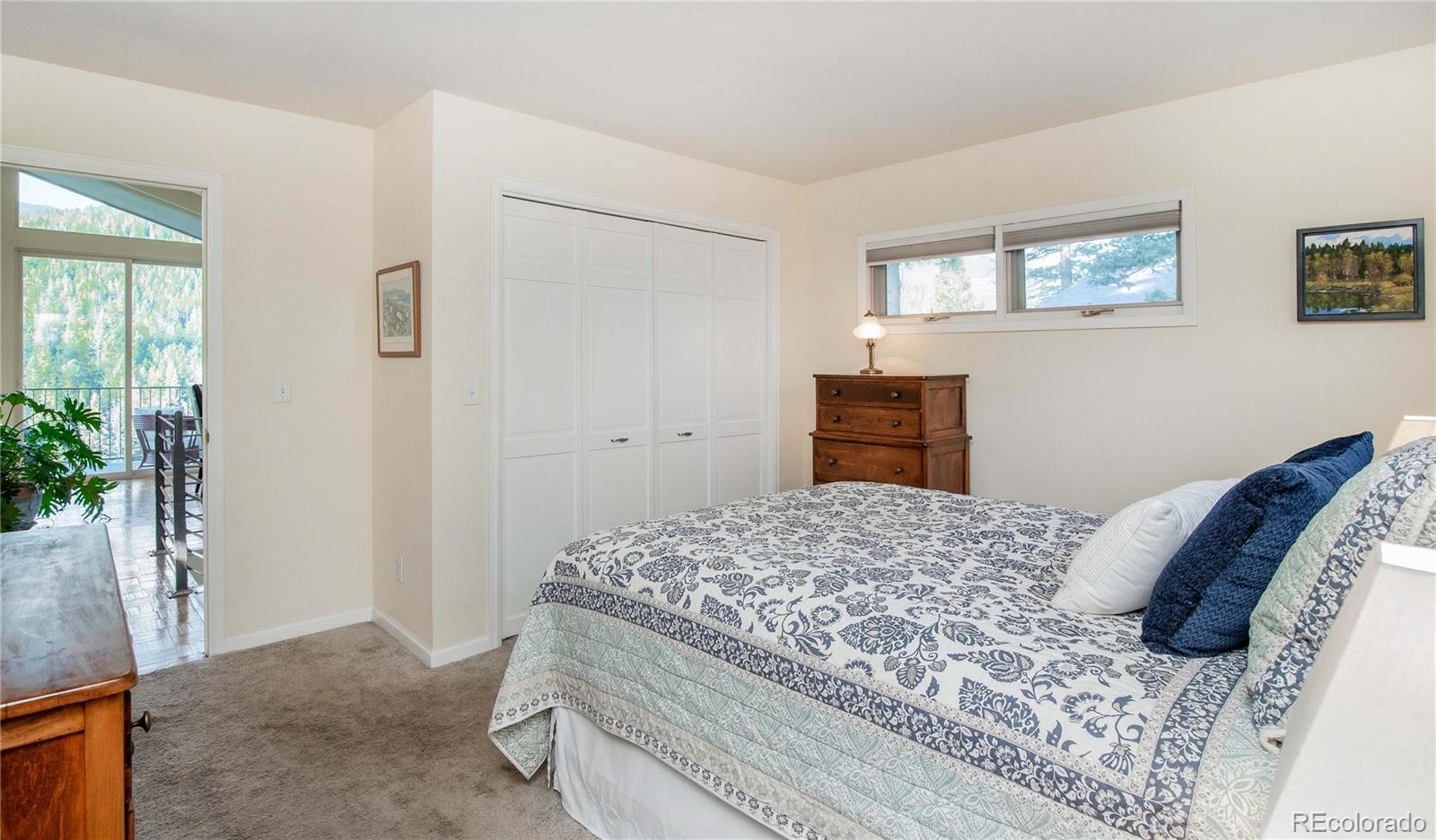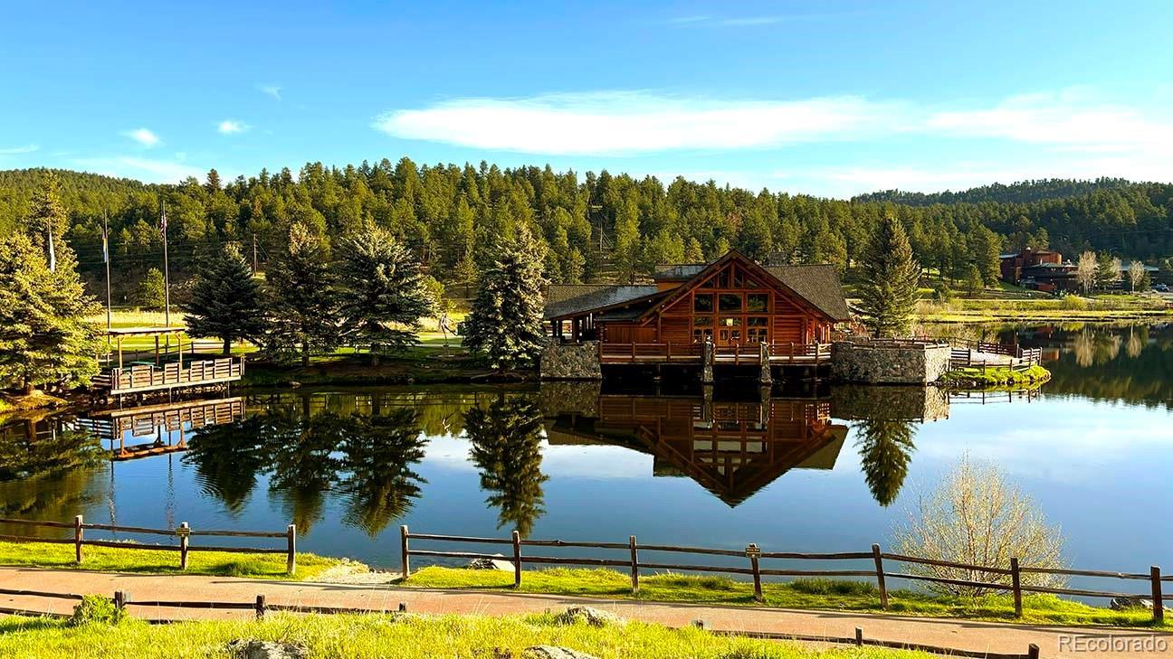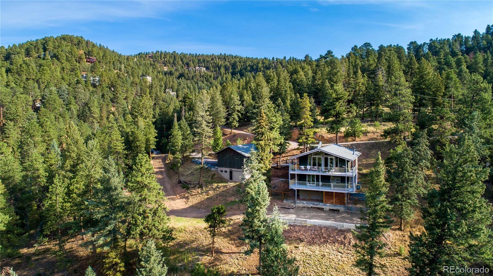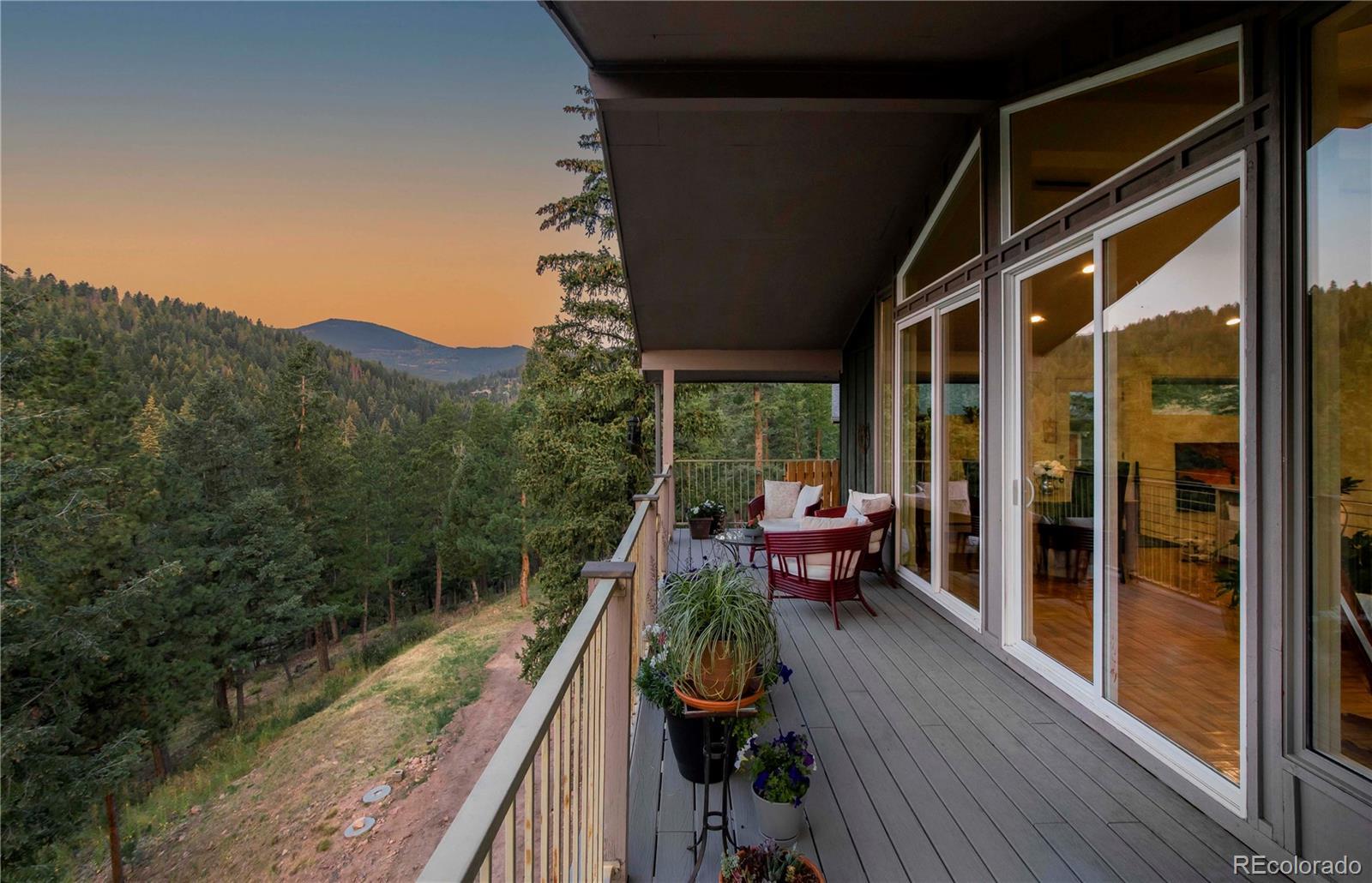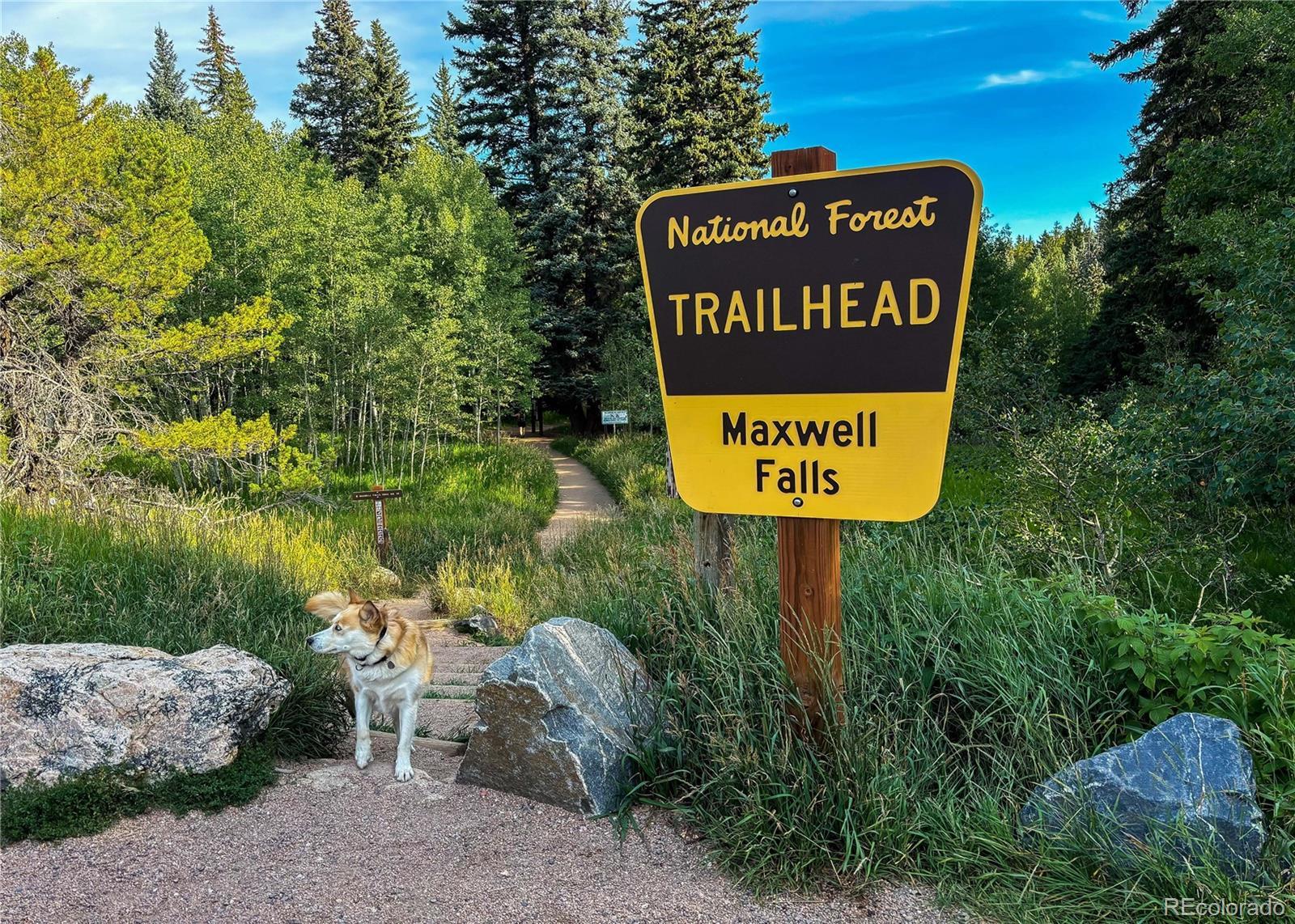 Be captivated by the most impressive views at a price point accessible to anyone, offering you an incredible opportunity to own a piece of mountain paradise in Evergreen, CO! Upon entering the home, you're immediately taken aback by the breathtaking scenery of the national forest visible through the wall of windows in the great room. Slide open the tall doors to step onto a partially wrap-around deck—perfect for soaking in the serene sounds of Cub Creek and the stunning natural surroundings. The open-plan design seamlessly integrates the dining area, living room, and recently remodeled kitchen under soaring vaulted ceilings, complemented by elegant wood parquet floors and a large wood-burning stove. The primary suite is conveniently located on the main floor, while the lower level includes a family room with views, ample light, and a walkout to the lower deck with a convenient doggie door to the fenced dog run. You’ll also find two additional bedrooms (one non-conforming), laundry, and a full bathroom. A detached oversized two-car garage, with extra storage below, is accessible via a charming bridge. The home offers multiple heating options—radiant ceiling heat, a new boiler, passive solar, and a wood-burning stove—making winter living affordable. Located just 5 minutes from both Maxwell Falls Trailheads and National Forest trails, 12 minutes from downtown Evergreen, and 16 minutes from Aspen Park, this home embodies the essence of mountain living! Check out www.LiveInEvergreenCO.com for more pictures, video and information!