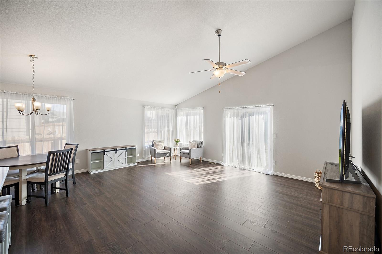 Welcome to this spacious single-family rancher in the desirable Lorson Ranch community. Built in 2019 and meticulously cared for, this home offers over 3,100 square feet of living space with main-level living and a fully finished basement. From the moment you step inside, you’re welcomed by an open-concept layout, vaulted ceilings, and abundant natural light that creates a bright and inviting atmosphere. The kitchen is the true heart of the home, featuring dark cabinets, light countertops, and an oversized island perfect for cooking, entertaining, or gathering. The living areas flow seamlessly, and with five bedrooms and three full bathrooms, there’s plenty of room for everyone. The spacious primary suite provides comfort and privacy, while the basement expands your possibilities with huge recreation rooms, tons of storage, and brand new carpet. Outside, the fenced backyard offers a blank canvas with space to make it your own, while the 3-car garage provides ample parking and storage. Located in Lorson Ranch, this well-kept community offers parks, open spaces, and trails, with quick access to shopping centers, military bases, and major highways. This home is the perfect blend of style, space, and convenience—ready for you to make it your own.
