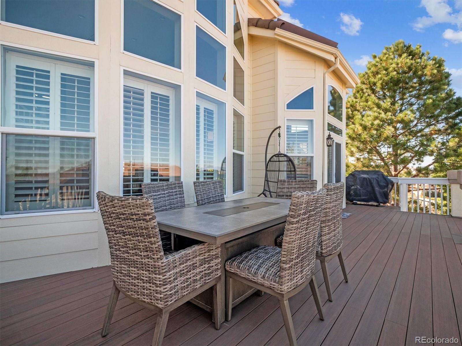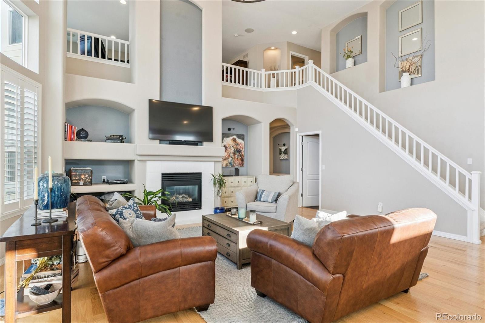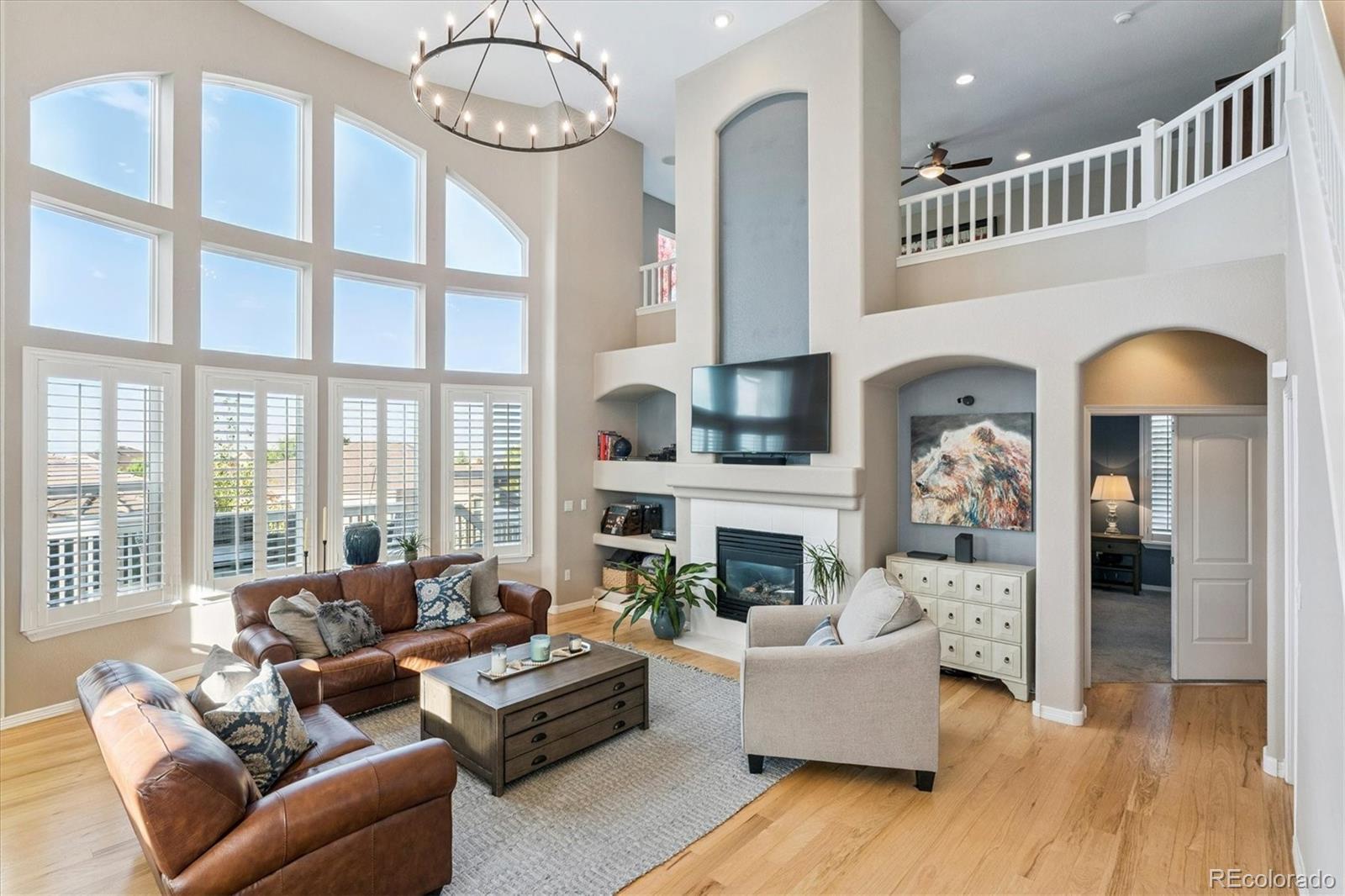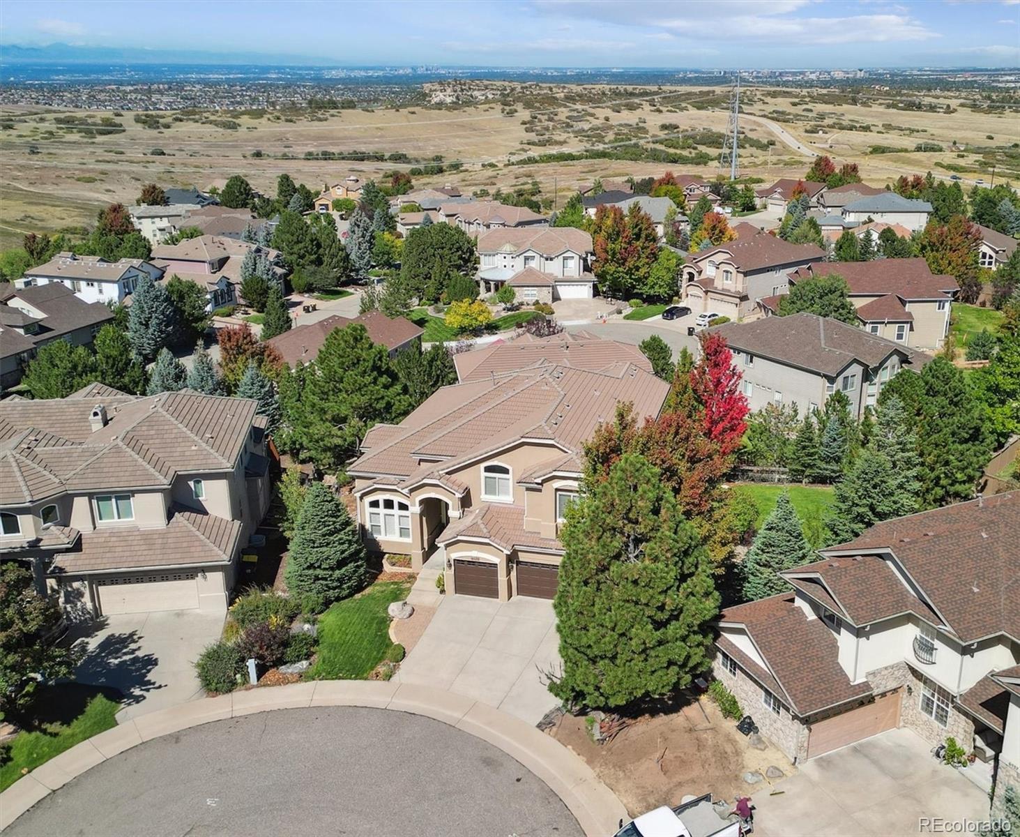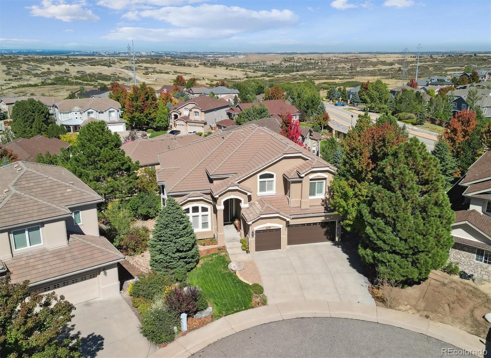 Step into your dream home, perfectly set on a quiet cul-de-sac, where modern comfort meets with panoramic views of the mountains, city skyline, and Tech Center! With 6 bedrooms, 5 baths, and almost 5,500 square feet of beautifully updated living space, this home blends comfort, elegance, and versatility. The main floor welcomes you with vaulted ceilings, wide plank hardwood floors, and an airy open layout. The gourmet kitchen shines with new stainless steel appliances, sleek countertops, a stylish backsplash, ample cabinet space, and an island with bar seating. The adjoining family room features soaring ceilings and a cozy fireplace, flowing effortlessly onto a large deck perfect for summer fireworks and sunset watching. The main-level primary suite is your own sanctuary, with a fully remodeled five-piece bath featuring a two-person soaking tub, walk-in shower, and a spacious closet. Upstairs, you’ll find three more bedrooms, including a Jack-and-Jill setup with double sinks, a beautifully remodeled full bath, and a massive loft with postcard-worthy views. The walk-out basement is a showstopper with its own kitchenette, great room with fireplace, media area, en-suite guest bedroom, a gym-ready sixth bedroom, second laundry room, and plenty of storage. Step outside to a covered patio and a large yard filled with mature trees—ideal for relaxing or entertaining. Other highlights include a 3-car garage with new smart doors, a new furnace and central A/C installed in 2024, resurfaced deck in 2023, 90% new windows and sliders, central vacuum, newer exterior paint, and a full sprinkler system. Just moments from scenic open space, this home has everything you’ve been looking for—and more.