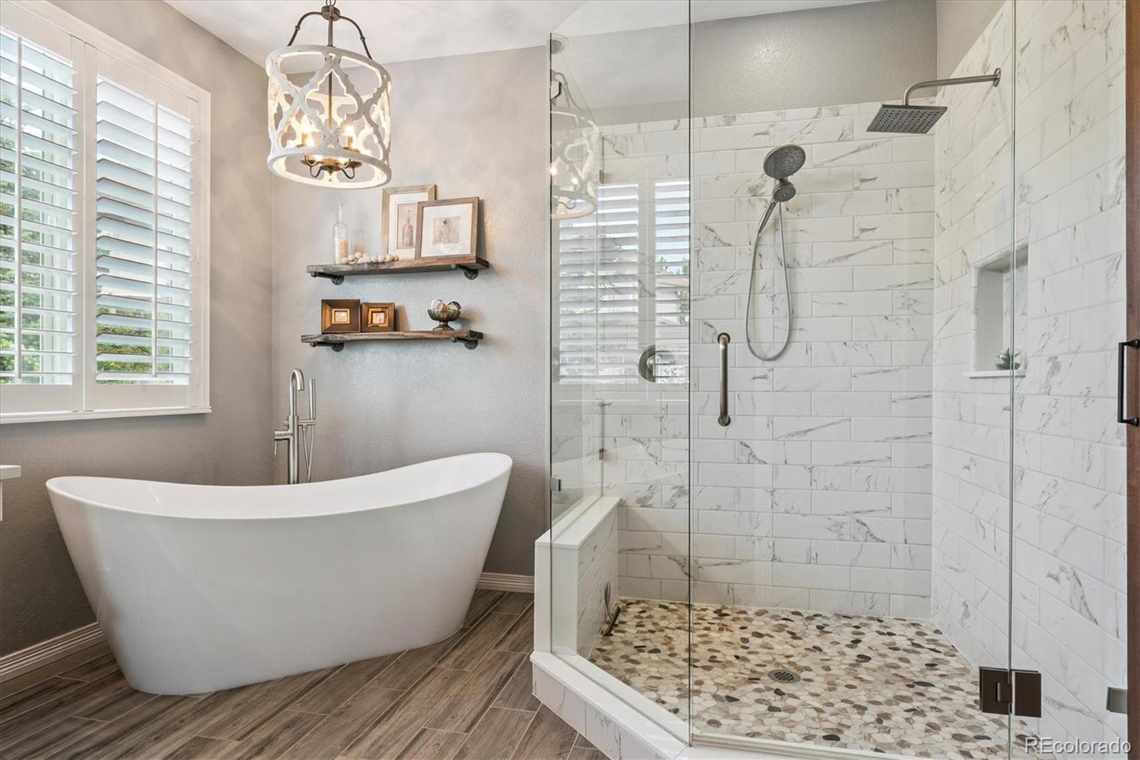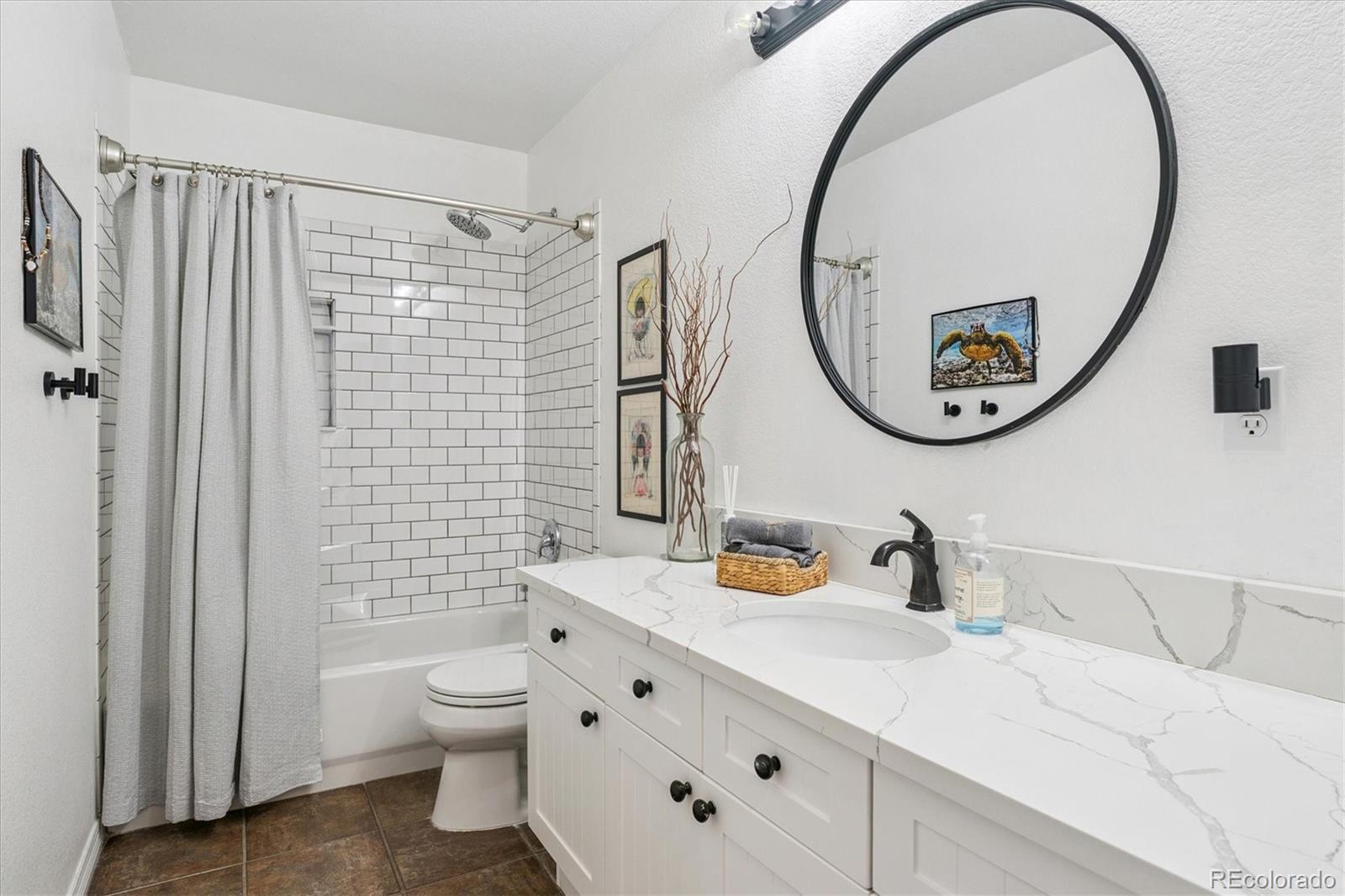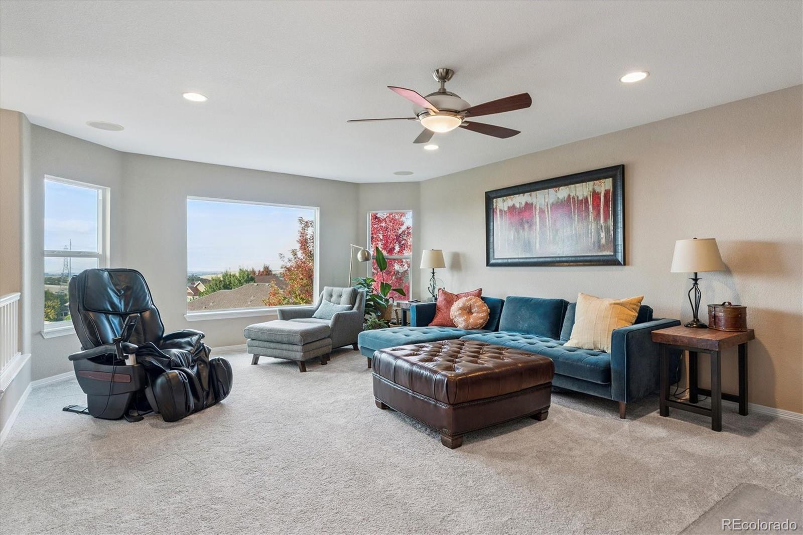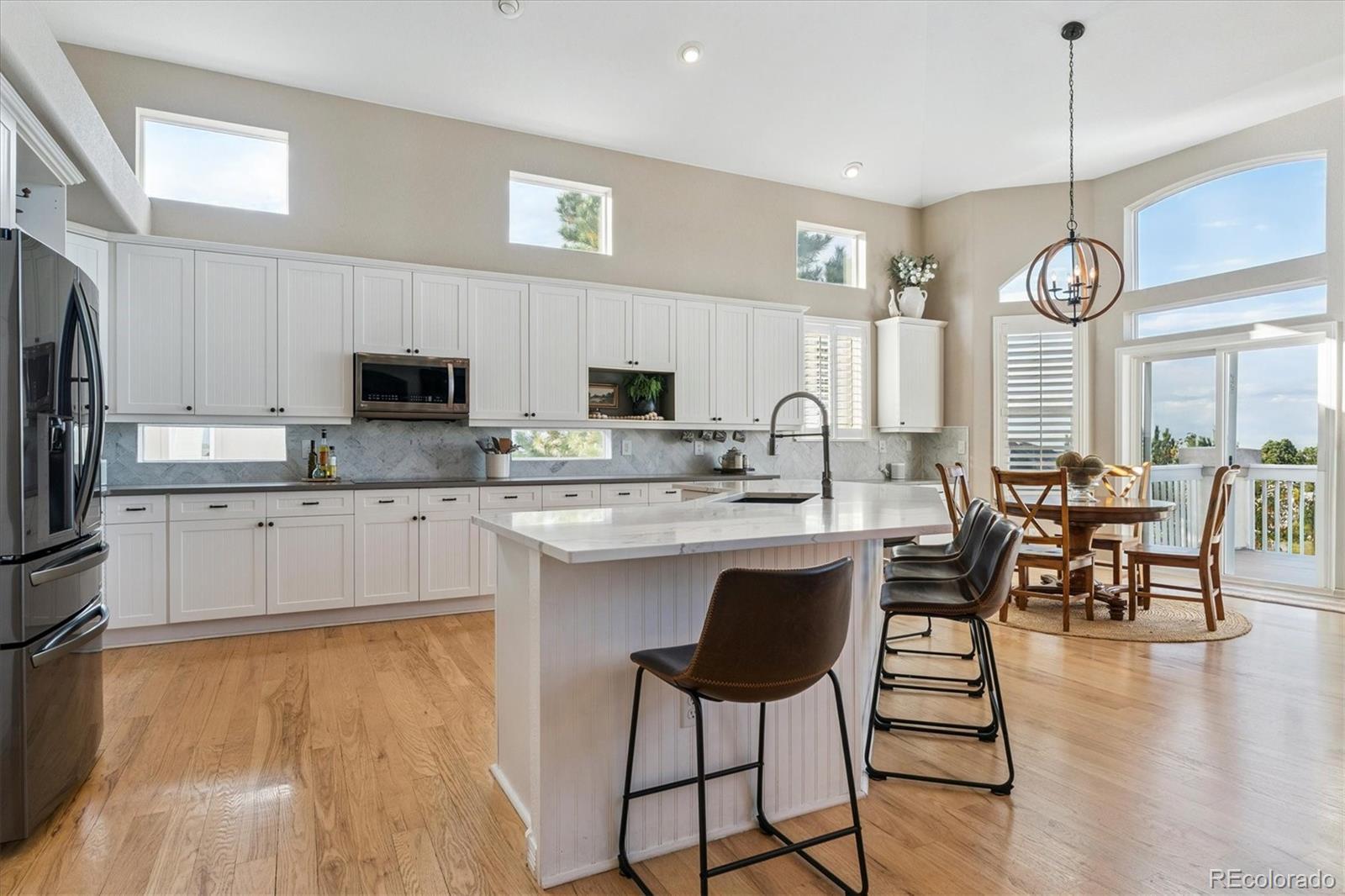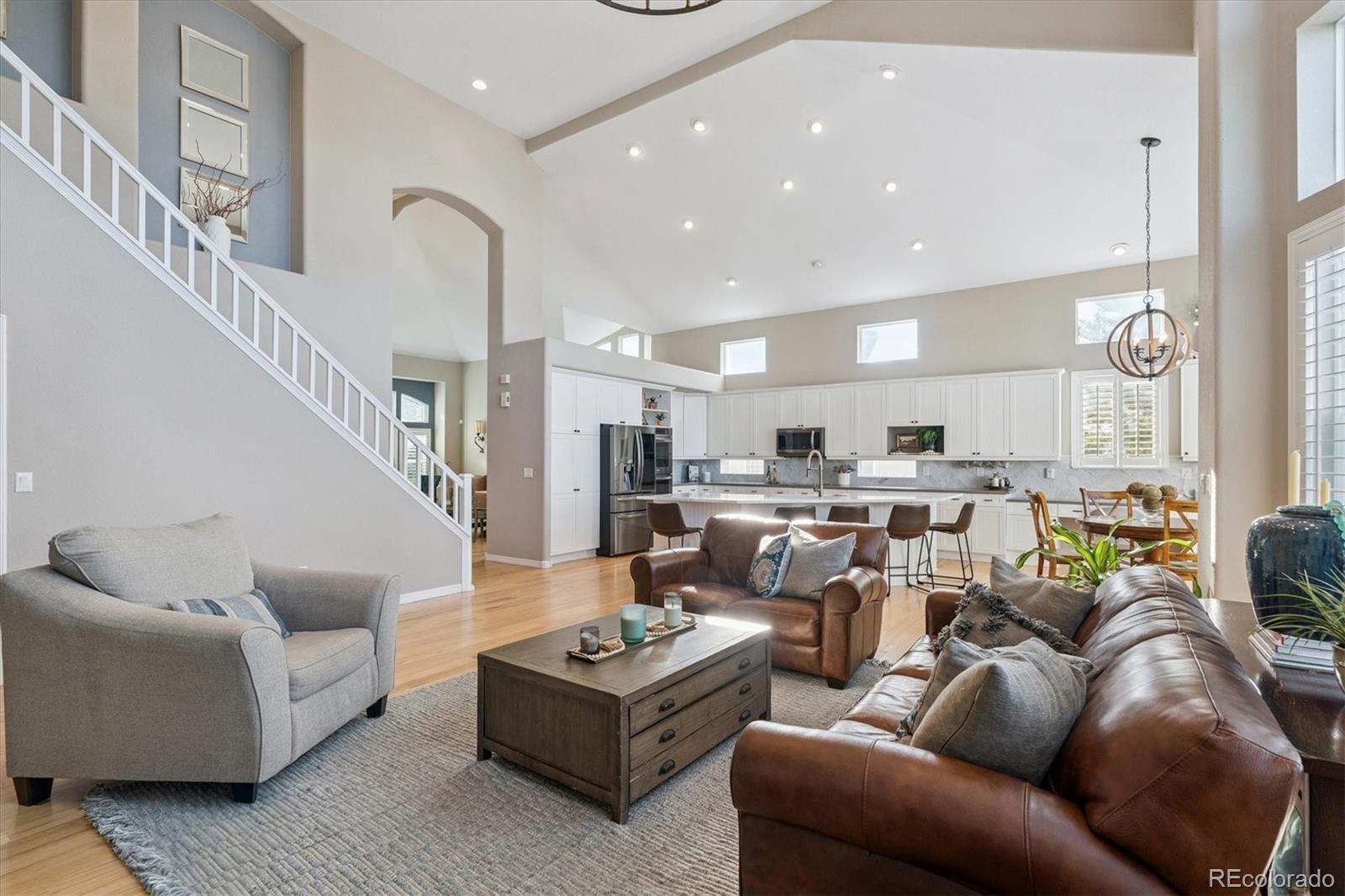 Step into your dream home, perfectly set on a quiet cul-de-sac, where modern comfort meets with panoramic views of the mountains, city skyline, and Tech Center! With 6 bedrooms, 5 baths, and almost 5,500 square feet of beautifully updated living space, this home blends comfort, elegance, and versatility. The main floor welcomes you with vaulted ceilings, wide plank hardwood floors, and an airy open layout. The gourmet kitchen shines with new stainless steel appliances, sleek countertops, a stylish backsplash, ample cabinet space, and an island with bar seating. The adjoining family room features soaring ceilings and a cozy fireplace, flowing effortlessly onto a large deck perfect for summer fireworks and sunset watching. The main-level primary suite is your own sanctuary, with a fully remodeled five-piece bath featuring a two-person soaking tub, walk-in shower, and a spacious closet. Upstairs, you’ll find three more bedrooms, including a Jack-and-Jill setup with double sinks, a beautifully remodeled full bath, and a massive loft with postcard-worthy views. The walk-out basement is a showstopper with its own kitchenette, great room with fireplace, media area, en-suite guest bedroom, a gym-ready sixth bedroom, second laundry room, and plenty of storage. Step outside to a covered patio and a large yard filled with mature trees—ideal for relaxing or entertaining. Other highlights include a 3-car garage with new smart doors, a new furnace and central A/C installed in 2024, resurfaced deck in 2023, 90% new windows and sliders, central vacuum, newer exterior paint, and a full sprinkler system. Just moments from scenic open space, this home has everything you’ve been looking for—and more.