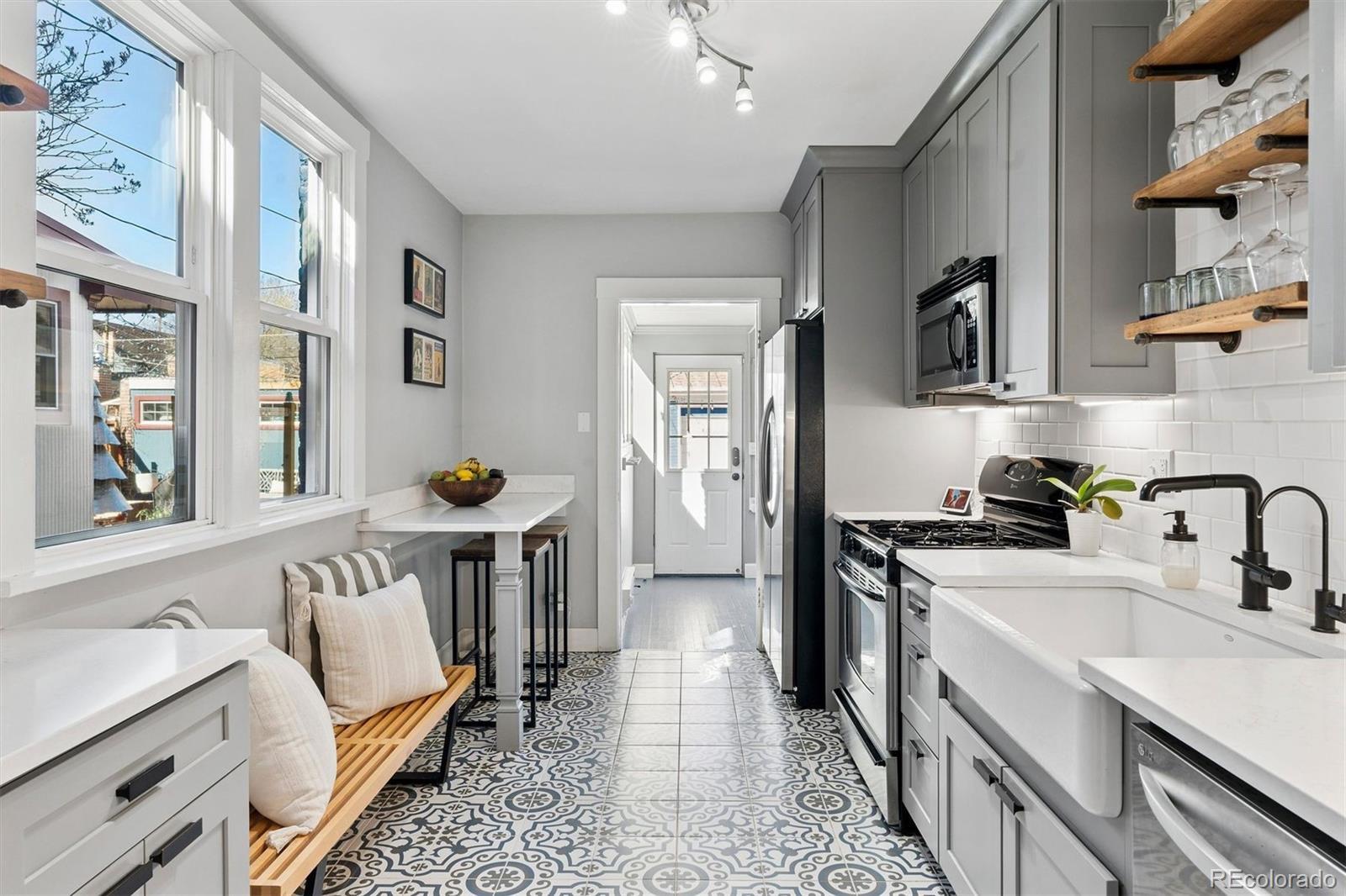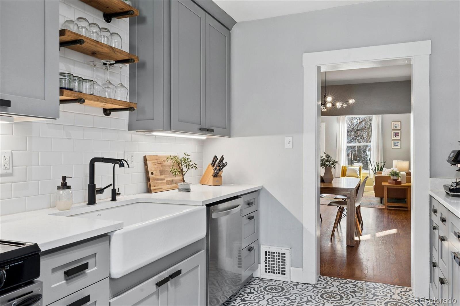 This charming single-family gem in Denver's highly desirable Sloan's Lake neighborhood effortlessly blends historic character with casually elegant modern updates, creating a warm, inviting space that's perfect for relaxed everyday living and effortless entertaining. Step inside to discover an open, light-filled main level where a high-ceiling living room flows seamlessly into a stunning dining area. The spacious dining room easily hosts large gatherings yet is comfortable for casual daily meals. The kitchen offers practical elegance with sleek cabinetry, a large farmhouse sink, stainless appliances, and thoughtful details that keep things functional yet stylish. The stunning primary suite easily fits a king-size bed (a rarity for homes in this area), and boasts an amazing remodeled en-suite bath complete with towel warmers and an oversized walk-in shower. A second bedroom and second bath complete the main floor. Upstairs, a third bedroom and another full bath create the ideal guest suite or home office setup. The basement features a large rec/media room, as well as a fourth (non-conforming) bedroom or gym space, plus ample storage in the large laundry and utility rooms. Outside, the amazing backyard stands out as a true highlight and ideal entertainment space, with a stunning pergola, low maintenance artificial grass and ample play space. A full sized detached two car garage completes this wonderful space. A newer HVAC system ensures easy maintenance and efficiency, creating the ideal blend of historic styling and modern-day ease of living Ideally centered 1 mile from Sloan's Lake and trails, and 1.5 miles to LoDo for social activities, this home is the ideal balance of style, historic charm and location. Don’t miss out!