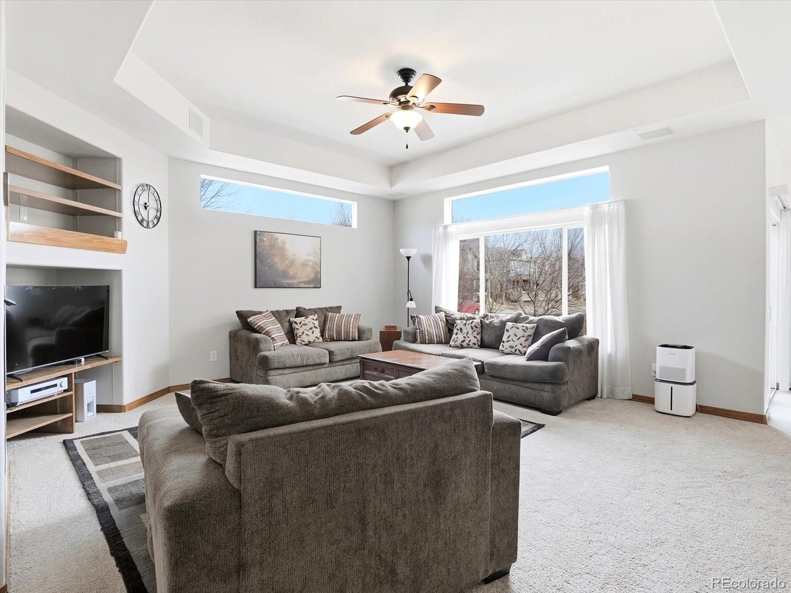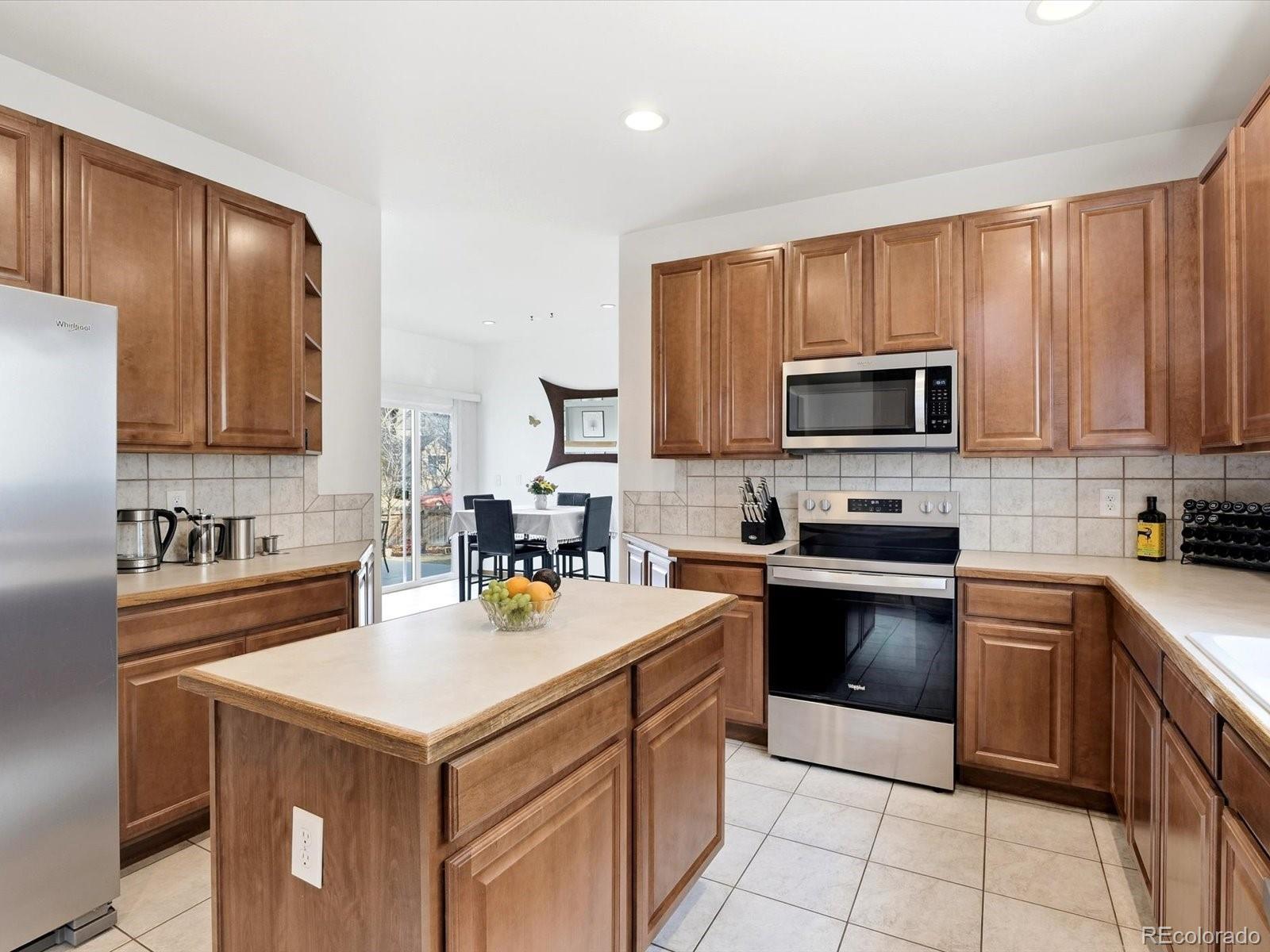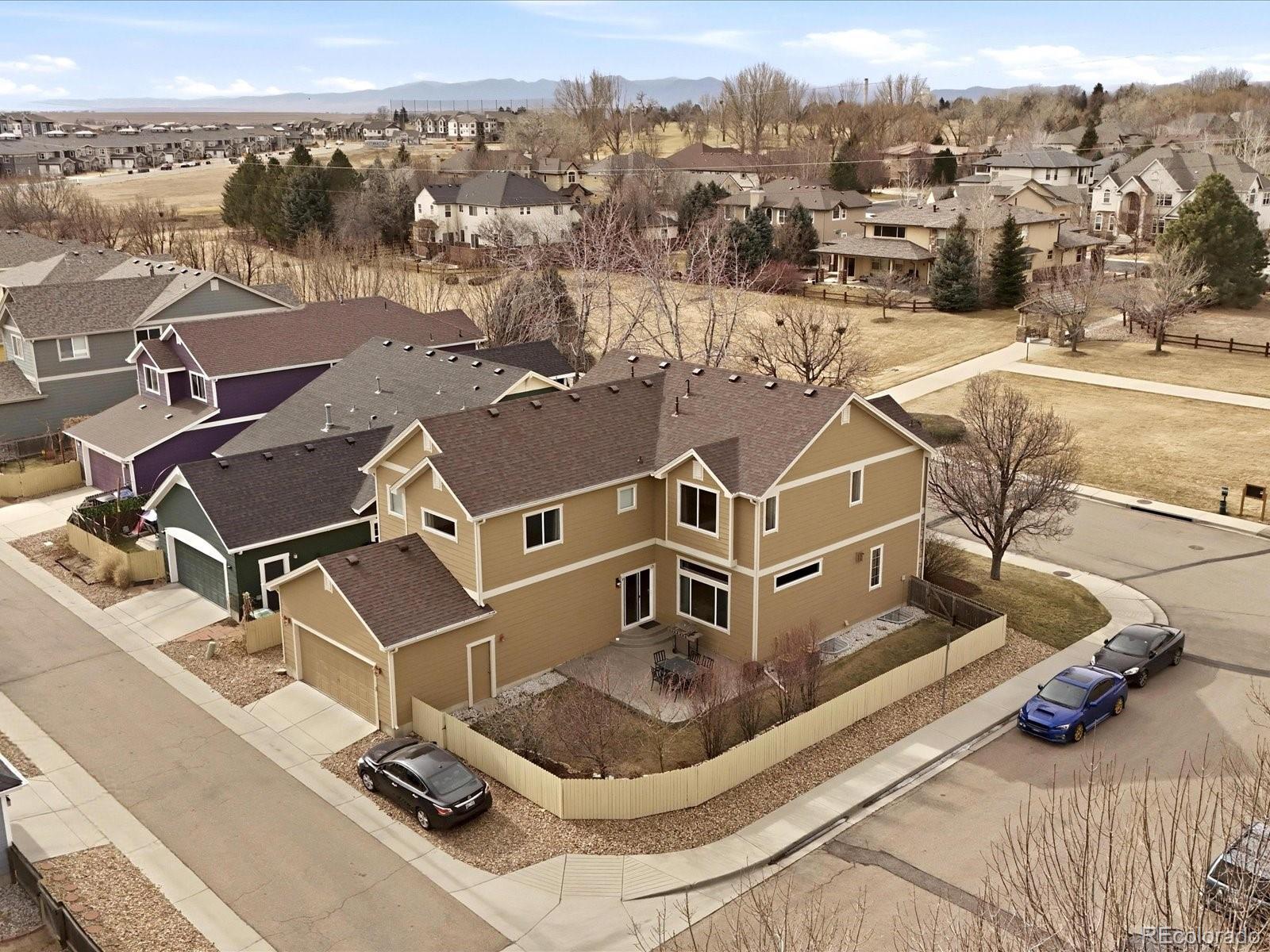 Ready to enjoy the Colorado lifestyle? You’ll love this move-in ready, well maintained home. Set on a quiet corner lot facing green space, this spacious thoughtfully designed home offers an exceptional blend of warmth, space, and craftsmanship. Ideally situated with an abundance of recreational options only minutes from Fox Meadows Park, Fox Hill Golf Course and Union Reservoir Nature Area. Inside, sunlight pours through expansive windows, highlighting the home’s open layout, offering a refreshing and uplifting living experience year-round. Inviting kitchen opens to the breakfast and dining rooms. It's perfect for cooking, family gatherings and hosting guests, showcasing stainless steel appliances, ample countertops and tile back splashes and plenty of storage room with rich wood tone cabinets and pantry. The living room has a cozy gas log fireplace, built-in entertainment center and surround sound speakers, and a private home office. Upper-level features a spacious primary suite and five-piece ensuite bath with lots of room to get ready for your day, large walk-in closet, and relaxing oval soaking tub. The large guest bedroom features its own ensuite bath and walk-in closet. The front bedroom features views of the green space and mountains. Plus a fourth bedroom off the hallway and a full bath with double vanity. Fully finished basement expands possibilities for other activities. Large family/media room has recessed lighting, built-in entertainment center and wet bar. Large 5th bedroom and/or flex space for home gym, music studio or hobby room. Plus a half bath and large storage room. Upgrades include new interior paint, new main floor carpeting, and new roofing installed in 2025. Additional features include tile floors, solid six panel wood doors with rich wood detailing throughout, central air conditioning, two furnaces, oversized 2 car garage, mature landscaping, sprinkler system, and large patio. Best value in the neighborhood ready for your Colorado lifestyle!