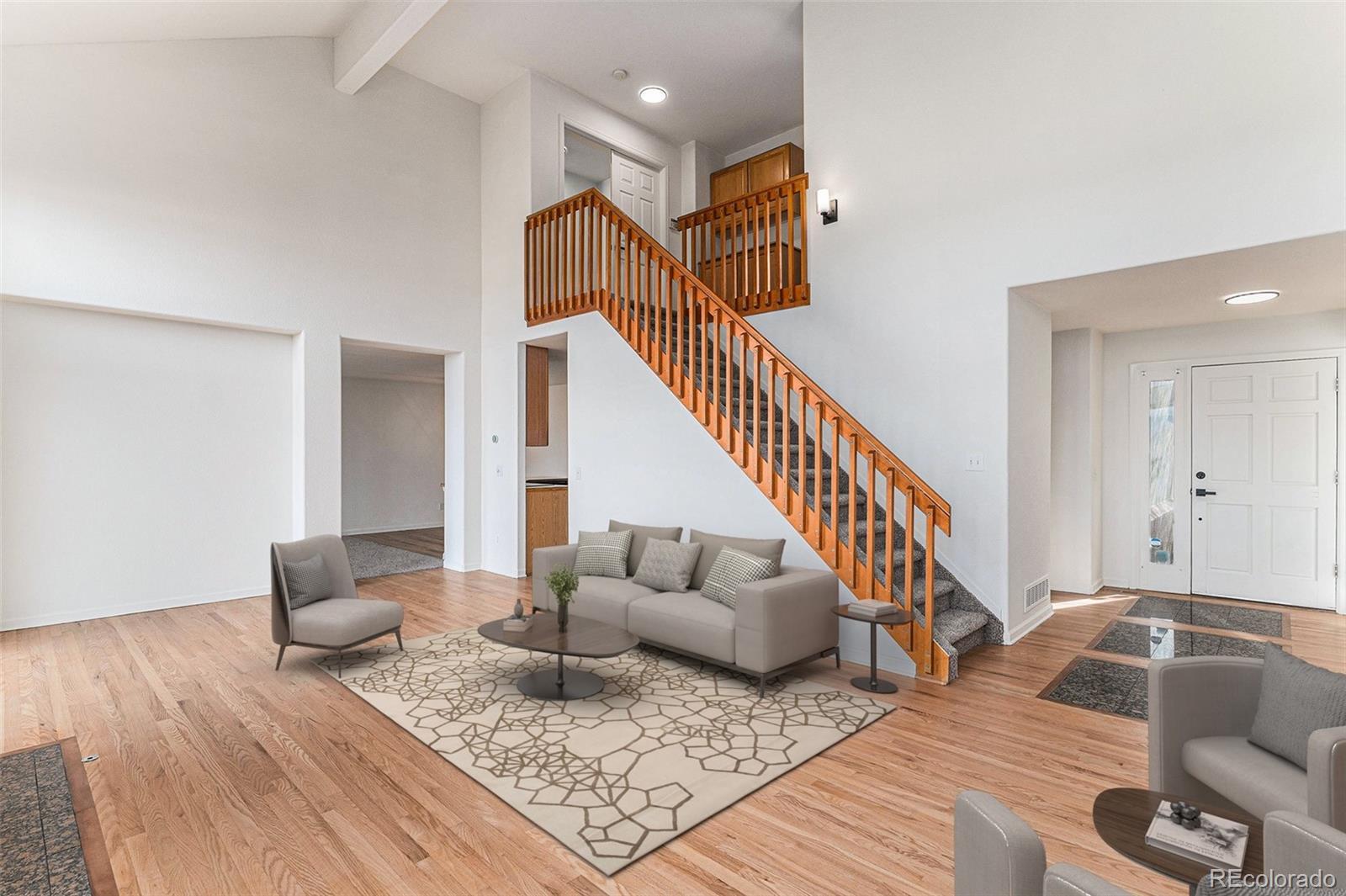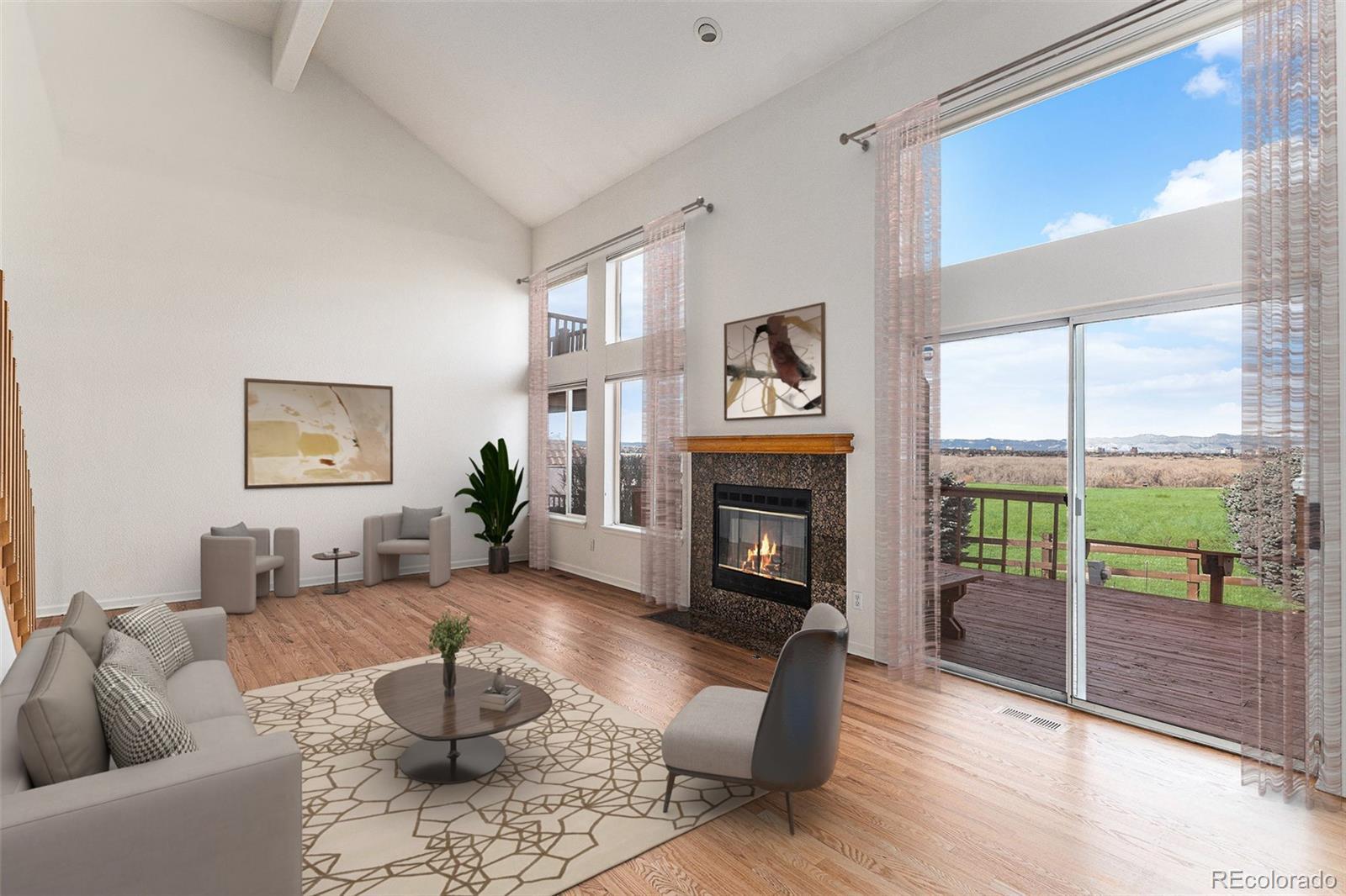 Rarely available opportunity to owns this townhome in an unbeatable location—directly bordering the 4,000-acre Cherry Creek State Park with sweeping, unobstructed mountain views from Pike’s Peak to Long’s Peak. Enjoy breathtaking sunsets, city lights, and easy access to biking and walking trails, just a short stroll to Cherry Creek Reservoir. Inside, you'll find over 3,000 square feet of upgraded living space, including a vaulted living room with fireplace and large windows showcasing stunning views. The open kitchen offers stainless steel appliances and a new electric cooktop. The main level also features an office and full laundry room with storage. The primary suite includes a private balcony with incredible views, a walk-in closet, and a five-piece bath. Additional highlights include a finished basement with a full home theater, flexible office or gym space, refinished solid hardwood floors, fresh paint, and a two-car garage. Community amenities include a pool and jacuzzi, with shopping, dining, and light rail just minutes away. Luxury, nature, and convenience—schedule your showing today!