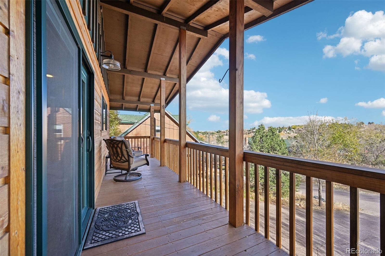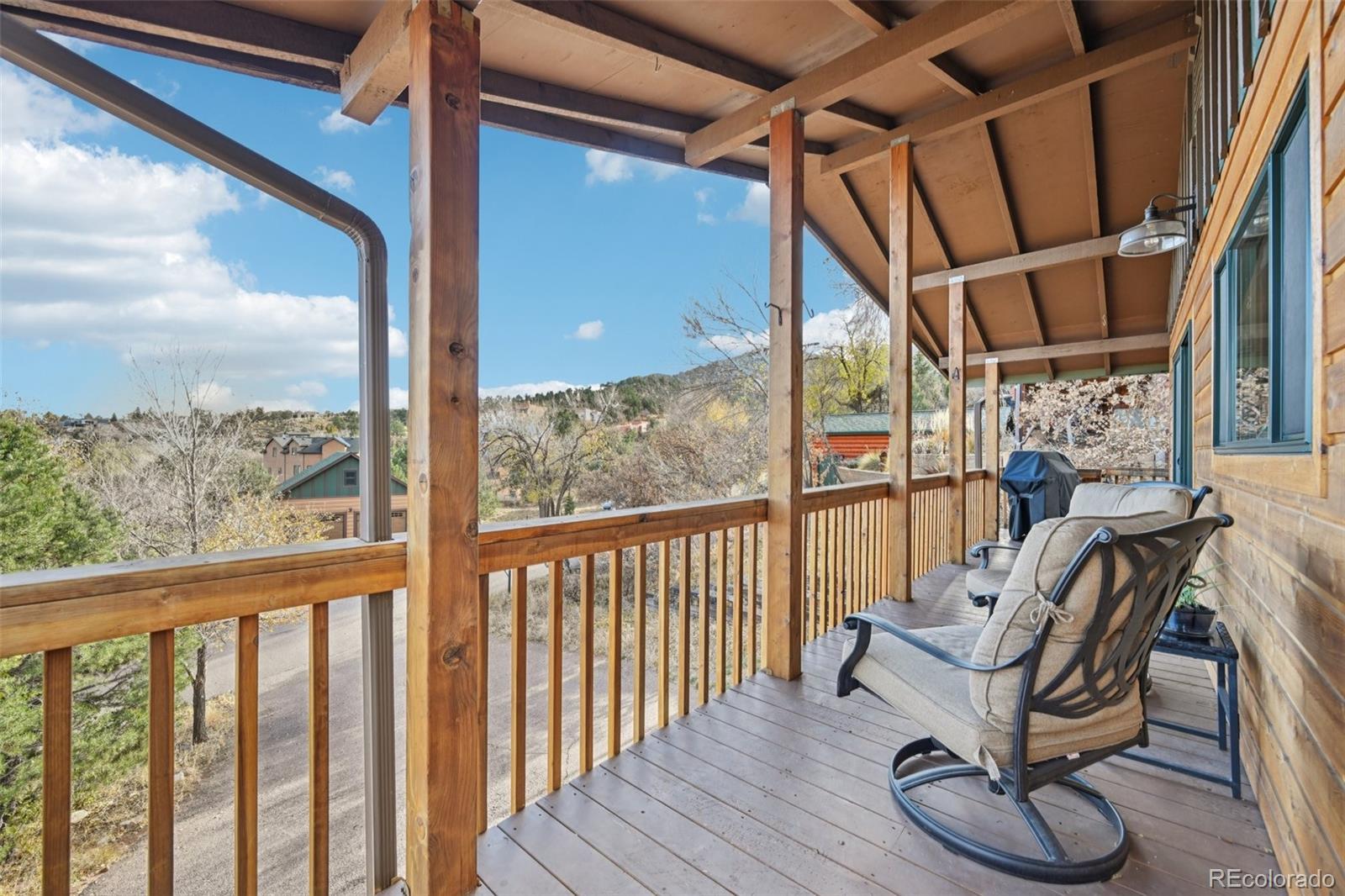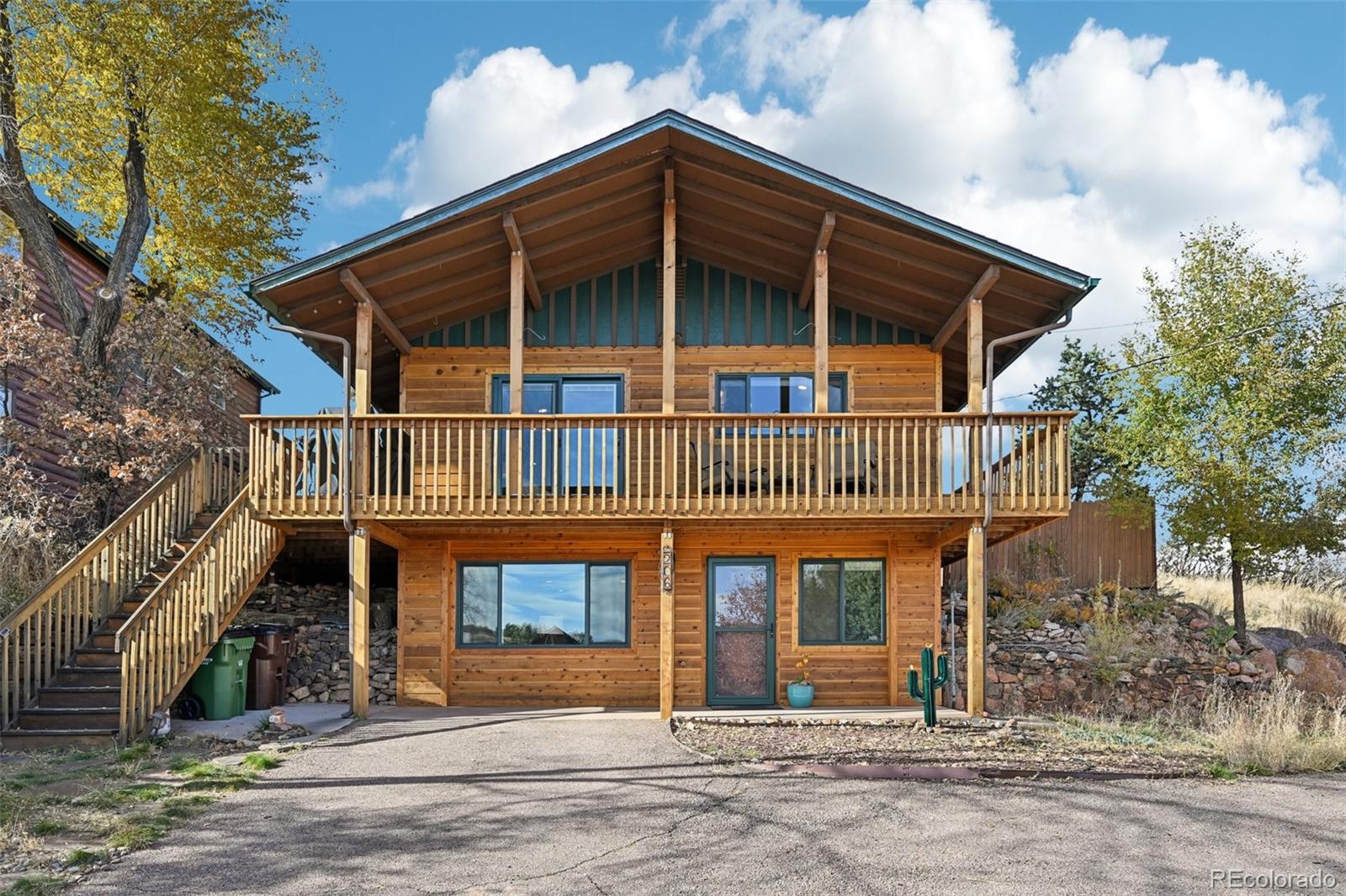 Welcome to this gorgeous, recently updated Manitou Springs home! This home is close to restaurants, downtown Manitou Springs, hiking trails and schools! as you pull up to this amazing home, you'll notice the large wrap around deck and the beautiful wood siding giving it true mountain home feel. The wrap around deck has plenty of sitting areas to enjoy the views! This deck also brings you around to the fenced backyard equipped with a hot tub, storage shed and newly laid pet friendly turf. As you enter the home through the front door you are met with natural wood flooring and an abundance of natural light coming through the windows and doors. The living room, dining room and kitchen are all open concept with a nice walk out from the dining area to the wrap around deck. The kitchen has a gas stove, custom cabinetry, wine fridge, quartzite countertops and a breakfast bar, to name a few of the gourmet upgrades! Down the main level hallway is the primary bedroom, bedroom 2, laundry and a full bathroom. Near the full bathroom at the end of the hall has yet another walk out to the wrap around deck and backyard! The lower level boasts a bedroom with a sitting area, an office, a family room with gas burning fireplace, a storage closet that has a washer/dryer plug in and a 3/4 bathroom. The lower level also has its own access from the front of the home. Come check out this amazing, one of a kind Manitou home today!