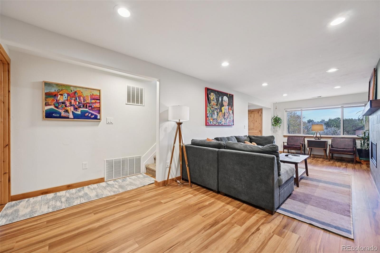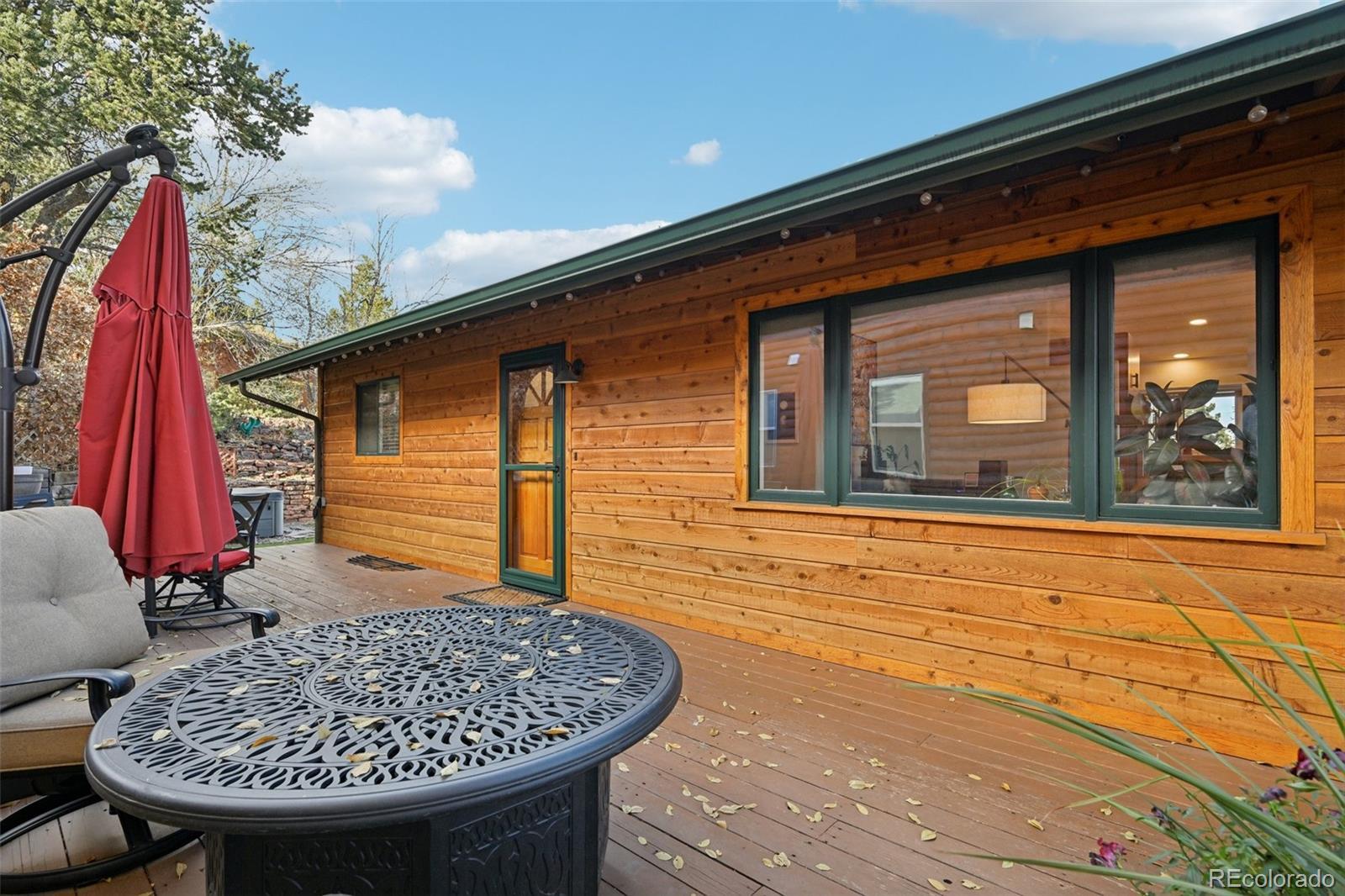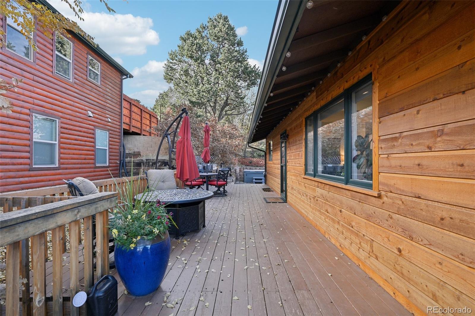 Welcome to this gorgeous, recently updated Manitou Springs home! This home is close to restaurants, downtown Manitou Springs, hiking trails and schools! as you pull up to this amazing home, you'll notice the large wrap around deck and the beautiful wood siding giving it true mountain home feel. The wrap around deck has plenty of sitting areas to enjoy the views! This deck also brings you around to the fenced backyard equipped with a hot tub, storage shed and newly laid pet friendly turf. As you enter the home through the front door you are met with natural wood flooring and an abundance of natural light coming through the windows and doors. The living room, dining room and kitchen are all open concept with a nice walk out from the dining area to the wrap around deck. The kitchen has a gas stove, custom cabinetry, wine fridge, quartzite countertops and a breakfast bar, to name a few of the gourmet upgrades! Down the main level hallway is the primary bedroom, bedroom 2, laundry and a full bathroom. Near the full bathroom at the end of the hall has yet another walk out to the wrap around deck and backyard! The lower level boasts a bedroom with a sitting area, an office, a family room with gas burning fireplace, a storage closet that has a washer/dryer plug in and a 3/4 bathroom. The lower level also has its own access from the front of the home. Come check out this amazing, one of a kind Manitou home today!