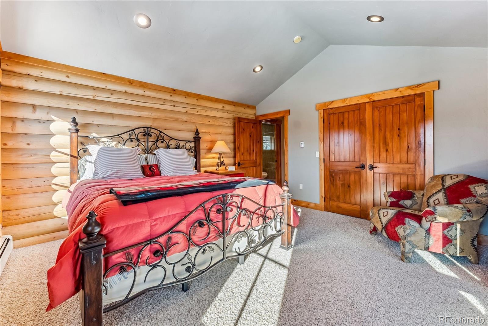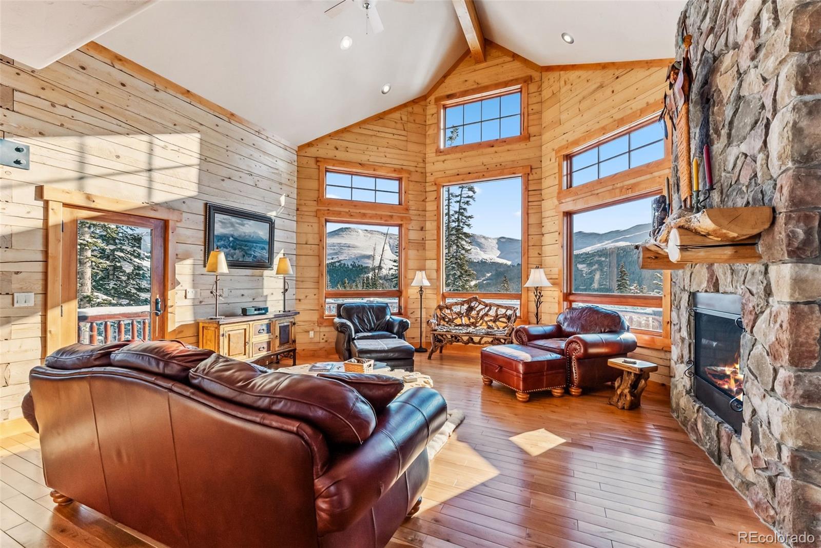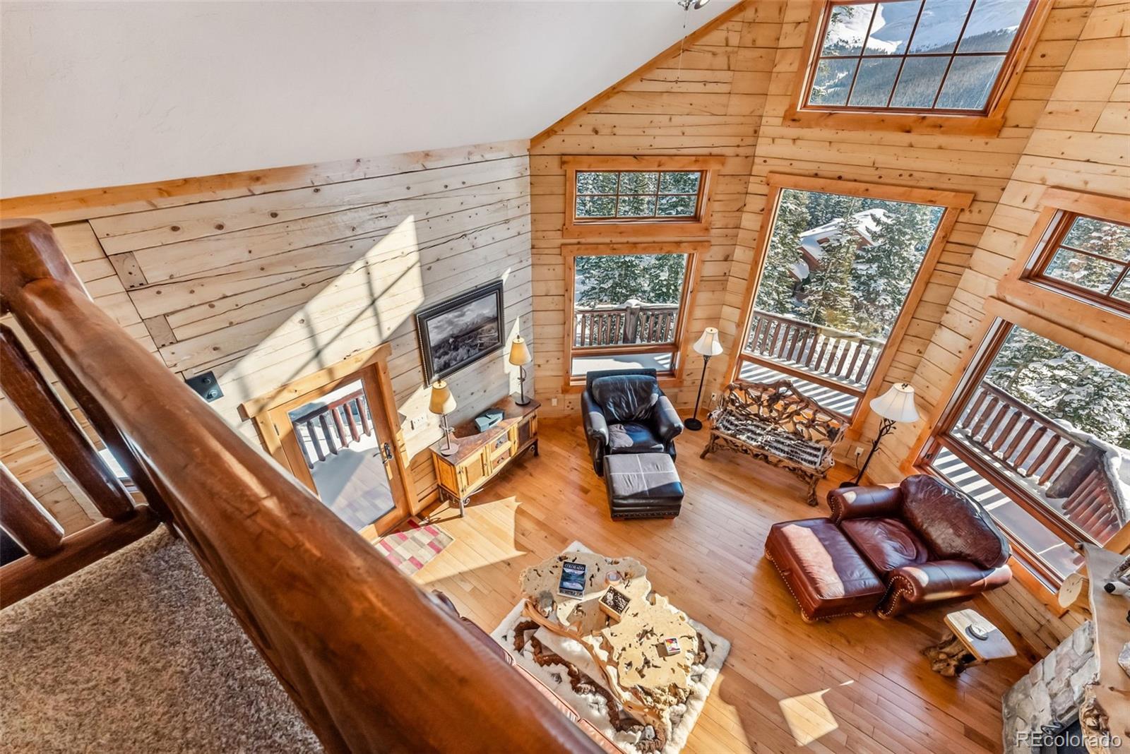 Stunning log home that is located in the North Star Village Subdivision and just minutes to main street Breckenridge. Home has many great features including a large Great Room with high ceilings and a wall of windows that take in the magnificent views of the Continental Divide and natural light all day long. Kitchen has double oven, electric cooktop, huge walk-in pantry and large island that creates additional seating. Floor to ceiling stone gas fireplace complements the log walls and solid wood floors for that true log cabin in the woods you have been looking for. Large walk-out deck on this level creates additional room for entertaining. Spacious dining area completes the Great Room. Additionally on this level is a half bath and a laundry room with a storage closet. Primary bedroom with 2 separate walk-in closets, gas fireplace, private balcony and 5 piece bath on main level. Upper level has 2 large bedrooms (one with a private bathroom) and a study/office or a non-conforming 4th bedroom/kids play room. Lower level/ground level has a 2 car garage, a spacious Recreation Room with pool table and bar, private family room and walk-in wine cellar with an area for wine tasting. Beautifully treed lot. This home is completely furnished. Turn-Key. On the Shuttle Bus Route.
