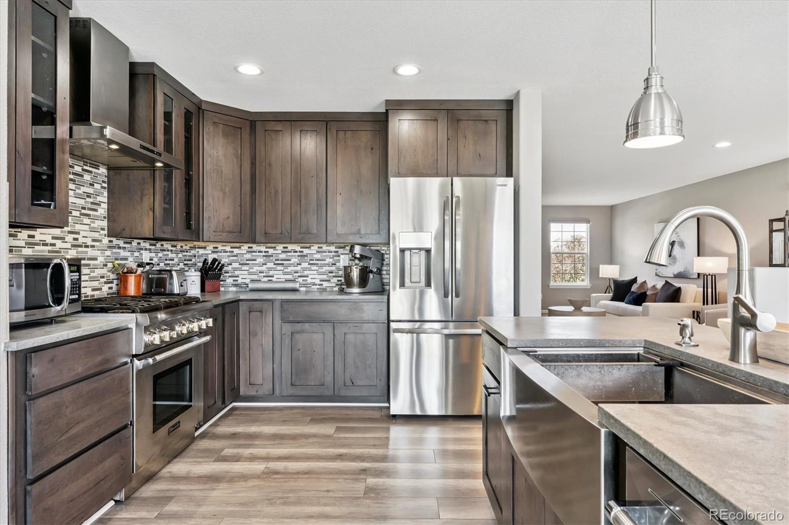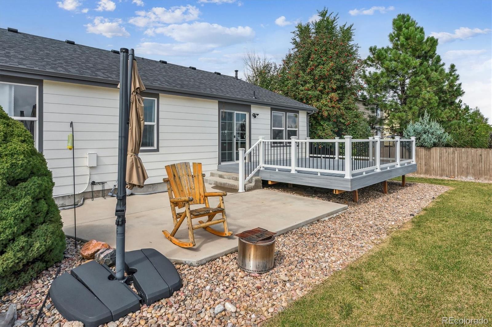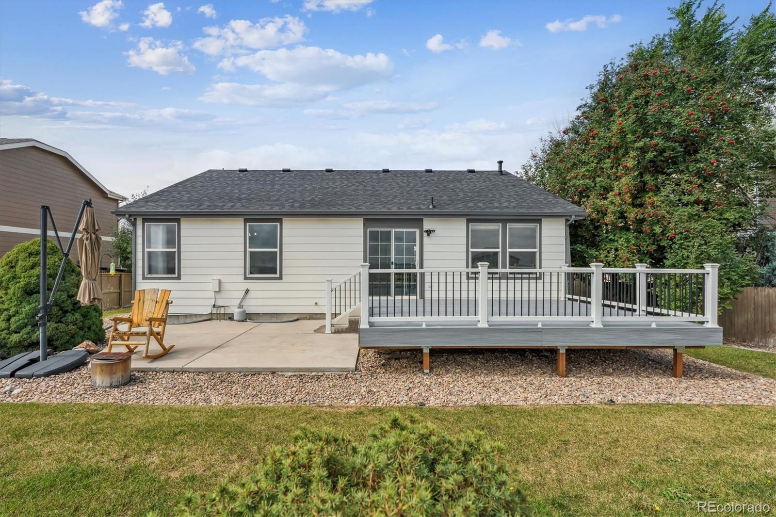 Home is where your heart is—and this one will steal it from sunrise to starlit night! Imagine starting your day with wide open views and ending it under endless Colorado skies, with 681 acres of dedicated open space right beyond your backyard. This stylish one-level home has been beautifully updated with warm, inviting colors and new luxury vinyl flooring that flows throughout the main level. The open layout brings together a bright great room, dining area, and remodeled kitchen featuring a Thermador gas range, stainless hood, farm sink, center island with barstool seating, and picture-perfect views through every window. There’s a main floor office for working from home, three total bedrooms including a primary suite with walk-in closet and five-piece bath, plus a laundry room complete with washer and dryer. Downstairs, the finished basement offers a flexible retreat for movie nights, workouts, or weekend guests with an additional bedroom and ¾ bath. Step outside to a brand new composite deck that’s ready for entertaining, a spacious yard for games, a handy shed for tools, and a 2-car attached garage. Close to schools and scenic trails, this is easy living with room to breathe and explore.