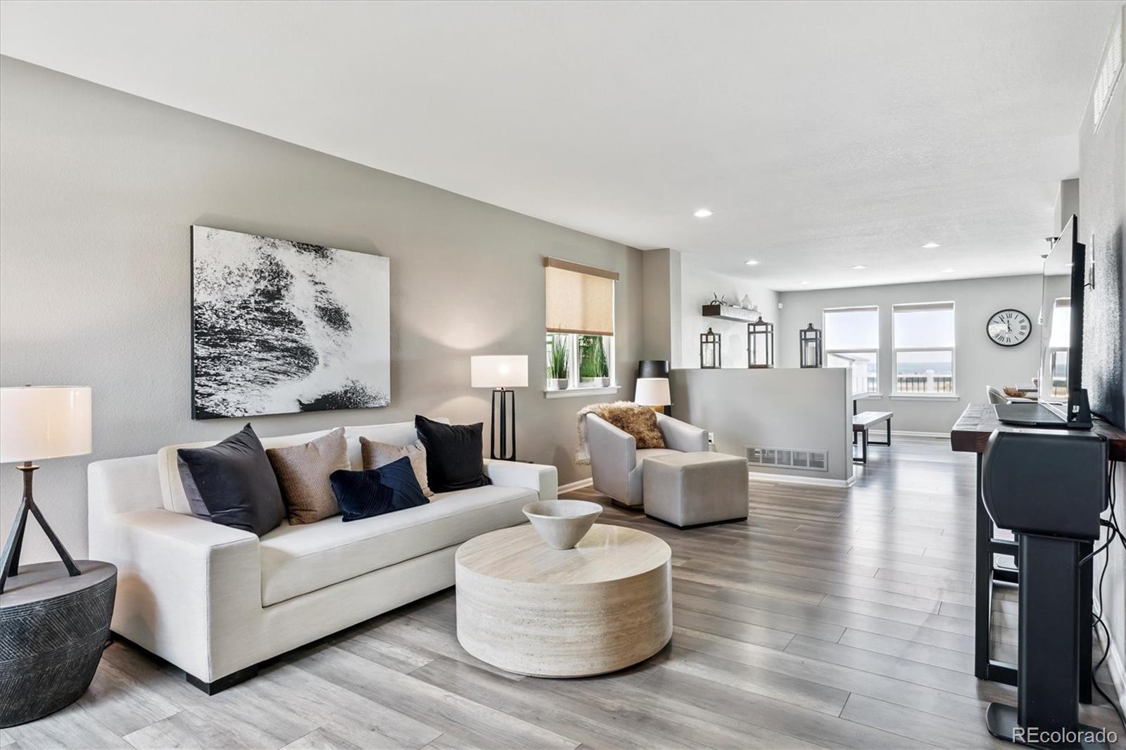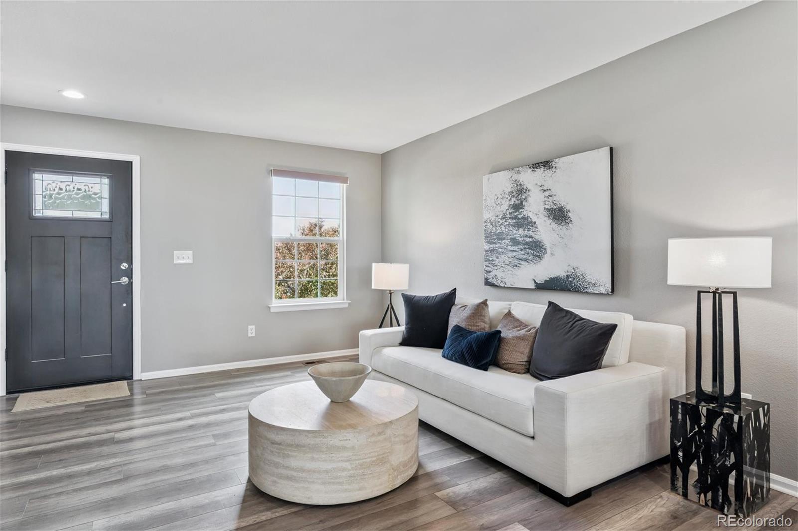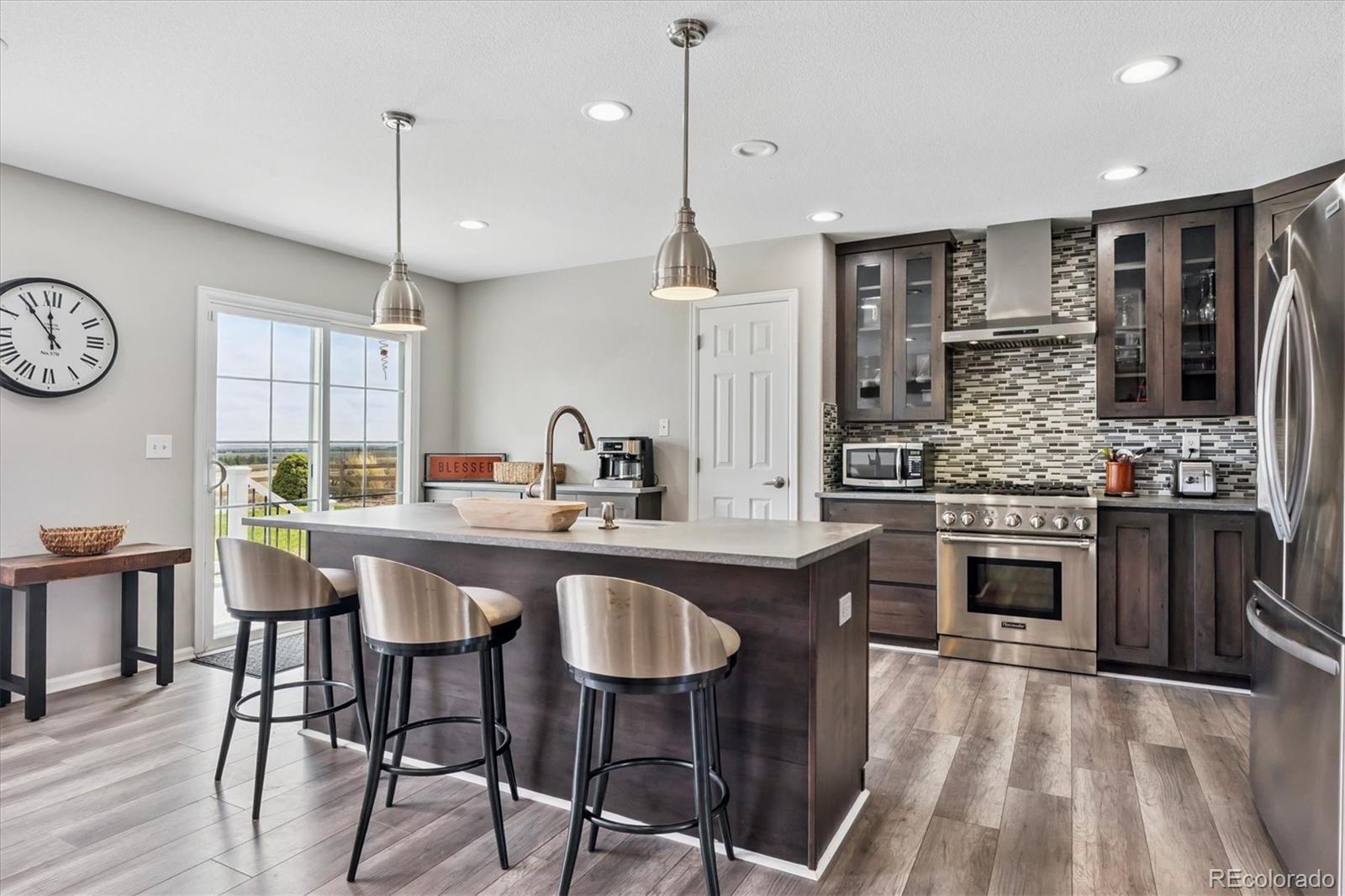 Home is where your heart is—and this one will steal it from sunrise to starlit night! Imagine starting your day with wide open views and ending it under endless Colorado skies, with 681 acres of dedicated open space right beyond your backyard. This stylish one-level home has been beautifully updated with warm, inviting colors and new luxury vinyl flooring that flows throughout the main level. The open layout brings together a bright great room, dining area, and remodeled kitchen featuring a Thermador gas range, stainless hood, farm sink, center island with barstool seating, and picture-perfect views through every window. There’s a main floor office for working from home, three total bedrooms including a primary suite with walk-in closet and five-piece bath, plus a laundry room complete with washer and dryer. Downstairs, the finished basement offers a flexible retreat for movie nights, workouts, or weekend guests with an additional bedroom and ¾ bath. Step outside to a brand new composite deck that’s ready for entertaining, a spacious yard for games, a handy shed for tools, and a 2-car attached garage. Close to schools and scenic trails, this is easy living with room to breathe and explore.