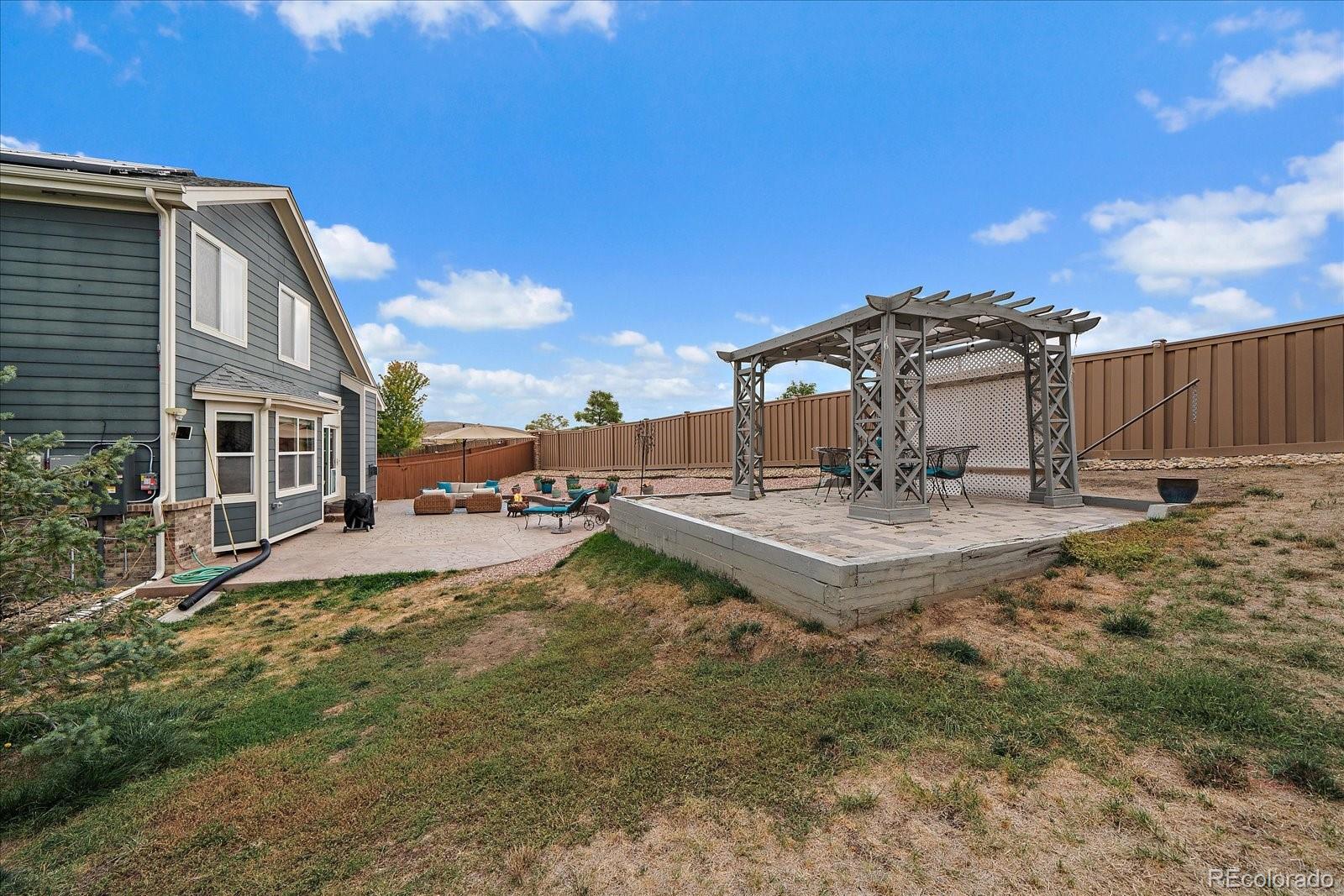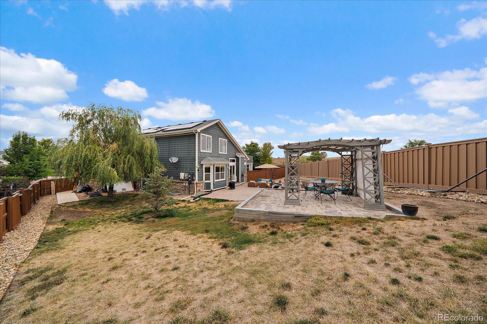 Discover the highly desirable Vista Ridge neighborhood in Erie, CO, where resort-style amenities meet Colorado’s natural beauty. The main level of this home is designed for both comfort and style, featuring the spacious primary suite with walk-in closet and 5 piece bath, soaring vaulted ceilings, expansive windows that flood the space with natural light, and gorgeous hardwood floors. The chef-style kitchen offers abundant cabinets, generous counter space, and an inviting dining area where you can take in stunning mountain views as you enjoy your morning coffee. Upstairs offers a versatile loft, two bedrooms, and a fully remodeled bath with two sinks, while the over 1,200 sq ft unfinished basement with multiple egress windows provides endless opportunities to expand. With a NEW roof and ALL-NEW MECHANICALS —including furnance, AC unit and water heater in 2024 —this home offers peace of mind, energy efficiency, and reliable comfort for years to come. Step outside to nearly a quarter-acre lot with no back neighbors, complete with a stamped concrete patio, pergola, and bonus side yard—perfect for a future she/he-shed, dog run, play area, firepit area - make your backyard dreams come true! You'll love the afternoon shade in your fully private backyard and unmatched Colorado sunsets from the pergola at the top of the property with mountain views over the trees. Enjoy two community pools, a splash pad, hot tub, fitness center, clubhouse, and endless recreation with baseball fields, tennis, pickleball, volleyball, and basketball courts. The neighborhood also features the Colorado National Golf Club, miles of trails with stunning mountain views, and a calendar full of community events. With top-rated St. Vrain Valley schools and easy access to Boulder, Denver, DIA, shopping, and dining, Vista Ridge offers an unmatched lifestyle in a vibrant, family-friendly setting. Make this lovely home yours - schedule your showing today!
