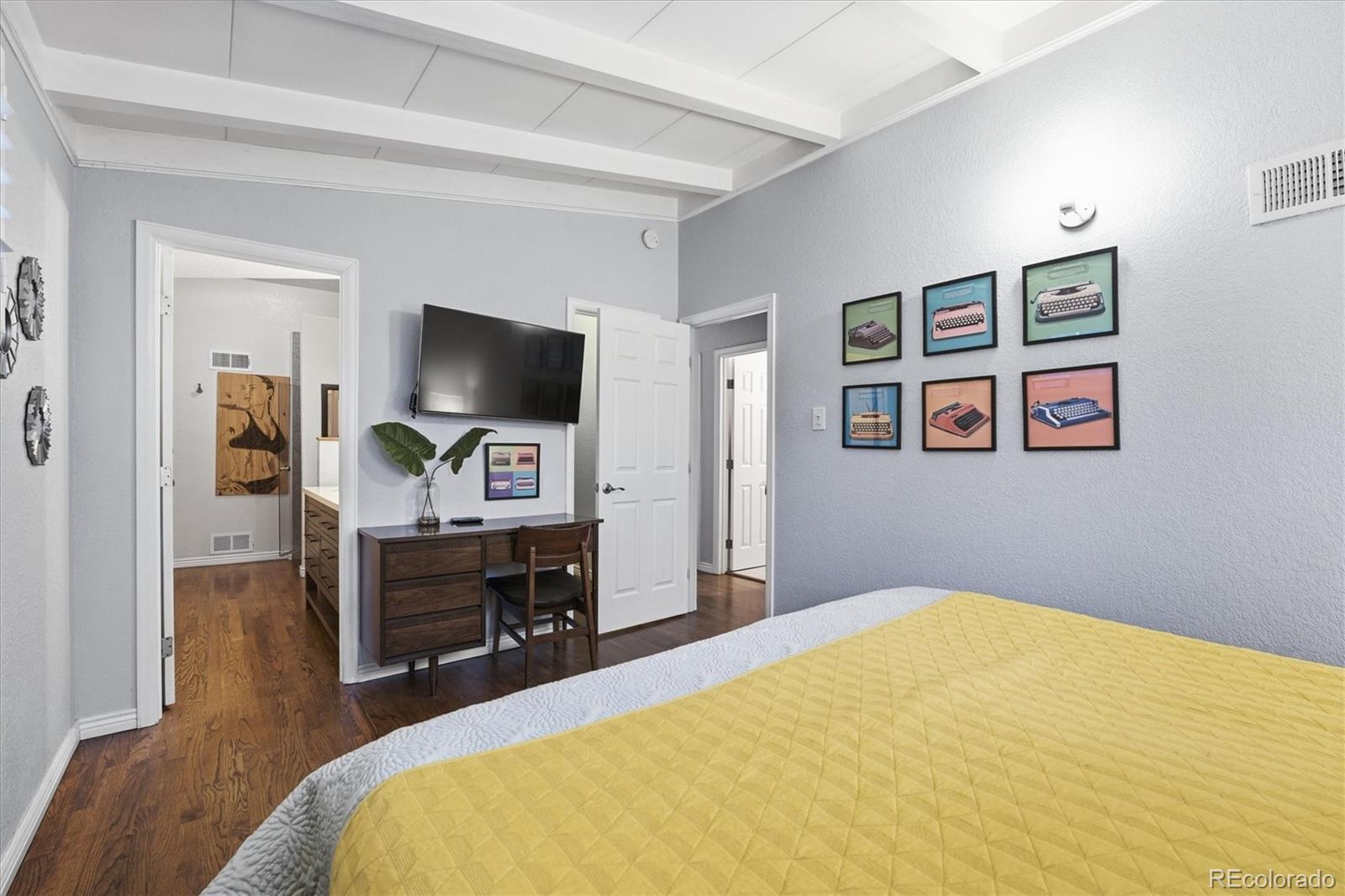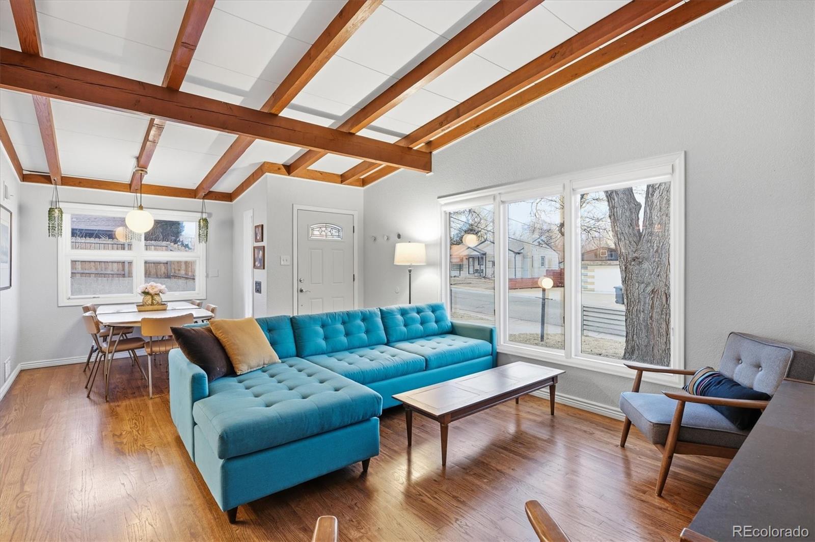 OPEN HOUSE WED (2/25) 4-6 PM. A true mid-century modern near the heart of Olde Town Arvada. Perfectly positioned for a vibrant, close-to-everything lifestyle, this thoughtfully updated home blends architectural character with everyday functionality. Exposed beams, vaulted ceilings, hardwood floors, classic casement windows, and a true-to-era carport showcase the timeless design, while large windows flood the home with natural light, enhancing the open, airy feel that defines mid-century modern architecture. Thoughtful updates deliver the modern conveniences you need without taking away what makes these homes so special. The spacious primary suite is a rare find, featuring a beautifully updated bath with double vanity and walk-in shower, plus a separate walk-in closet. A generous secondary bedroom, additional full bath, and ample storage offer flexibility for guests, a home office, or creative space. Move-in ready with character already intact, this home offers original design without the typical renovation to-do list. Situated on a prime corner lot, the setting provides added space, privacy, and standout curb appeal, while outdoor areas shine with a covered patio, extended crusher fine gathering space, lush grassy side yard, and welcoming front yard anchored by a mature shade tree—ideal for relaxing or entertaining. Enjoy effortless access to Olde Town’s dining, coffee shops, parks, and local favorites including the patio at Arvada Beer Garden, ice cream at Power Cone, and the iconic Johnny Roberts Disc Golf Course across the street. With easy routes to mountain adventures, quick access to Denver, everyday conveniences, and the light rail station just one mile away, this home offers a rare combination of timeless design and unmatched location. With short-term rental potential in Arvada (buyer to verify), the flexibility extends beyond everyday living. This is mid-century modern living reimagined for today’s lifestyle.