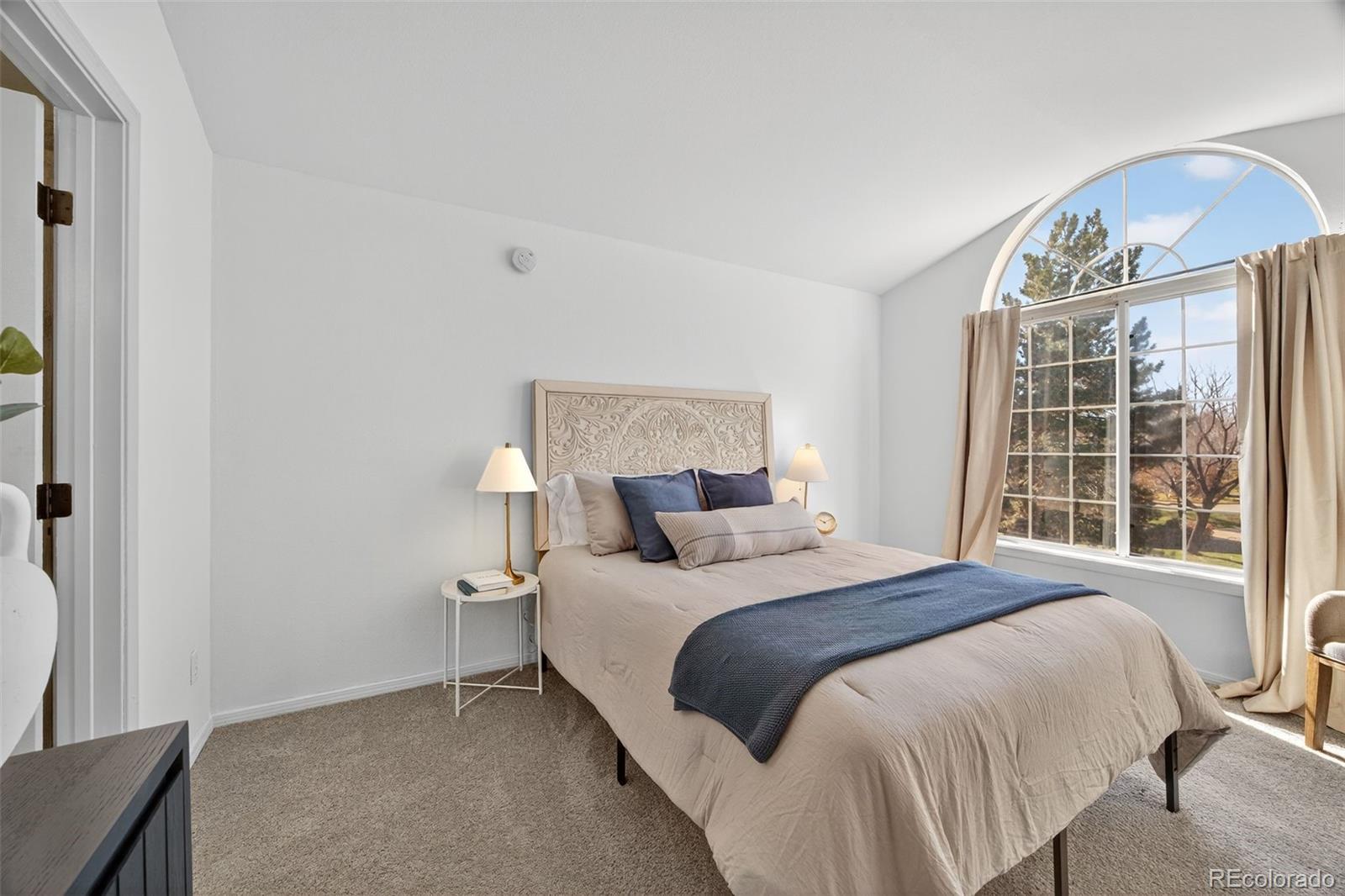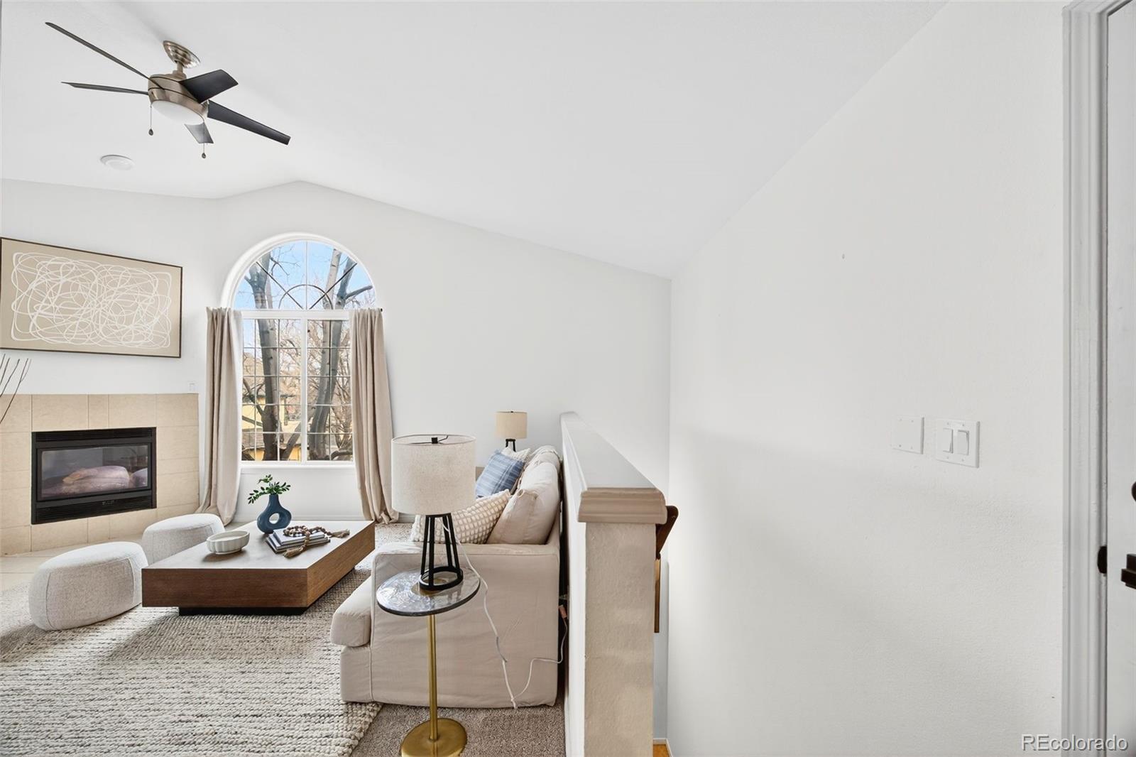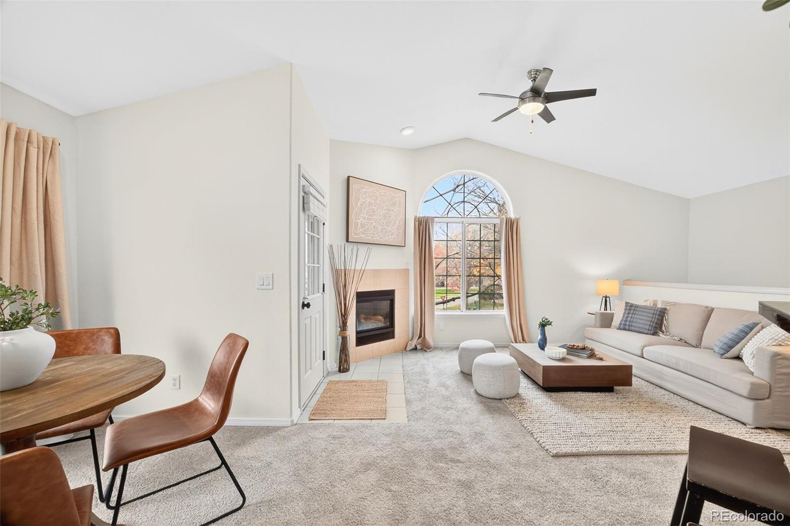 Welcome to Saddle Ridge - rare move-in ready top-floor corner condo offering privacy, vaulted ceilings, and that true feeling of “home.” With no one above you, only one shared wall, & private garages below - this unit lives like a standalone retreat. Enjoy a direct private entry from your attached one-car garage, complete with a small mudroom or storage area - a feature rarely found in condo living. Inside, the open layout connects a bright living area with a cozy gas fireplace, a defined dining space, and a breakfast bar pass-through to the kitchen. Soaring vaulted ceilings and oversized arched windows fill the home with natural light, while the covered west-facing patio offers a private, tree-lined setting perfect for entertaining or unwinding year-round. The spacious primary bedroom features a walk-in closet and plenty of room for a king bed. The bath offers dual access (hall and primary), creating convenience for both daily living and guests. A laundry area and separate storage closet off the entry add everyday function and maximize space naturally. Saddle Ridge residents enjoy far more than their own condo through community amenities - including a private pool, spa, clubhouse, and fitness center. Nestled in the heart of Centennial, this community is part of Cherry Creek School District and centrally located just minutes from DTC, Park Meadows, I-25, and E-470. Enjoy nearby favorites like Pindustry, My Neighbor Felix, ViewHouse, and Fiddler’s Green Amphitheater - plus easy access to Centennial and Greenwood Village trails and parks. You’ll also be perfectly positioned near the planned Midtown Centennial development - close enough to enjoy all the benefits of future growth, yet far enough to maintain peace and privacy during build-out. This light-filled home features new carpet, paint & Nest thermostat - blending comfort, convenience & location. A must-see for anyone seeking private, low-maintenance living with modern perks & unbeatable access.