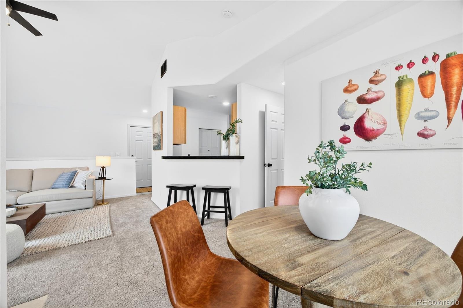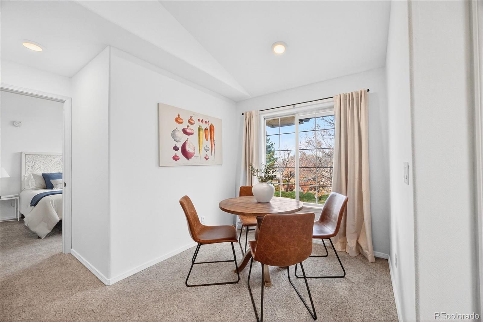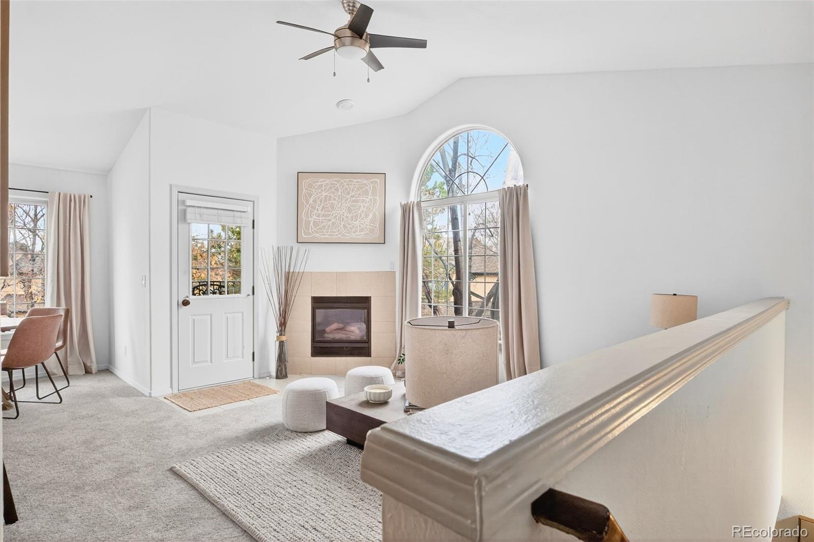 Welcome to Saddle Ridge - rare move-in ready top-floor corner condo offering privacy, vaulted ceilings, and that true feeling of “home.” With no one above you, only one shared wall, & private garages below - this unit lives like a standalone retreat. Enjoy a direct private entry from your attached one-car garage, complete with a small mudroom or storage area - a feature rarely found in condo living. Inside, the open layout connects a bright living area with a cozy gas fireplace, a defined dining space, and a breakfast bar pass-through to the kitchen. Soaring vaulted ceilings and oversized arched windows fill the home with natural light, while the covered west-facing patio offers a private, tree-lined setting perfect for entertaining or unwinding year-round. The spacious primary bedroom features a walk-in closet and plenty of room for a king bed. The bath offers dual access (hall and primary), creating convenience for both daily living and guests. A laundry area and separate storage closet off the entry add everyday function and maximize space naturally. Saddle Ridge residents enjoy far more than their own condo through community amenities - including a private pool, spa, clubhouse, and fitness center. Nestled in the heart of Centennial, this community is part of Cherry Creek School District and centrally located just minutes from DTC, Park Meadows, I-25, and E-470. Enjoy nearby favorites like Pindustry, My Neighbor Felix, ViewHouse, and Fiddler’s Green Amphitheater - plus easy access to Centennial and Greenwood Village trails and parks. You’ll also be perfectly positioned near the planned Midtown Centennial development - close enough to enjoy all the benefits of future growth, yet far enough to maintain peace and privacy during build-out. This light-filled home features new carpet, paint & Nest thermostat - blending comfort, convenience & location. A must-see for anyone seeking private, low-maintenance living with modern perks & unbeatable access.