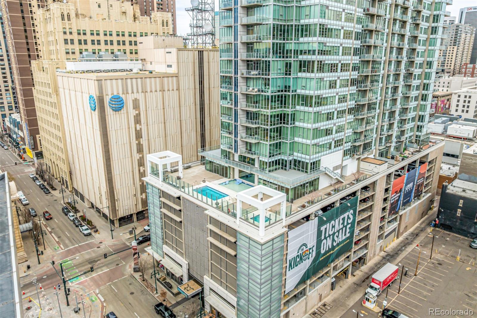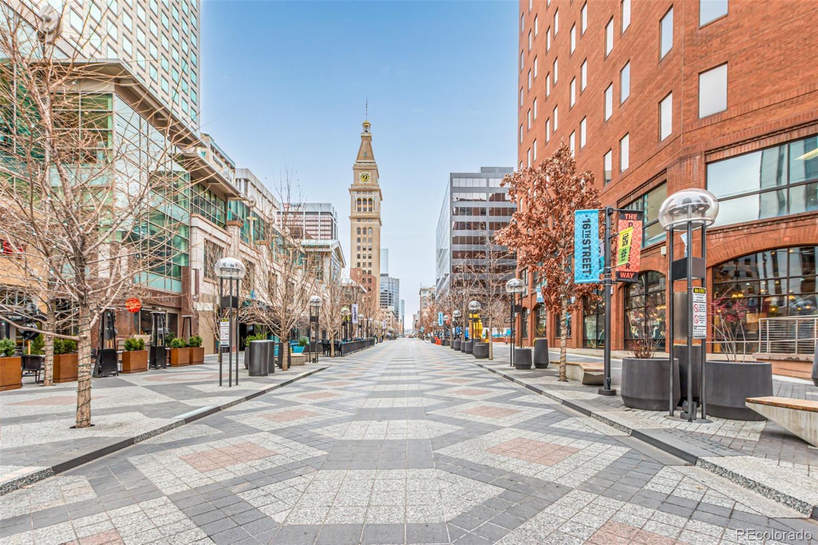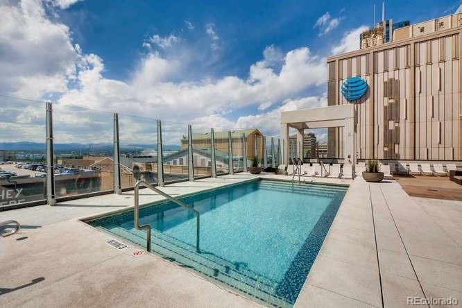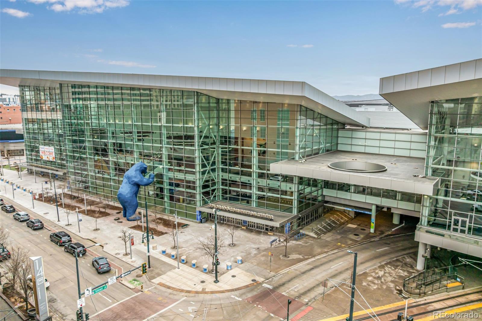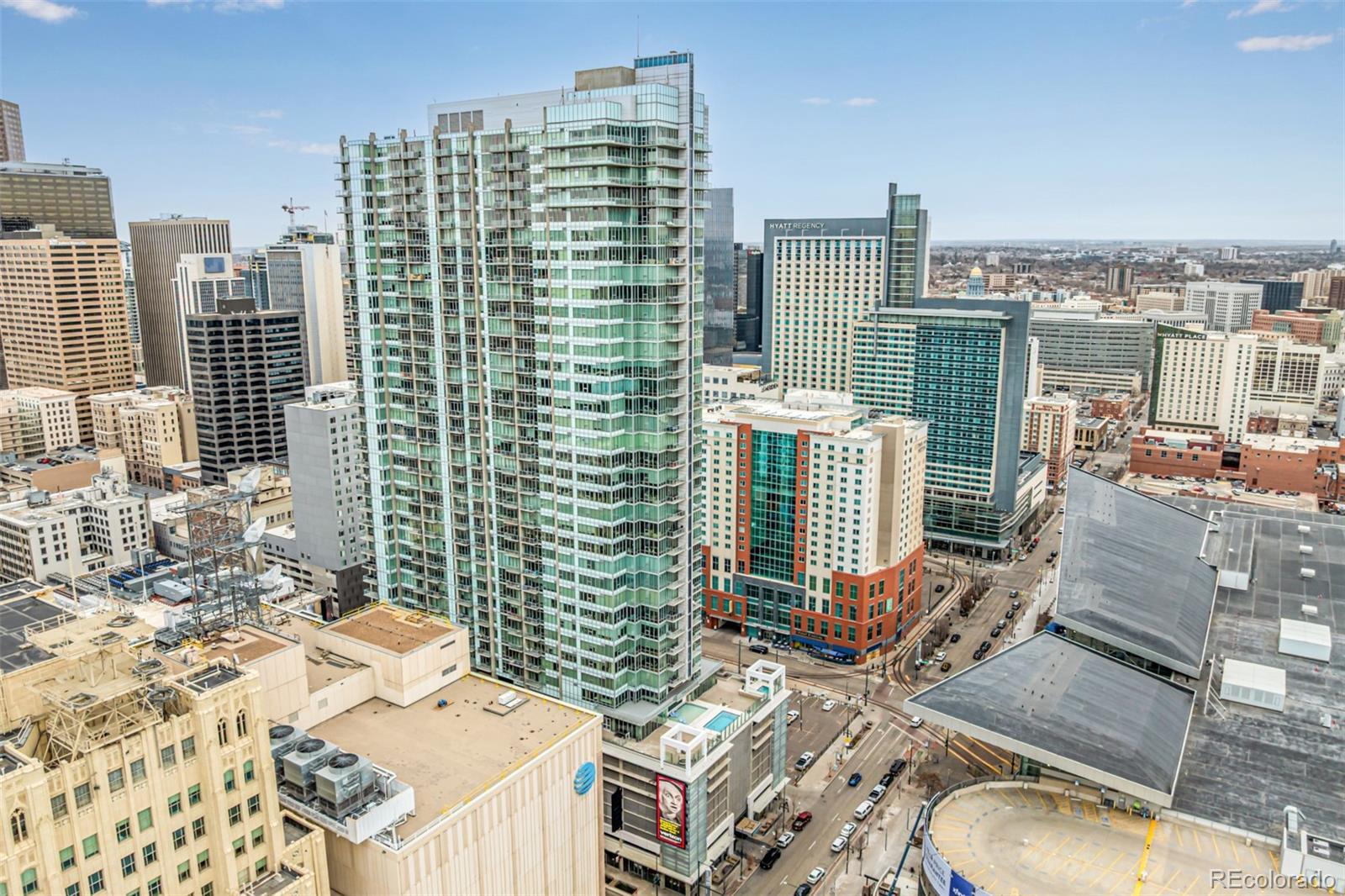 Experience elevated city living in this stunning southeast-facing 1-bedroom, 1-bath residence, offering breathtaking skyline and mountain views from the iconic SPIRE building. For many, the dream of living in the heart of the city feels like a distant goal, but this home makes that dream an attainable reality. A welcoming foyer opens to a light-filled interior that will immediately capture your attention. The space is defined by high ceilings, freshly refinished engineered hardwood floors, new paint, and dramatic floor-to-ceiling glass that frames the incredible vistas. The open kitchen is perfect for entertaining, featuring custom granite countertops, stainless steel appliances, and a breakfast bar island where guests can gather. The bright bedroom includes a generous walk-in closet, providing ample storage. The modern bathroom is appointed with a sleek, glass-enclosed tub/shower combination. For everyday ease, a stacked washer and dryer are conveniently located within the unit. Step out onto your private balcony to enjoy fresh air and soak in the breathtaking city and mountain views—a perfect backdrop for your morning coffee or an evening cocktail. This home also includes a reserved deeded parking space, a valuable convenience in downtown Denver. As a resident of SPIRE, you’ll have access to resort-style amenities that are second to none. This includes a heated pool and hot tub open year-round, a state-of-the-art fitness center, a spacious club room, a movie theater, and exclusive access to the penthouse SkyClub lounge atop the 42-story tower. The location is unparalleled. You are ideally situated near the 16th Street Mall, the Denver Performing Arts Complex (DCPA), Sculpture Park, historic Larimer Square, and Denver’s best dining and entertainment venues. This is your opportunity to own a piece of the Denver skyline.