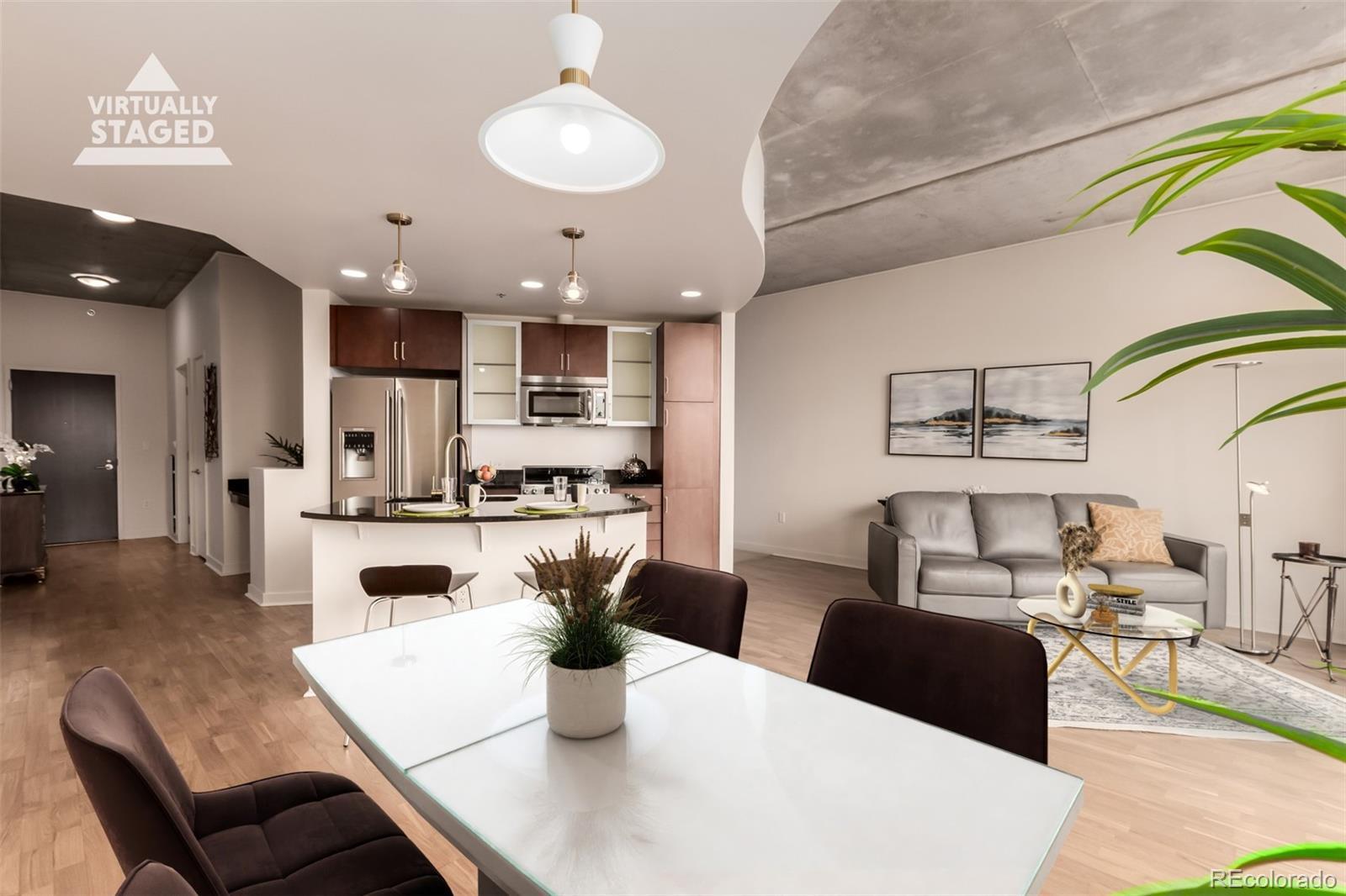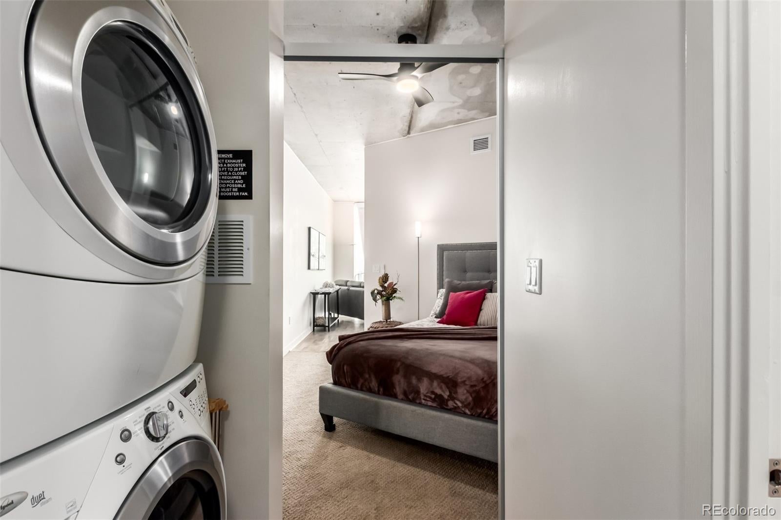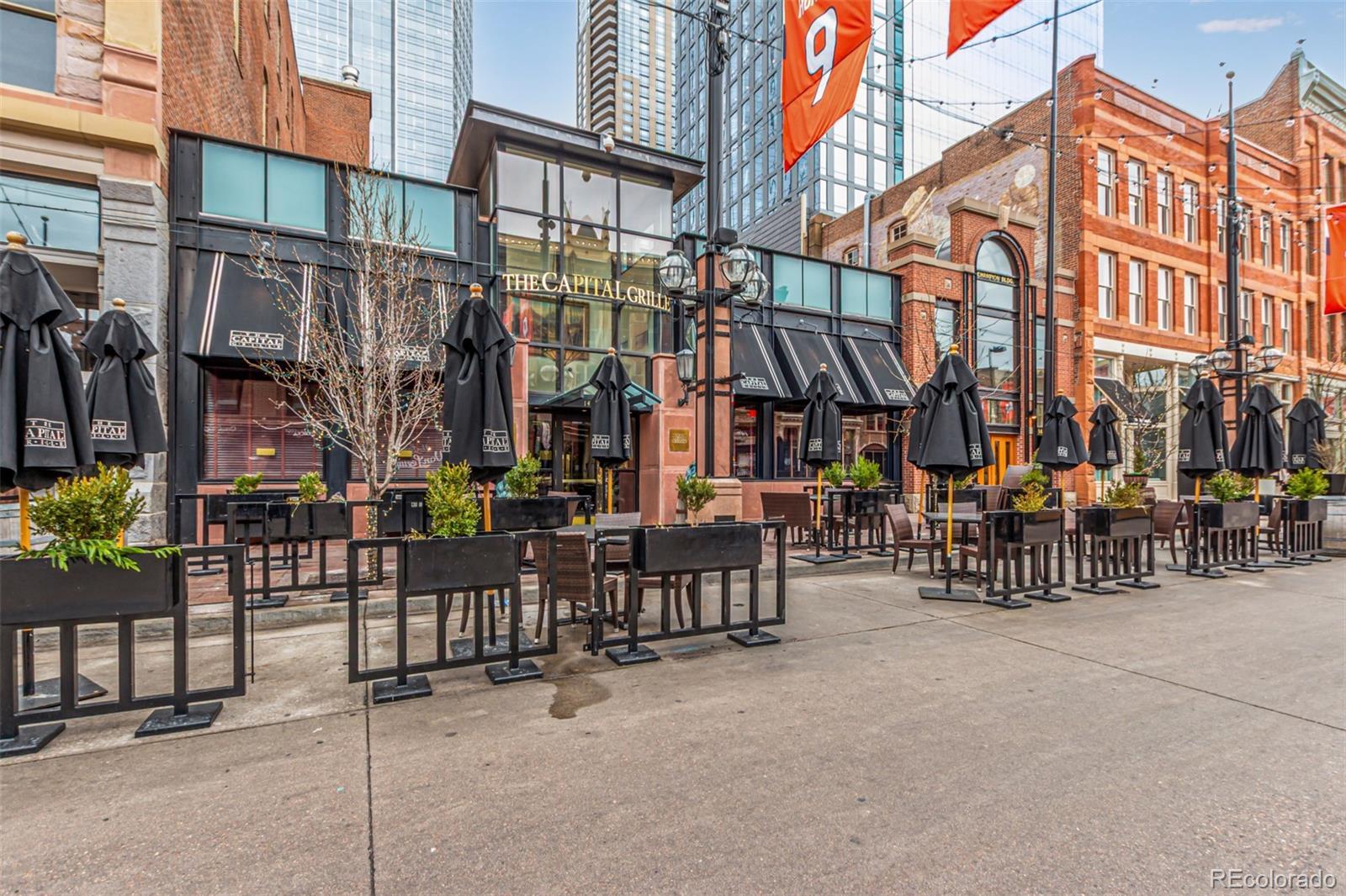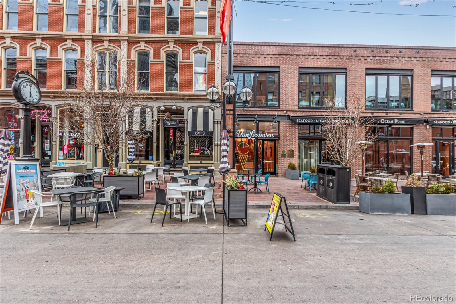 Experience elevated city living in this stunning southeast-facing 1-bedroom, 1-bath residence, offering breathtaking skyline and mountain views from the iconic SPIRE building. For many, the dream of living in the heart of the city feels like a distant goal, but this home makes that dream an attainable reality. A welcoming foyer opens to a light-filled interior that will immediately capture your attention. The space is defined by high ceilings, freshly refinished engineered hardwood floors, new paint, and dramatic floor-to-ceiling glass that frames the incredible vistas. The open kitchen is perfect for entertaining, featuring custom granite countertops, stainless steel appliances, and a breakfast bar island where guests can gather. The bright bedroom includes a generous walk-in closet, providing ample storage. The modern bathroom is appointed with a sleek, glass-enclosed tub/shower combination. For everyday ease, a stacked washer and dryer are conveniently located within the unit. Step out onto your private balcony to enjoy fresh air and soak in the breathtaking city and mountain views—a perfect backdrop for your morning coffee or an evening cocktail. This home also includes a reserved deeded parking space, a valuable convenience in downtown Denver. As a resident of SPIRE, you’ll have access to resort-style amenities that are second to none. This includes a heated pool and hot tub open year-round, a state-of-the-art fitness center, a spacious club room, a movie theater, and exclusive access to the penthouse SkyClub lounge atop the 42-story tower. The location is unparalleled. You are ideally situated near the 16th Street Mall, the Denver Performing Arts Complex (DCPA), Sculpture Park, historic Larimer Square, and Denver’s best dining and entertainment venues. This is your opportunity to own a piece of the Denver skyline.