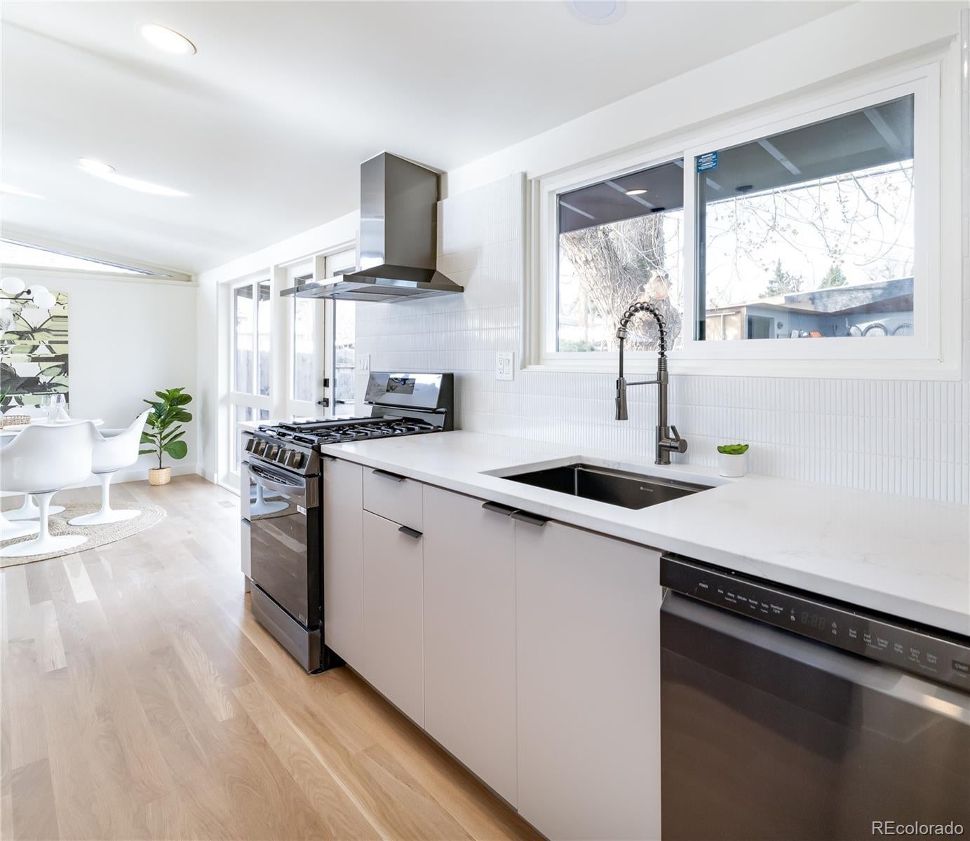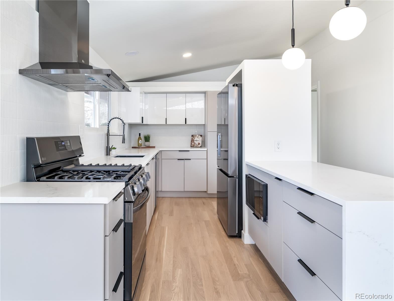 Photos of second bathroom coming soon! Mid-Century Modern Gem in Harvey Park – Fully Renovated! Only 170 of these homes were built in Colorado. Step into this bright and stunning Cliff May home in Harvey Park, where classic mid-century charm meets modern luxury! This home is beaming with natural light due to its unique architecture and abundance of windows. Thoughtfully renovated inside and out, this home features NEW: furnace - AC unit - water heater - all black stainless steel appliances - real white oak hardwood floors - texture - paint - custom kitchen cabinets - countertops - backsplash - all-new bathroom - windows - doors, and stylish new light fixtures. The exterior shines with a brand-new driveway/courtyard, fresh paint, landscaping, and a new gated fence (for the option to store a vehicle), all designed with tasteful, timeless finishes that honor its mid-century roots. Enjoy the prime location—just 15 minutes to Downtown Denver, 20 minutes to the Tech Center, and 40 minutes to the foothills, offering the perfect balance of city convenience and outdoor adventure. Don't miss this rare opportunity to own a move-in ready architectural gem in one of Denver’s most sought-after neighborhoods!